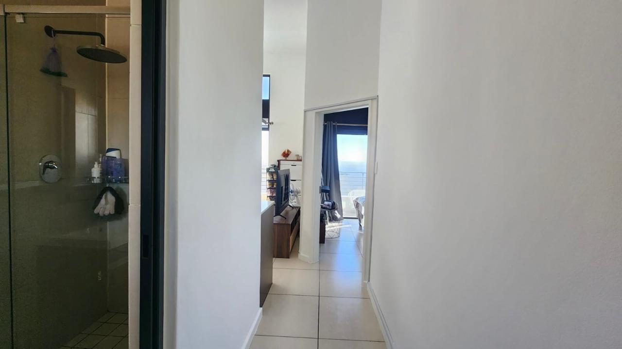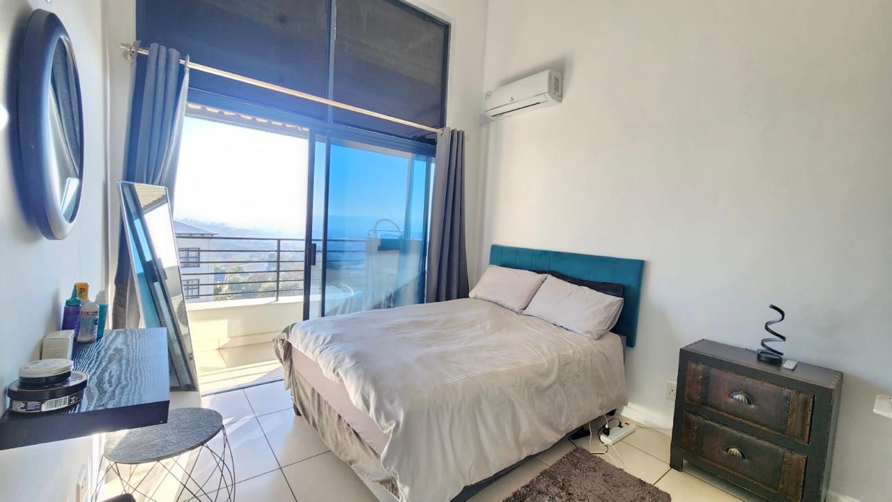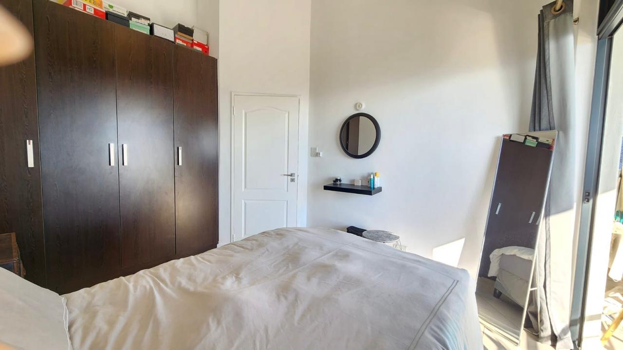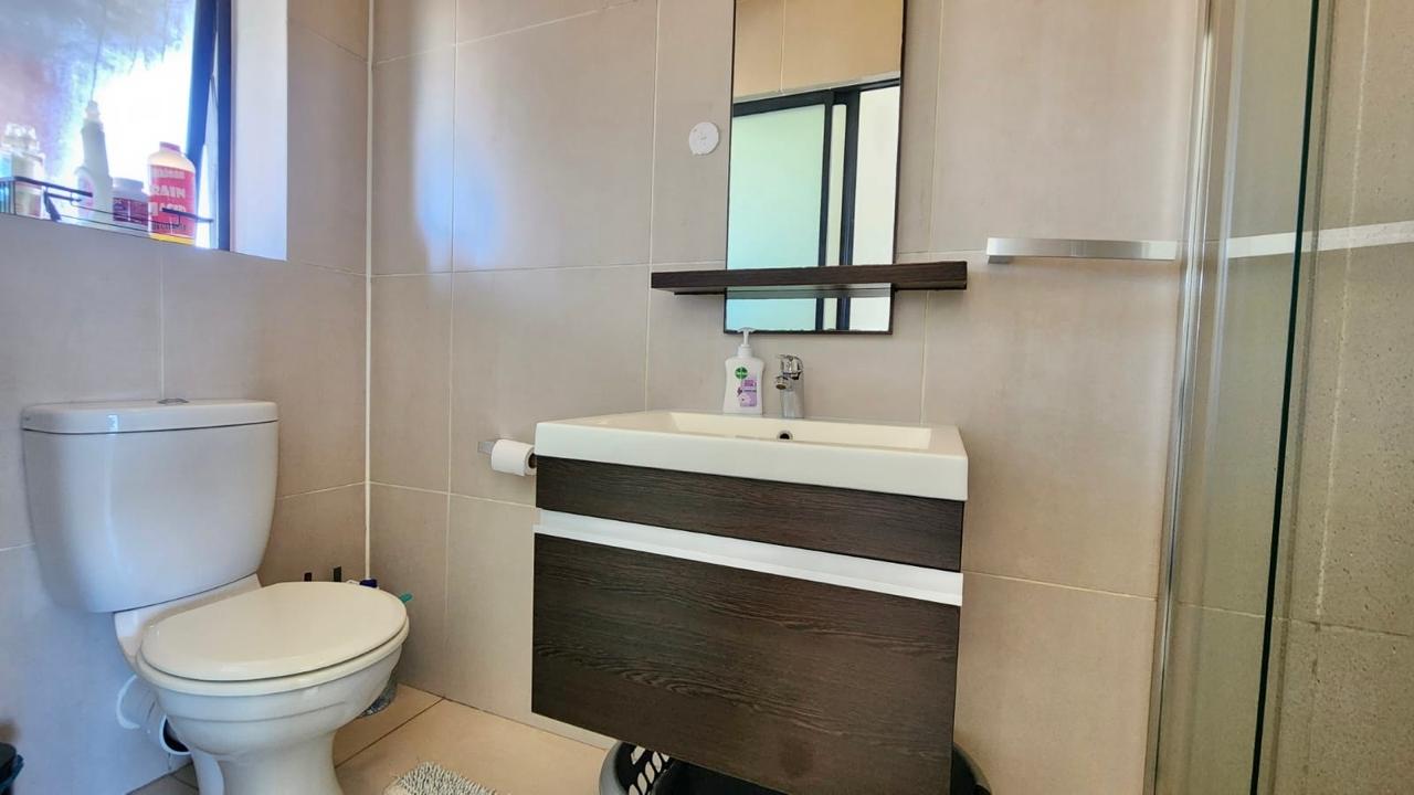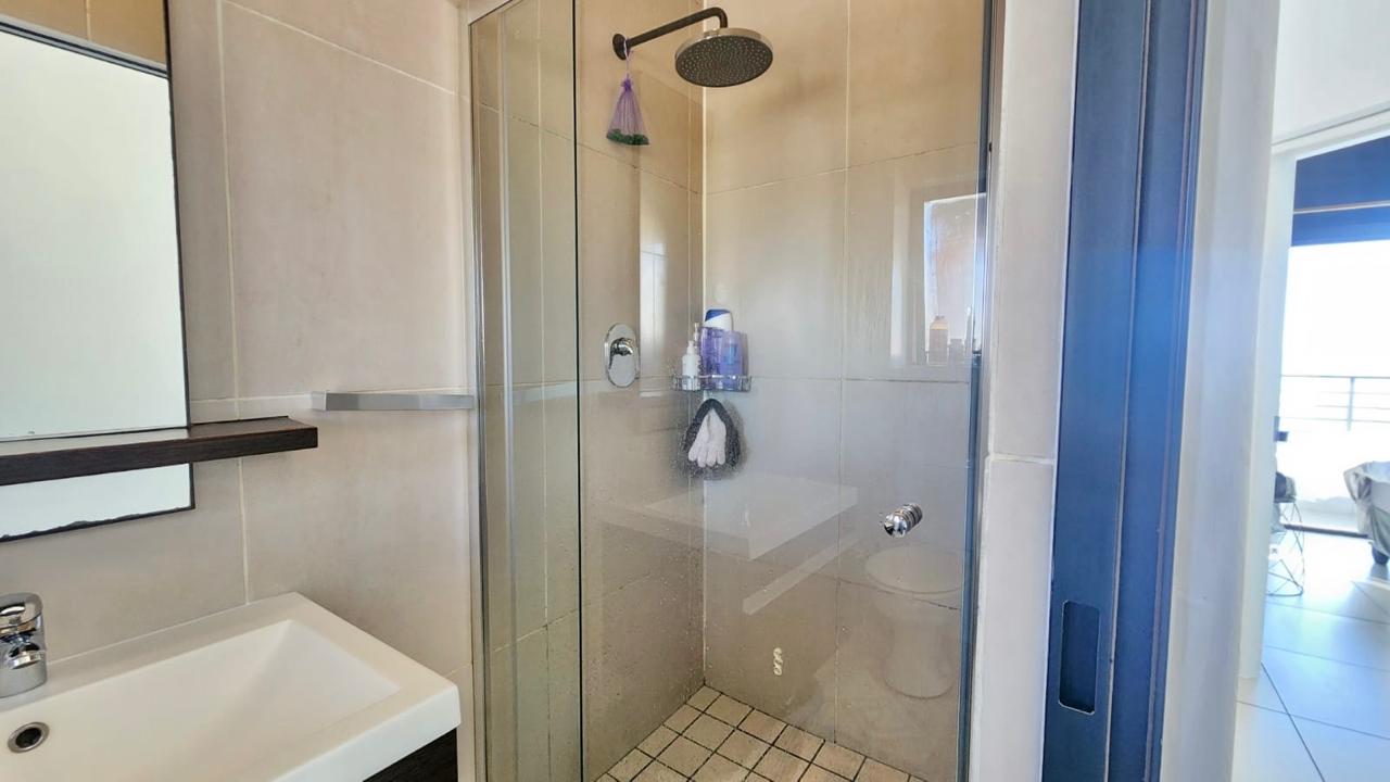 Bedroom has ample cupboard space and is a decent size easily accommodating a queen size bed set. Bedroom is separate from the living area. The unit is very modern. Bathroom is neat and offers a shower.