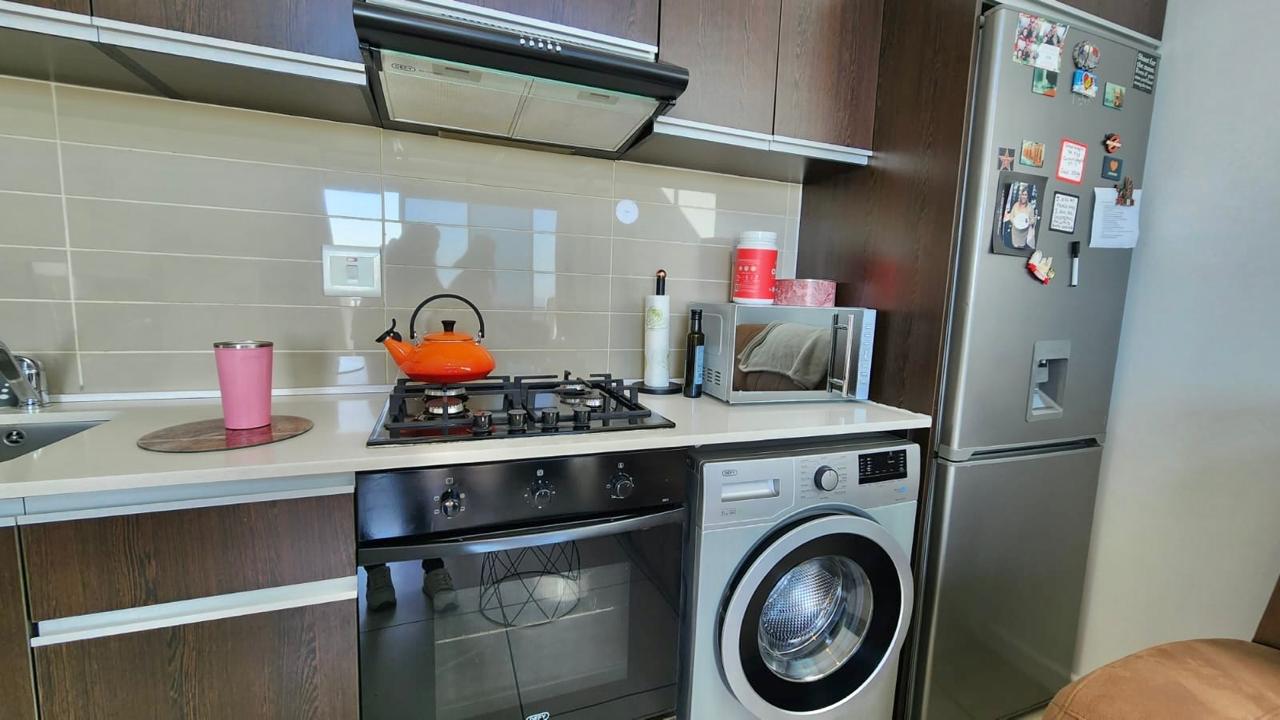 Kitchen boasts granite counter tops and a gas stove with oven and hob. Includes washing machine and dishwasher.