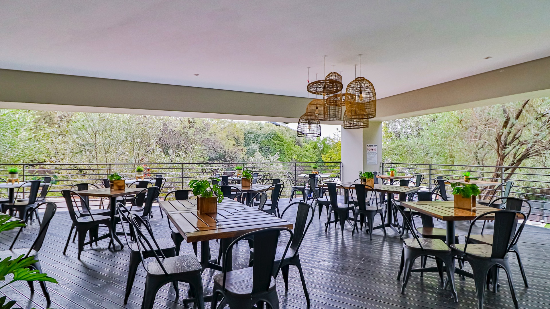 Living room flows onto a covered balcony offering views and perfect for afternoon Sundowners.