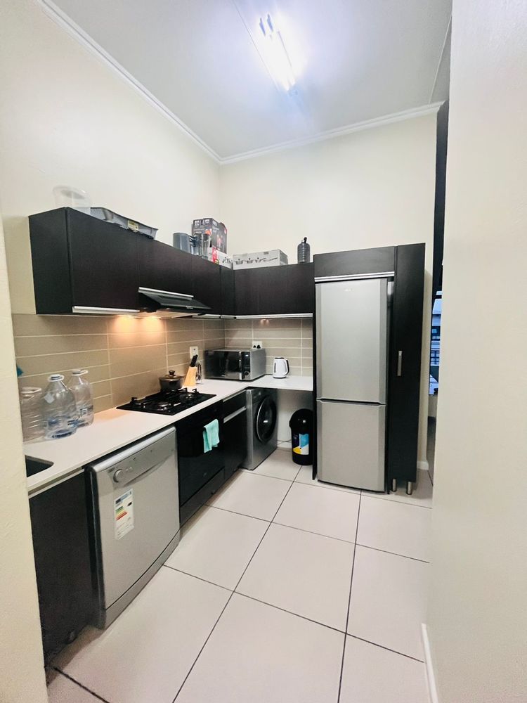 This unit offers a separate kitchen and lounge, providing a more private and functional space. The modern kitchen comes fully fitted and includes essential appliances: fridge, washing machine, and dishwasher—ideal for hassle-free living or immediate rental use.