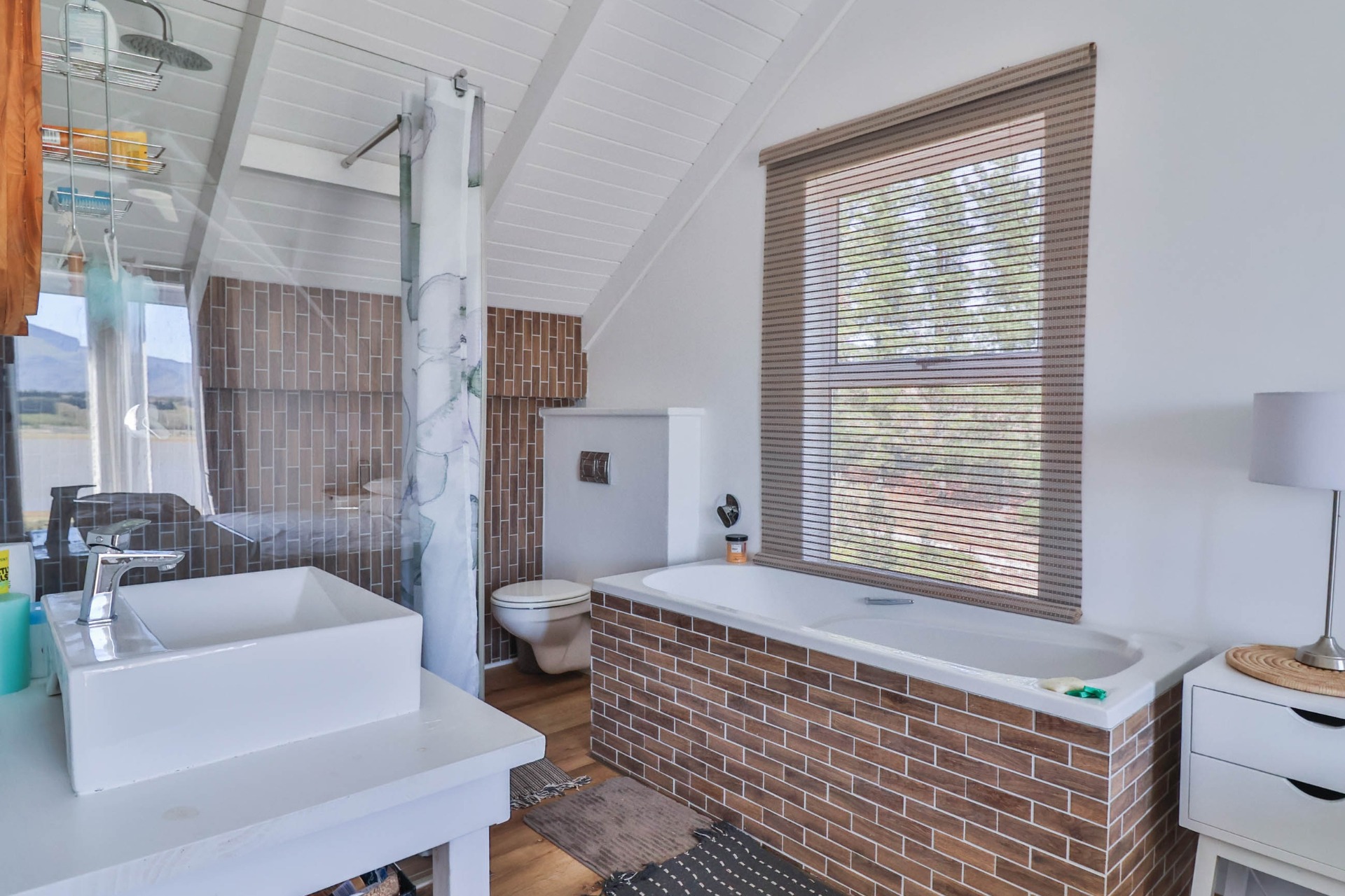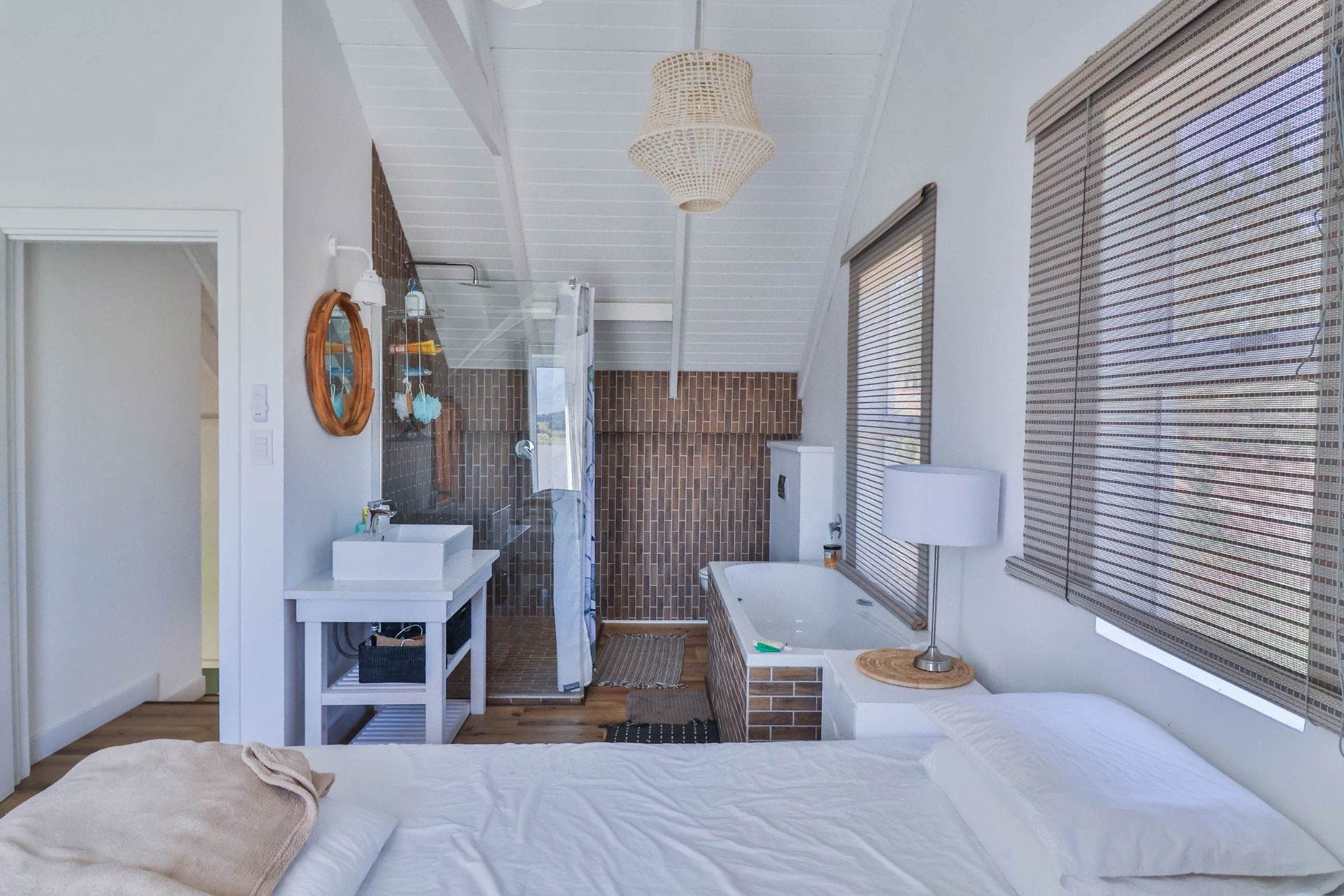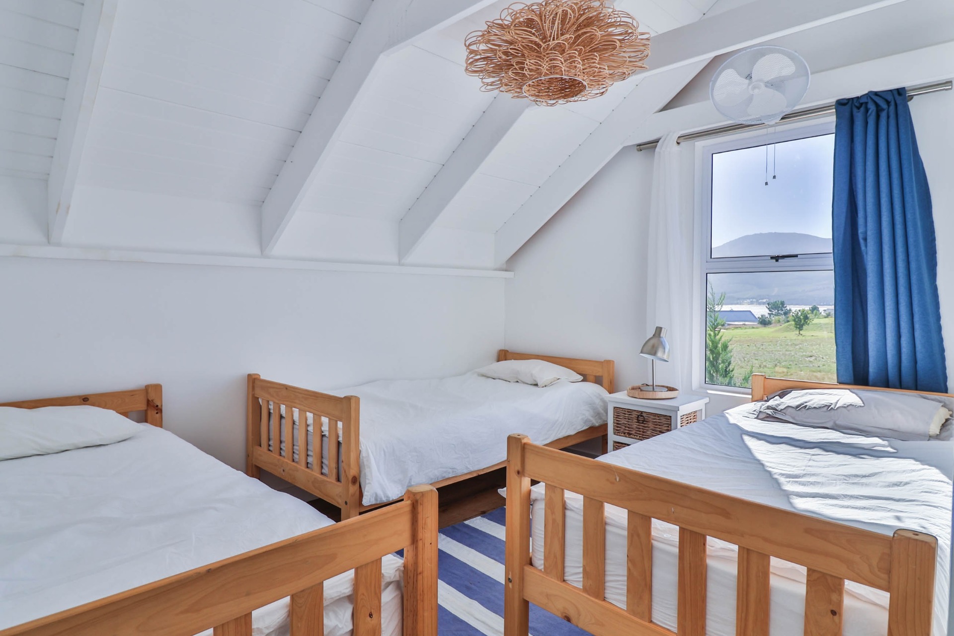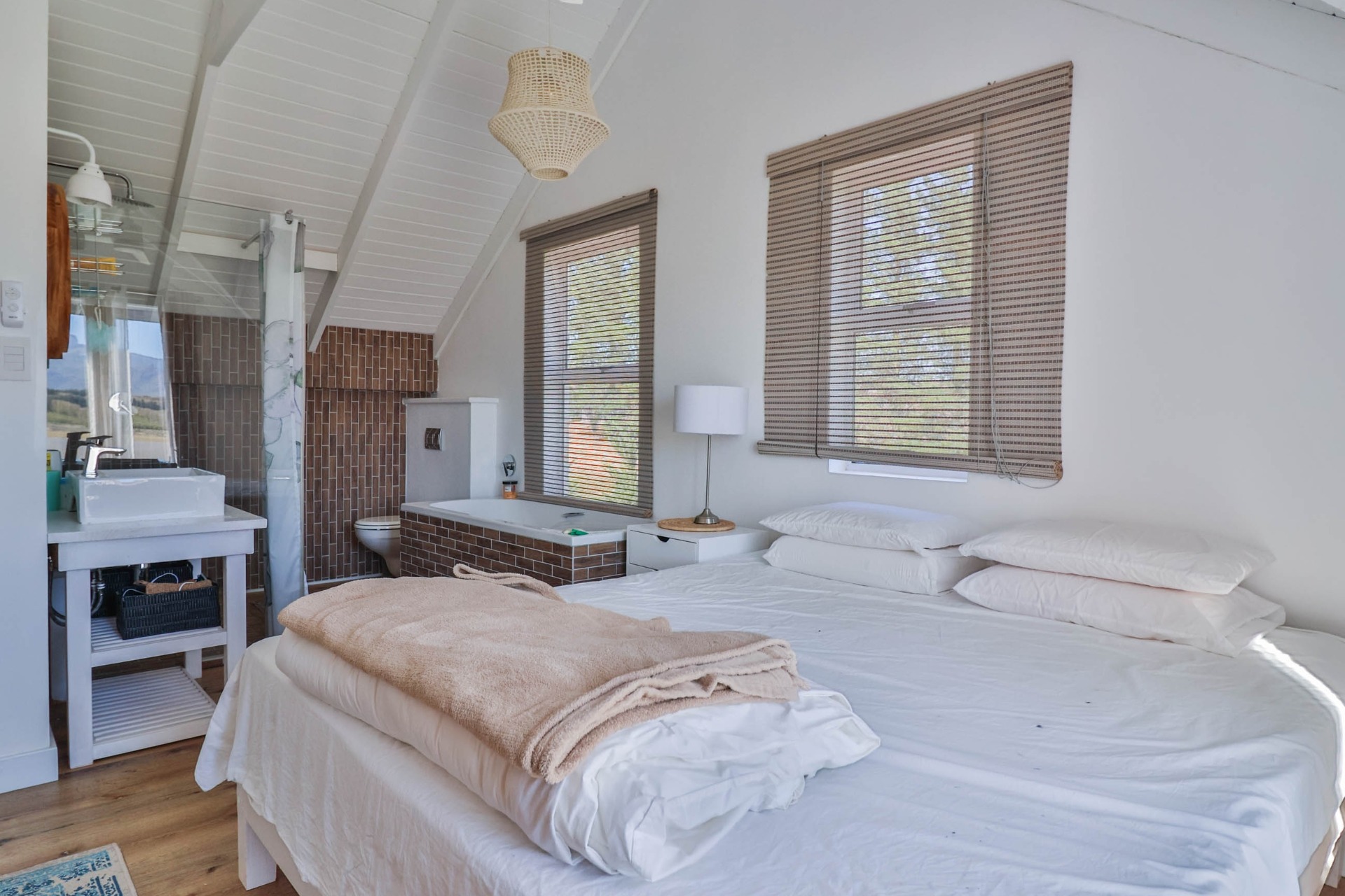 Step inside to discover expansive living spaces adorned with contemporary furnishings and elegant decor. The open-plan layout includes a fully-equipped kitchen, and a cozy lounge with panoramic stacker doors overlooking the dam.