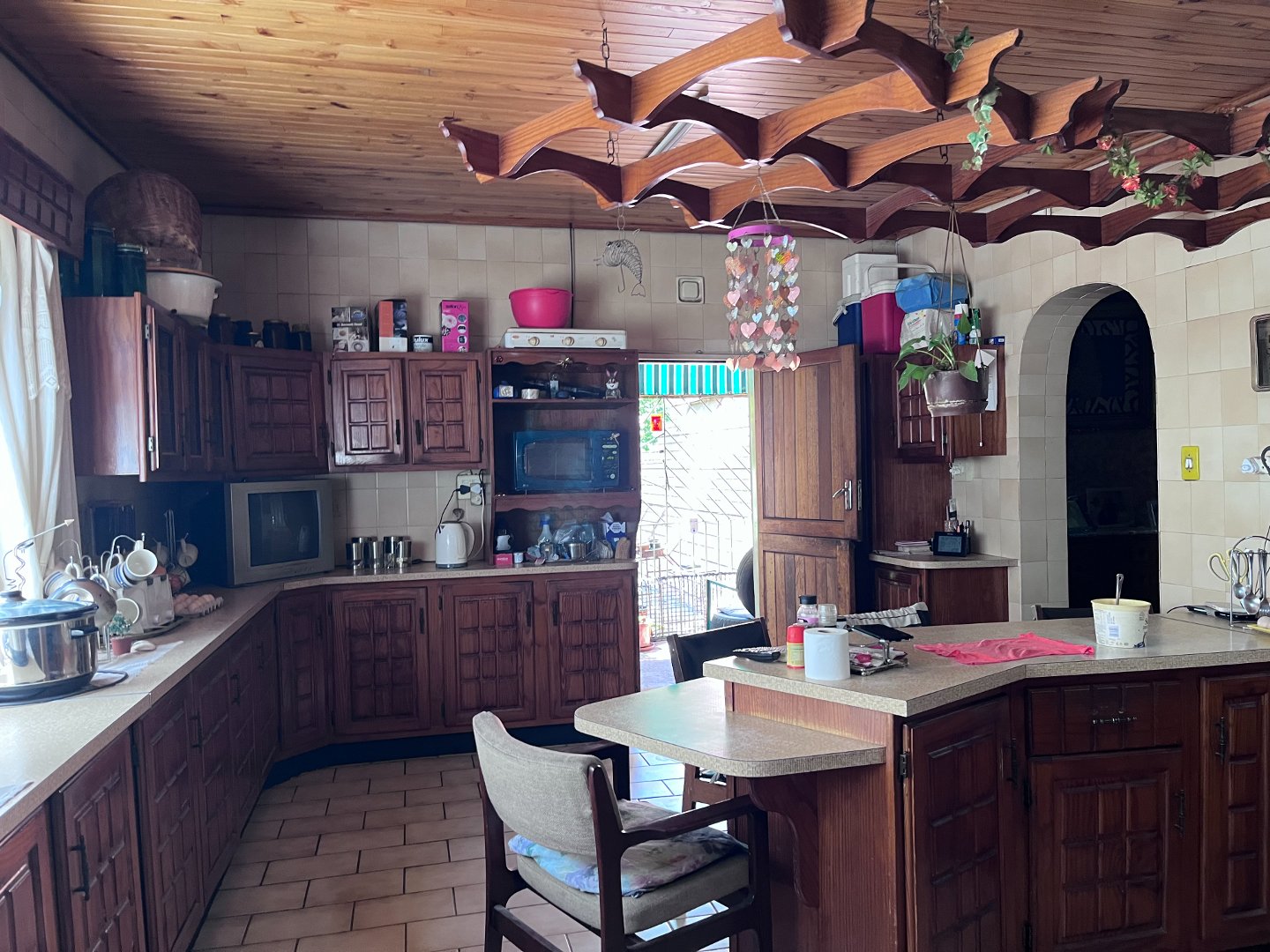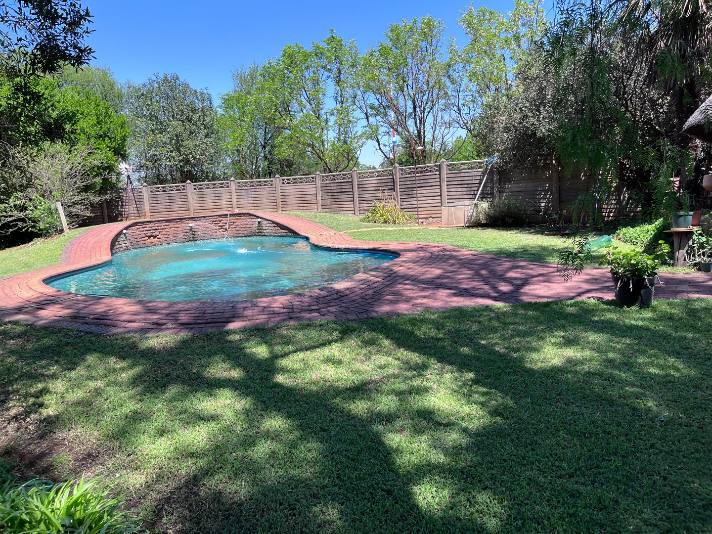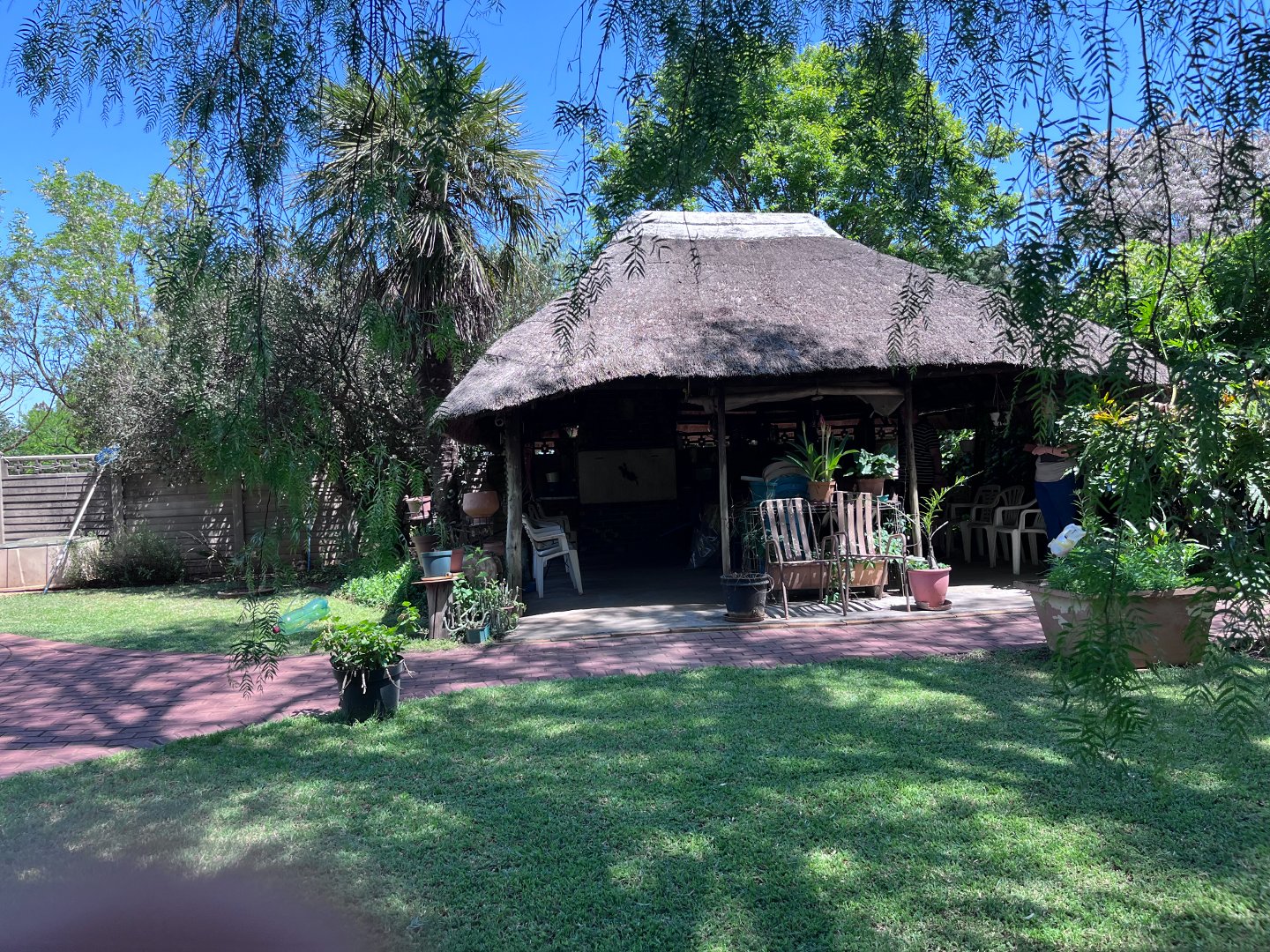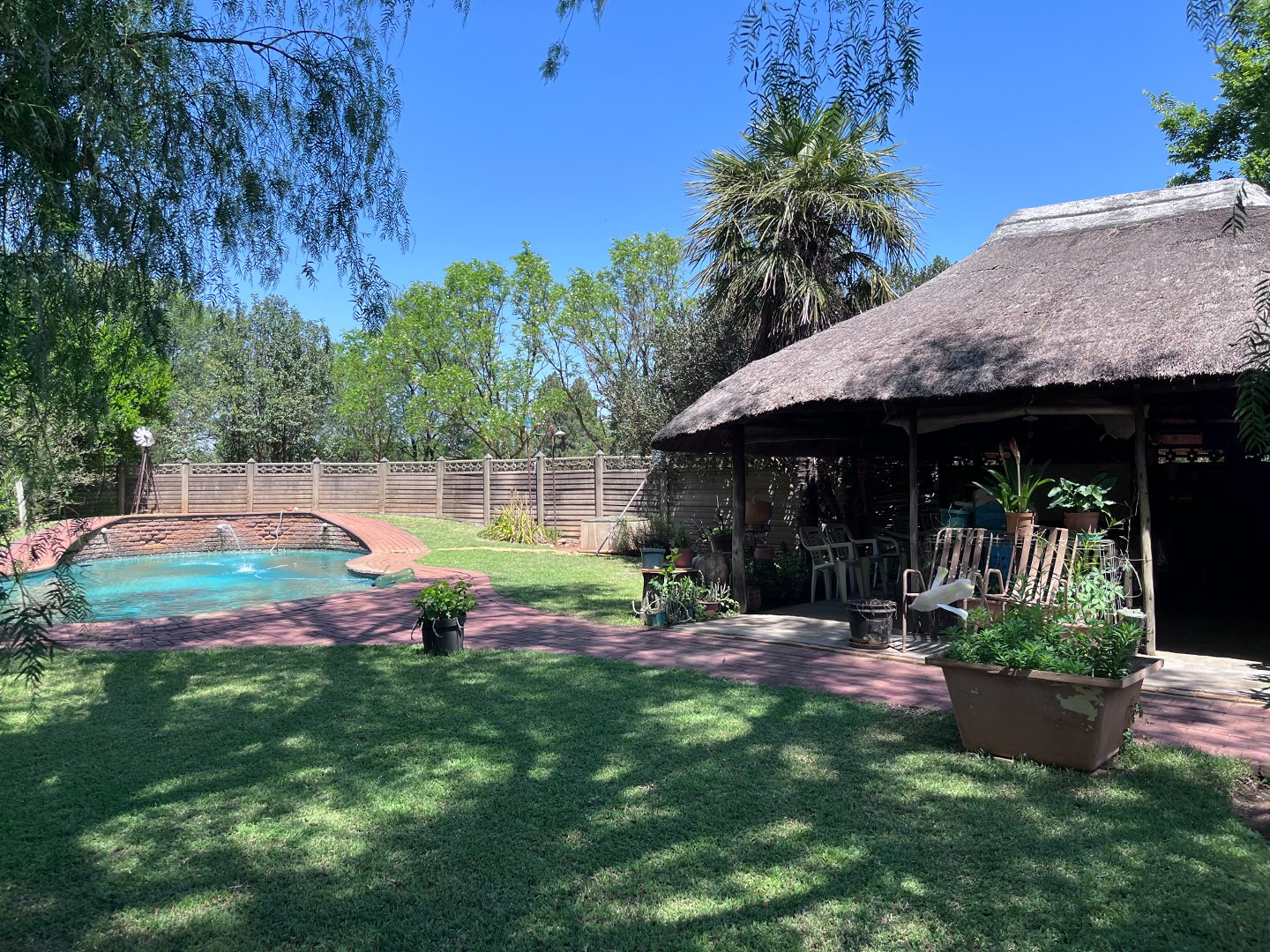 The house has 4 bedrooms, 2 bathrooms, kitchen with scullery, lounge, dining room, tv room and a huge store. The property also offers a rondawel, a flatlet, a lovely pool and lapa.