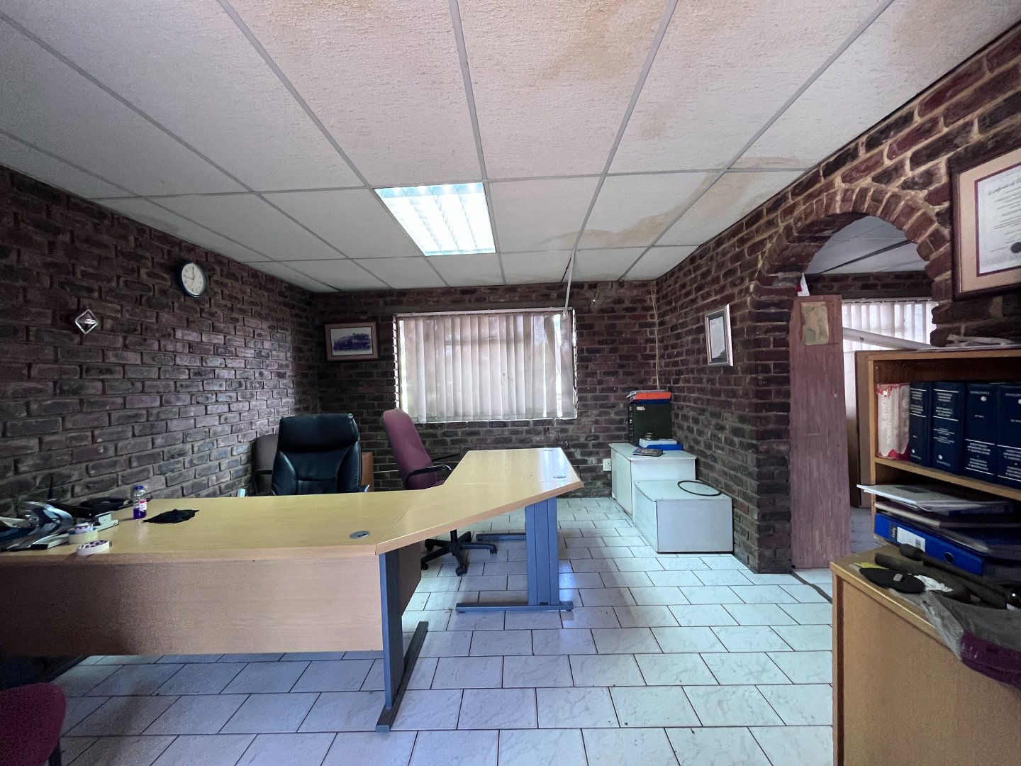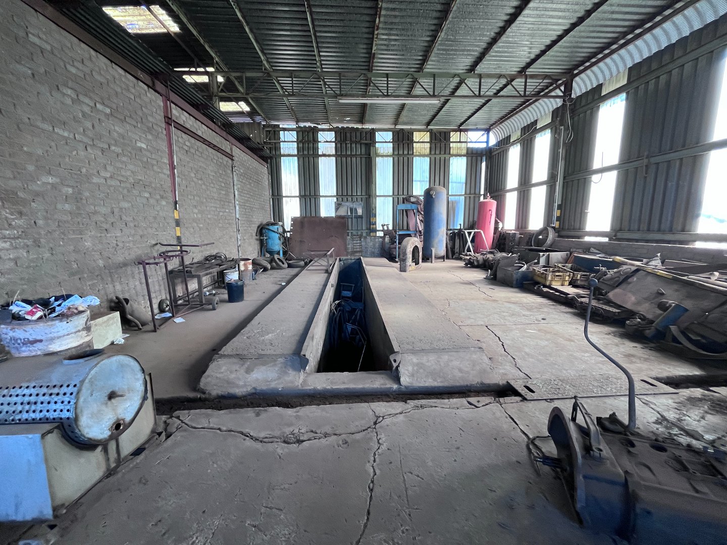 It offers offices, a large workshop with a hydraulic car lift , a service pit, under ground diesel tanks, sheds, store rooms, bathrooms and kitchen.
