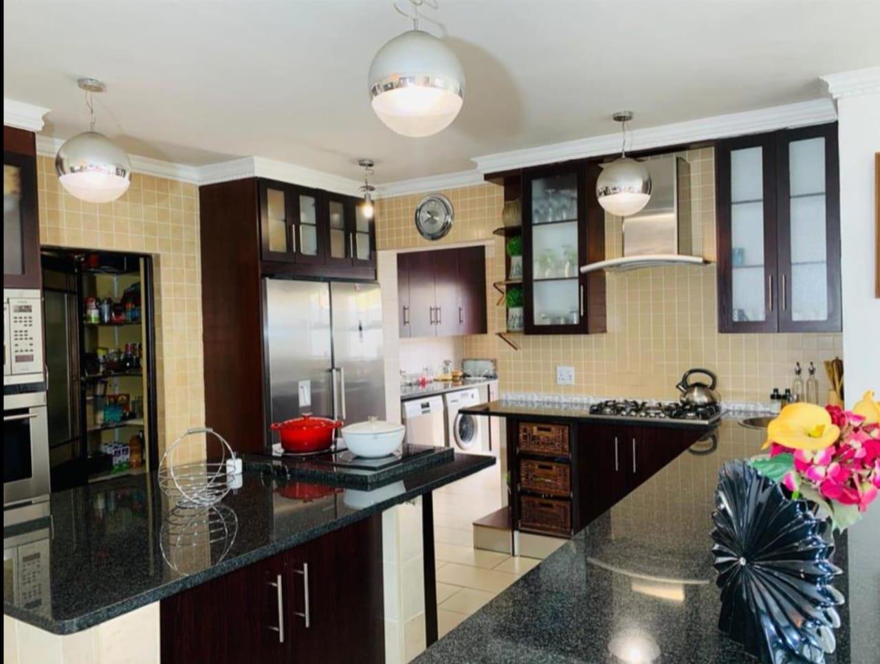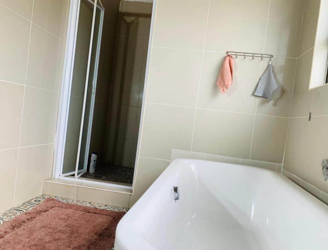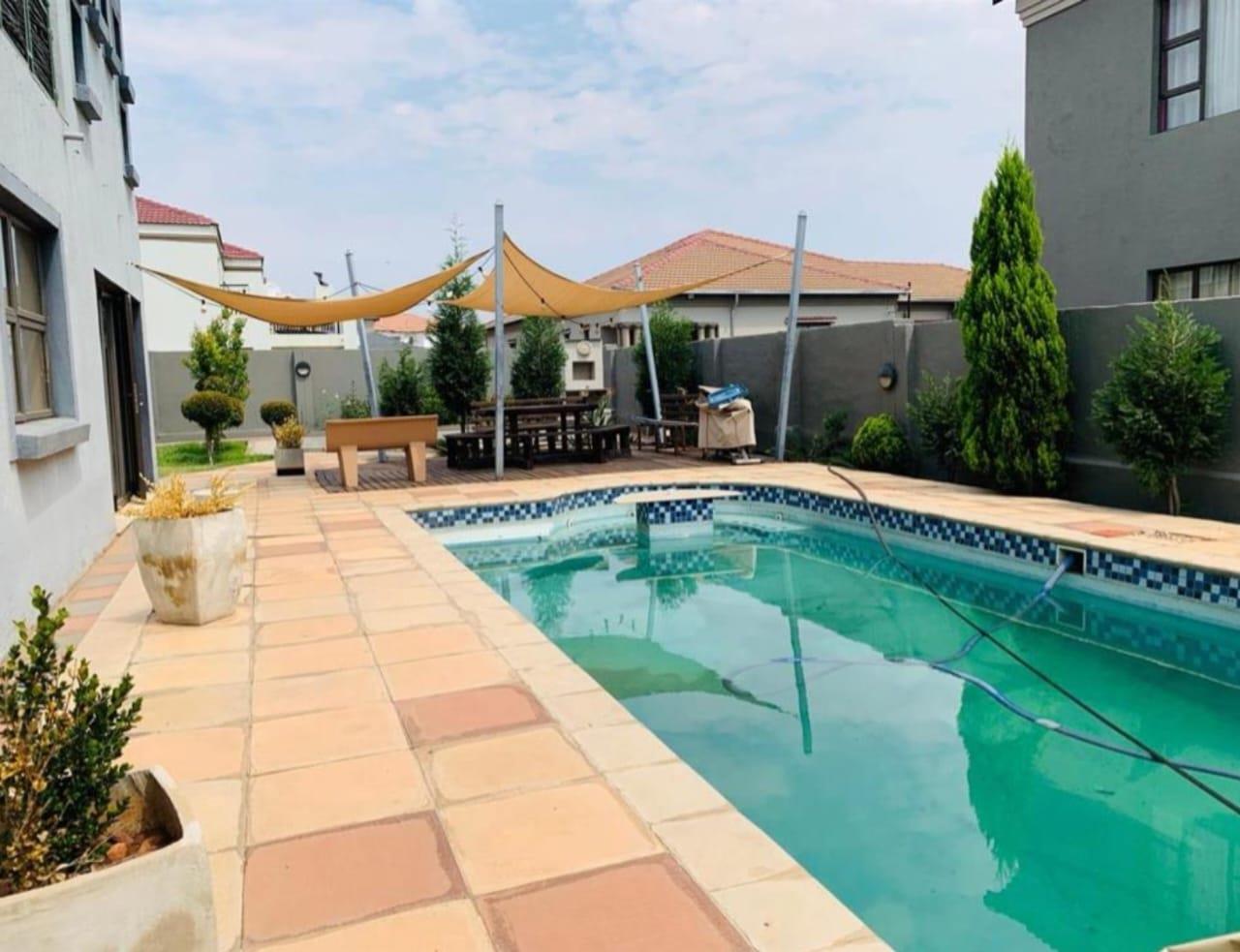 This lovely home has 4 bedrooms with 3 bedrooms, that includes 3 bedrooms in the main house and 1 bedroom on the outside with own bathroom , guest toilet, 1 lounge, 1 TV room, study, Dining and a kitchen with scullery.