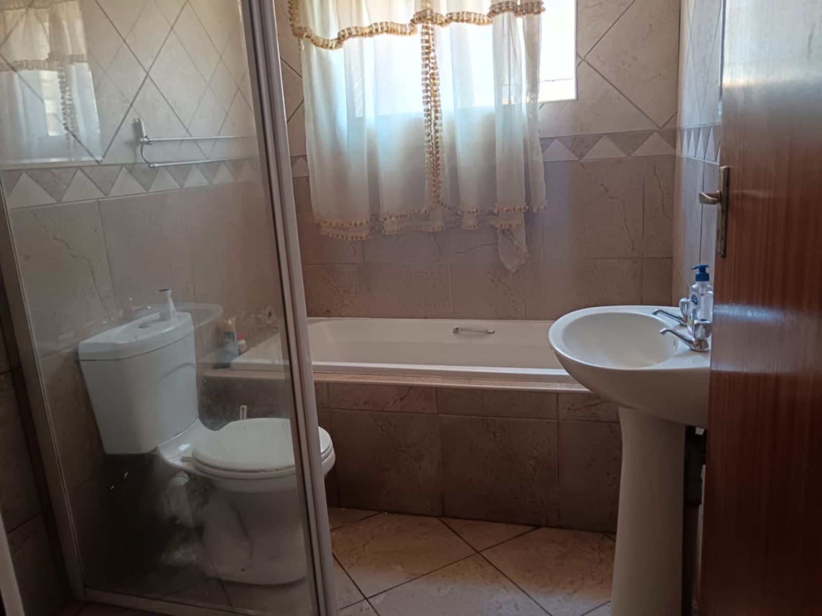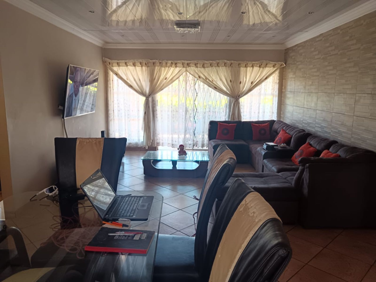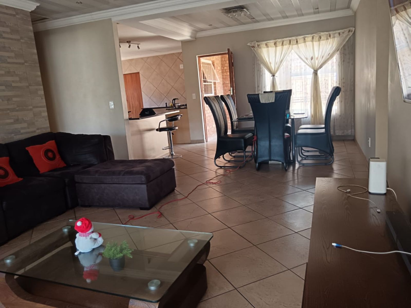 This property comprises of 3 well sized bedrooms all with BIC, a very huge kitchen with ample space, open plan dining, 2 bathrooms of which the main is en-suit, with the all ceiling is parceling, double garage , carport that parks 2 cars, parking space for 4 cars a tilled veranda, sliding door that leads to the veranda.