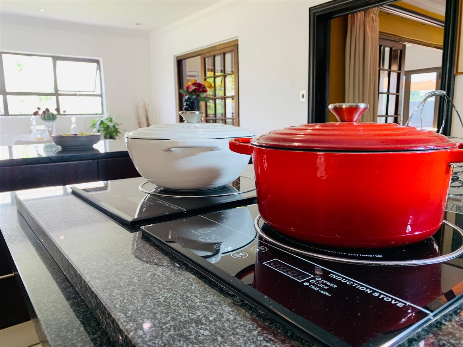 ·Modern kitchen featuring both induction and gas stove options