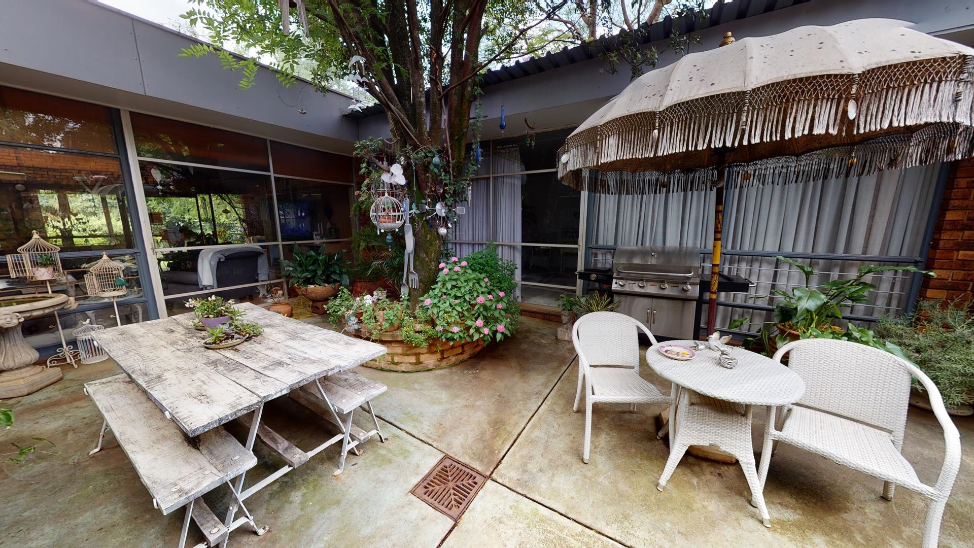 This property features two separate 3-bedroom houses. The first home is a spacious family residence with a double garage, a veranda overlooking a beautiful garden, and two entertainment areas. The lapa includes a bar, braai, and a swimming pool.