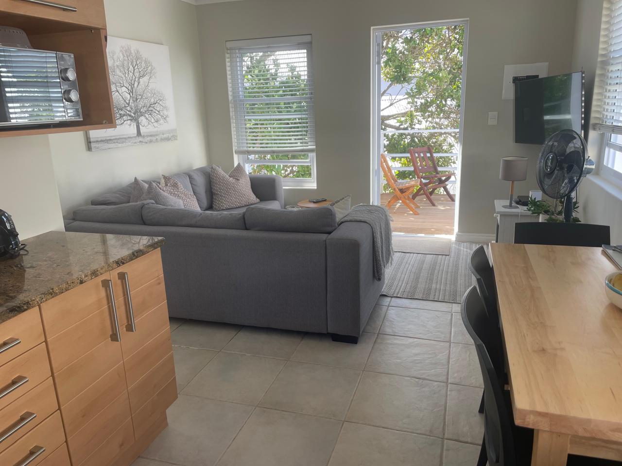 Bright and inviting, the apartment features an open-plan living area, a functional kitchen, and two well-sized bedrooms serviced by a full bathroom. A private outdoor deck with braai facilities provides a pleasant space to relax and enjoy Knysna’s mild climate.