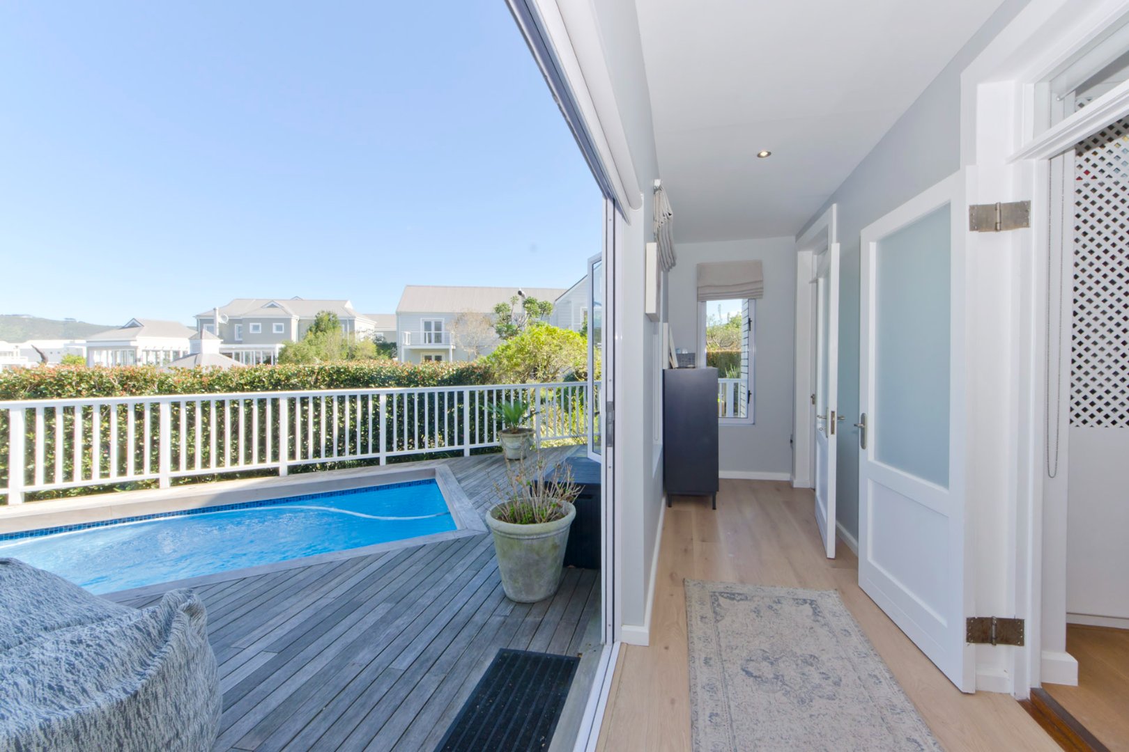 Oggi wood floors throughout the ground level brings a natural warmth that ties the home together. Glass stack doors open up on all sides of the living area, flows out to the deck, braai area, garden, and a large swimming pool — all overlooking the waterways. A private jetty. deck and gazebo additional provide the perfect setting for waterside entertaining or quiet reflection.