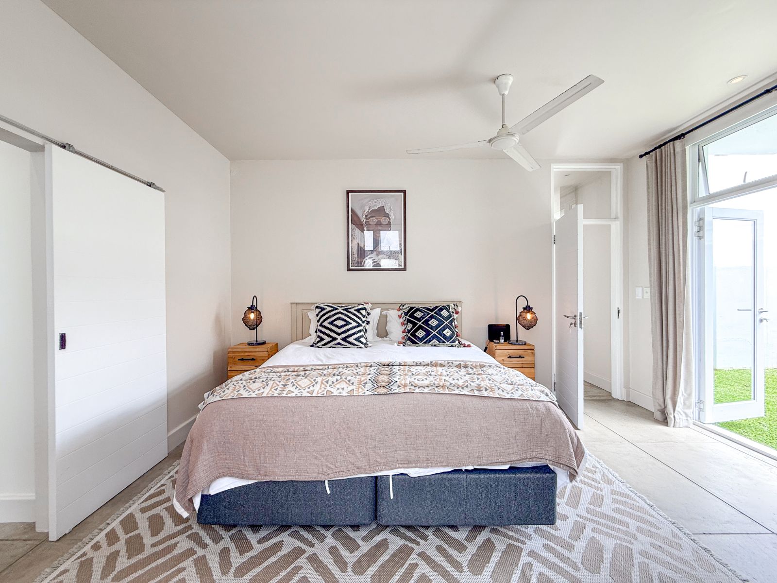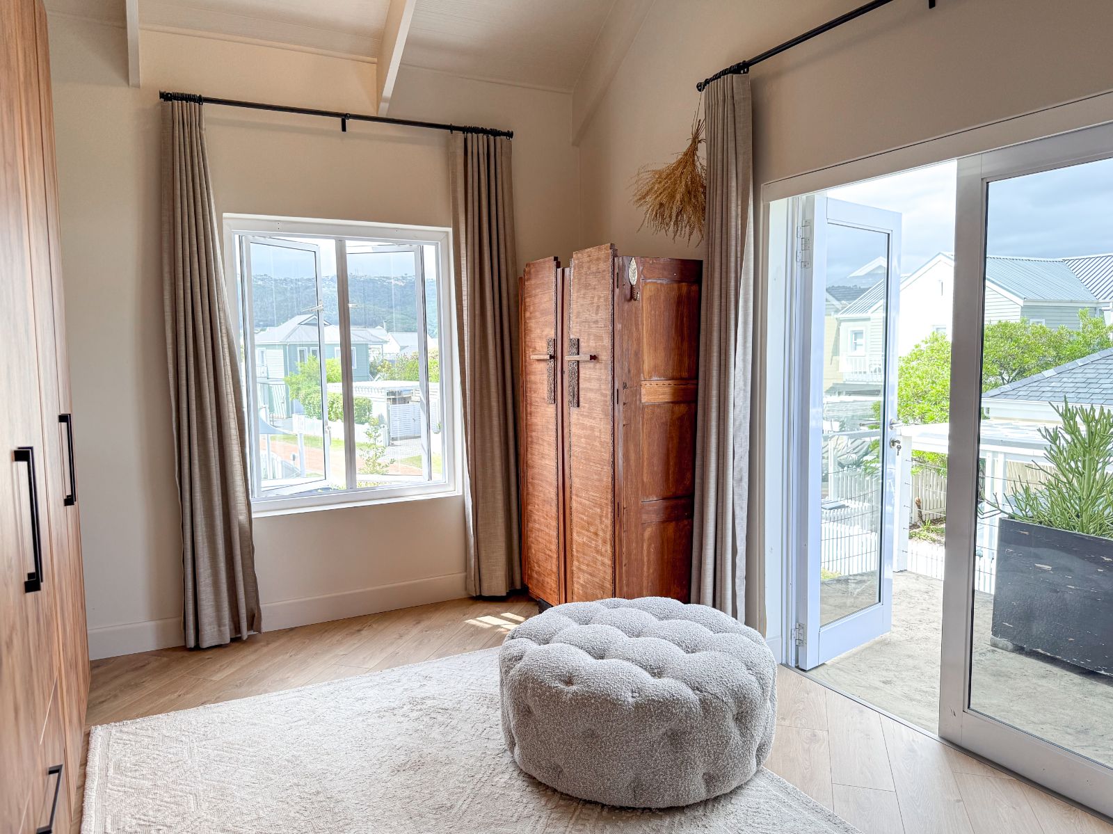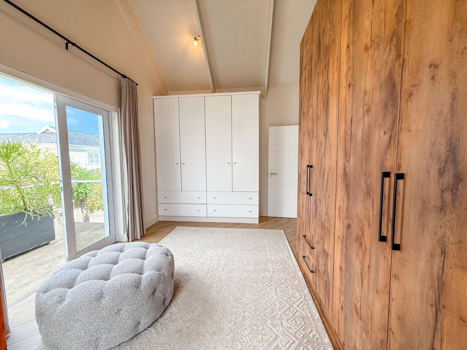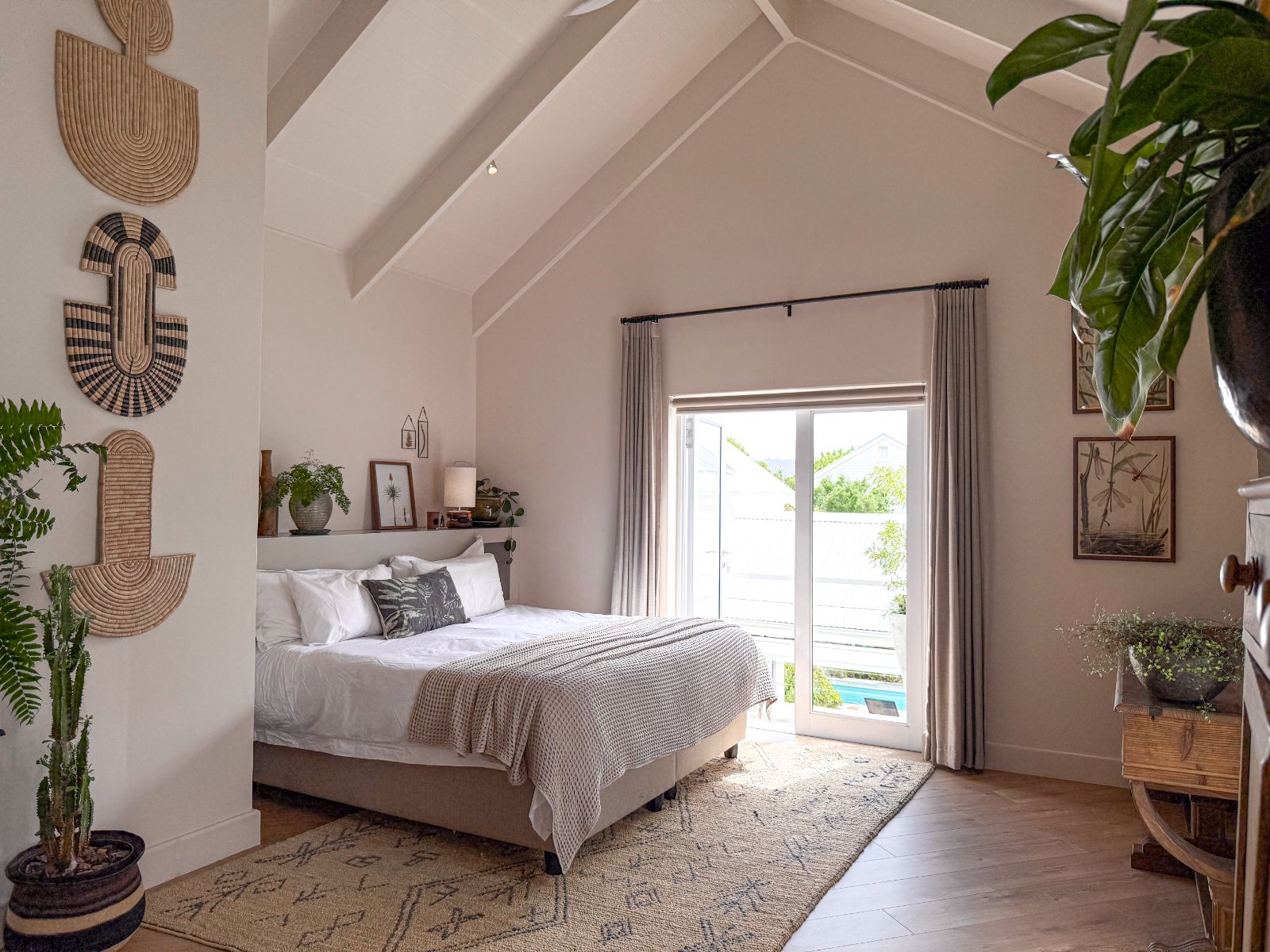 This home offers three spacious bedrooms, each with its own ensuite bathroom. The main suite is a private retreat with a walk-in closet and its own lounge—perfect as a nursery, extra bedroom, or home office. The second bedroom features two sets of French doors that open onto the garden, bringing in fresh air and tranquility. The third bedroom, with its own entrance, is ideal for guests or extended family.