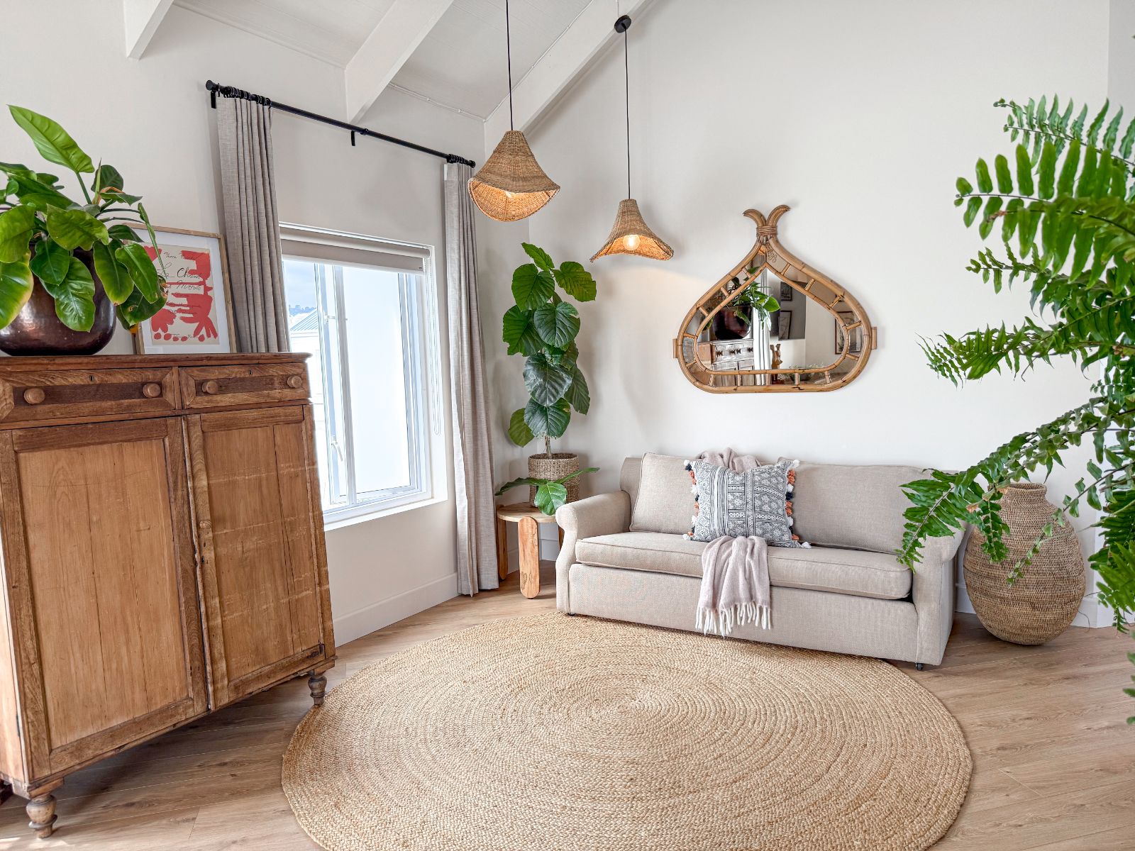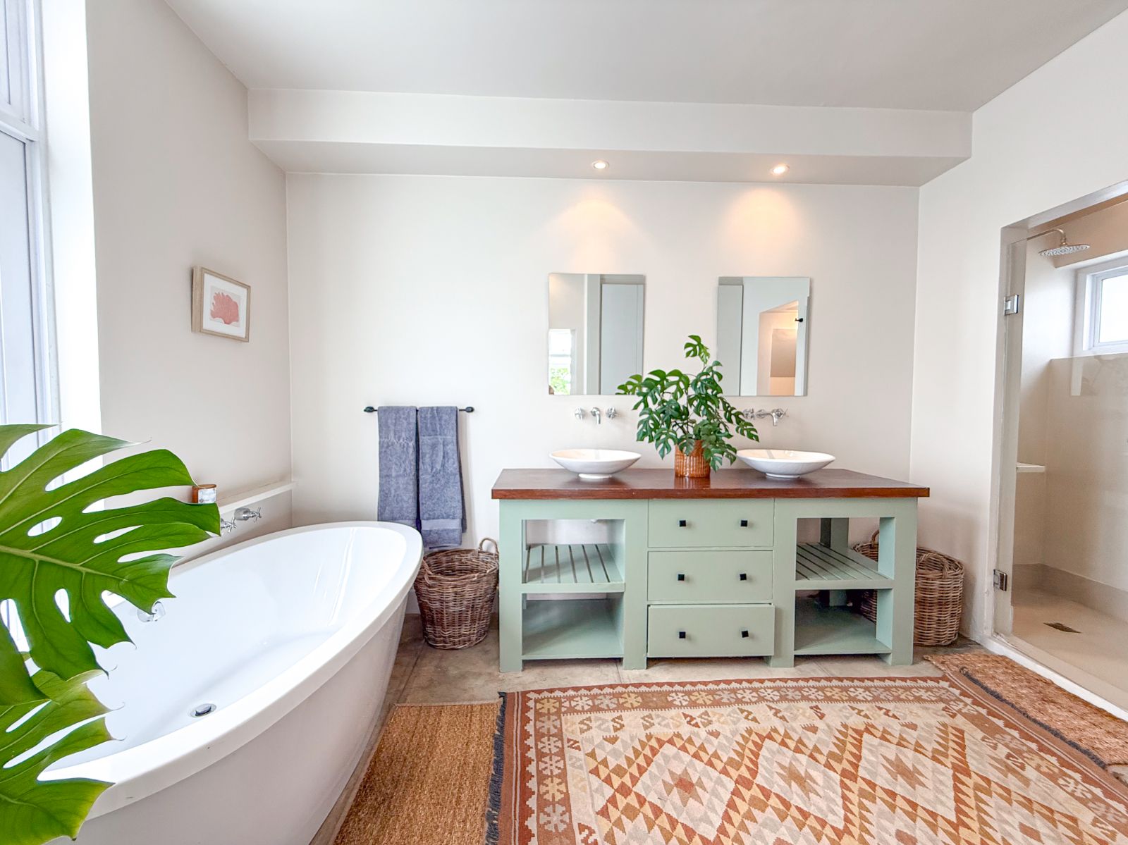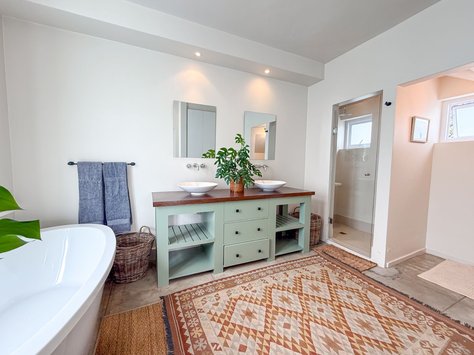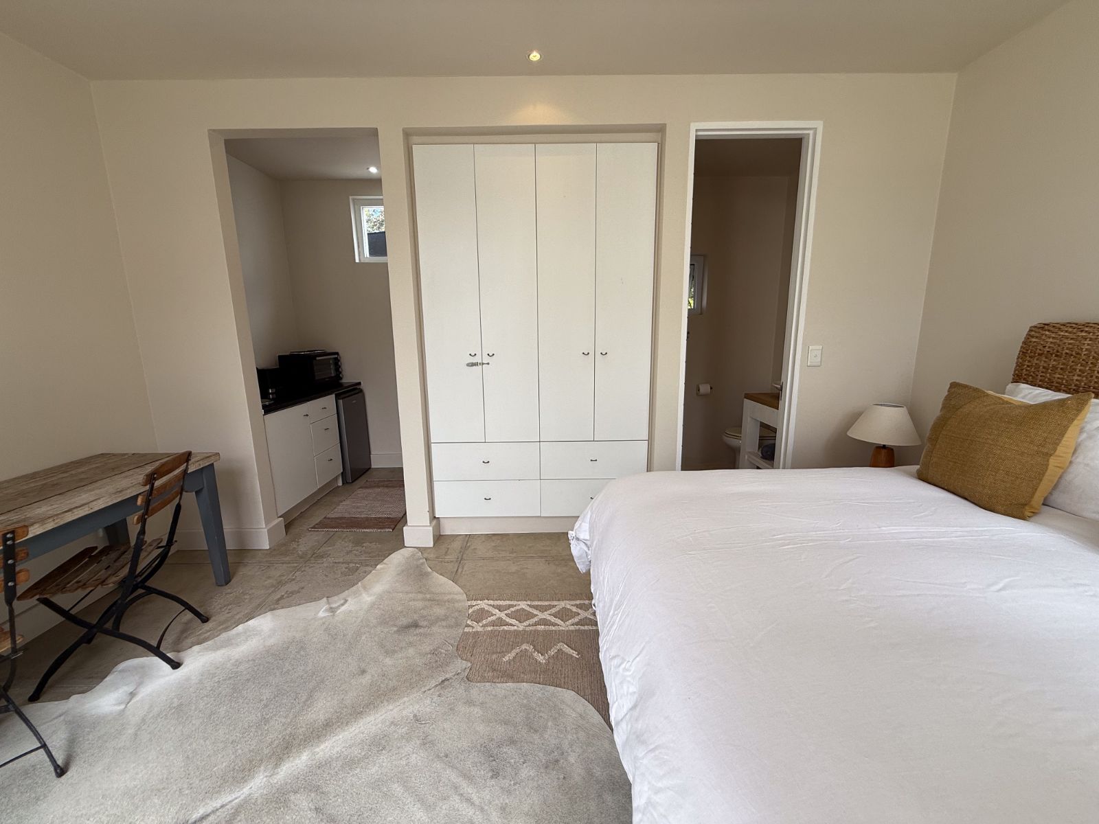 This home offers three spacious bedrooms, each with its own ensuite bathroom. The main suite is a private retreat with a walk-in closet and its own lounge—perfect as a nursery, extra bedroom, or home office. The second bedroom features two sets of French doors that open onto the garden, bringing in fresh air and tranquility. The third bedroom, with its own entrance, is ideal for guests or extended family.