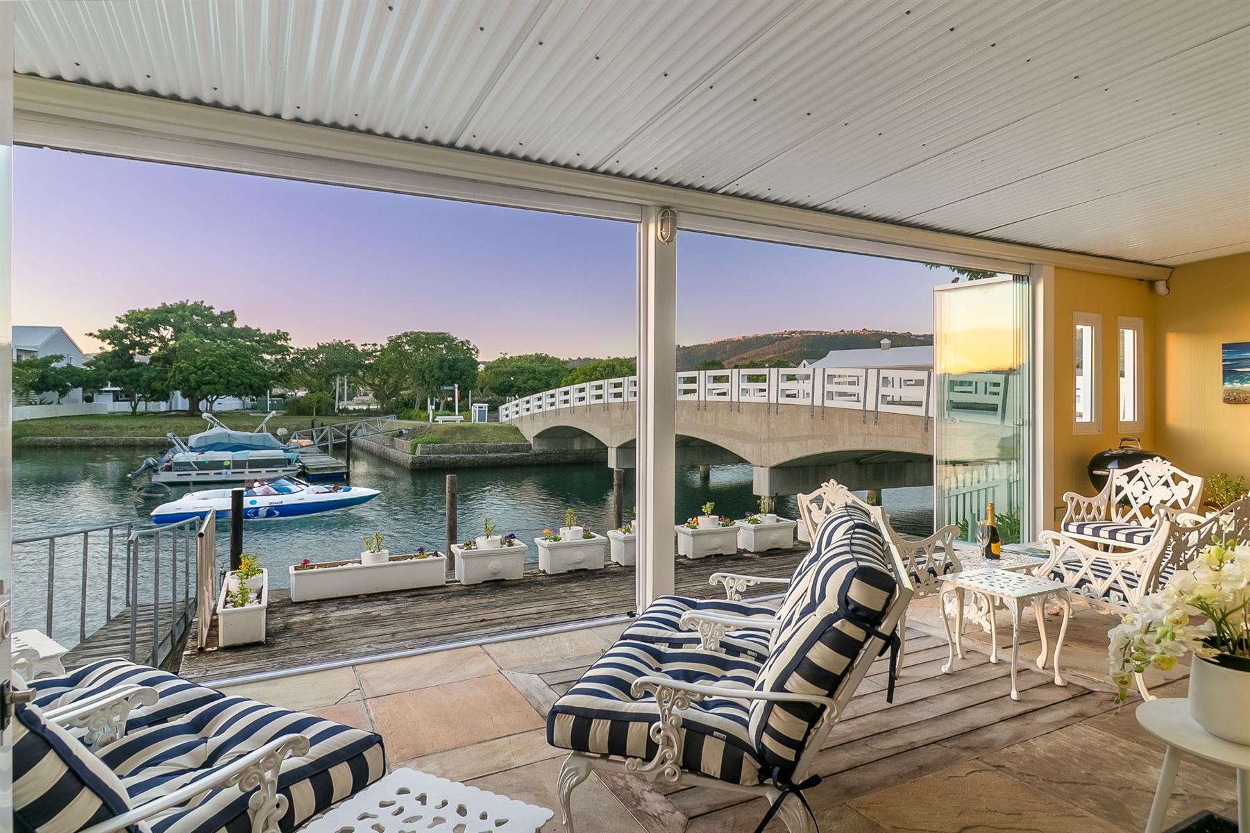 North-facing 4 bedroom family home on a wide canal on Thesen Island