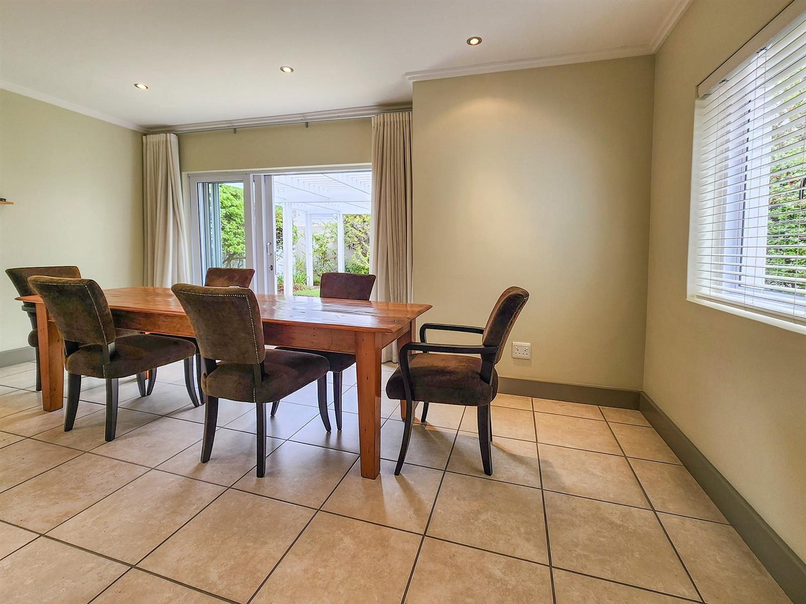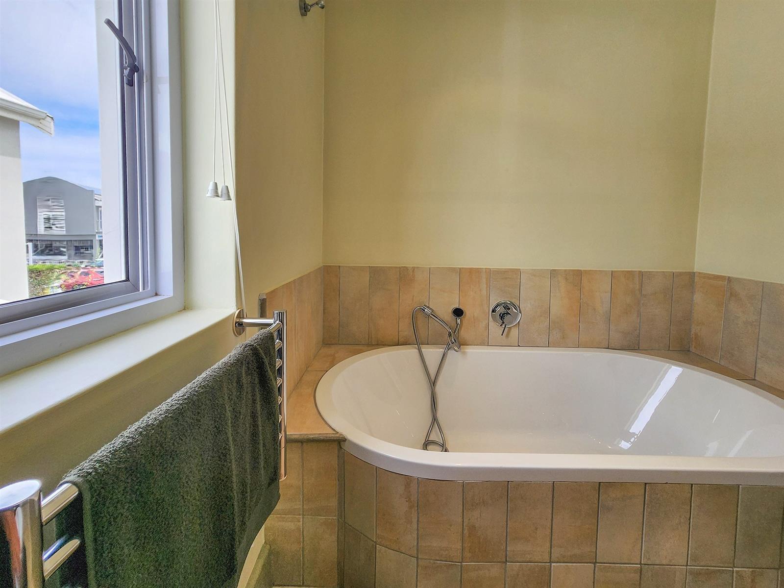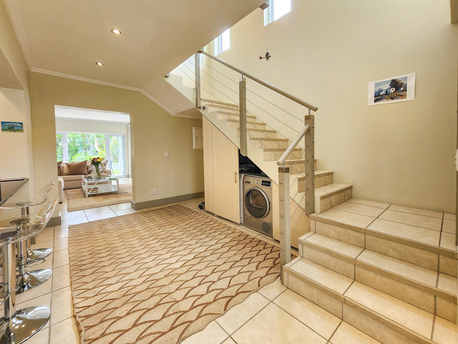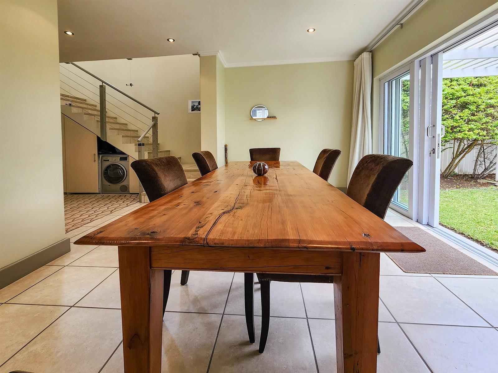 Situated on Thesen Island, this stylish unit offers three upstairs en-suite bedrooms and an open-plan lounge, dining room, and kitchen on the lower level.