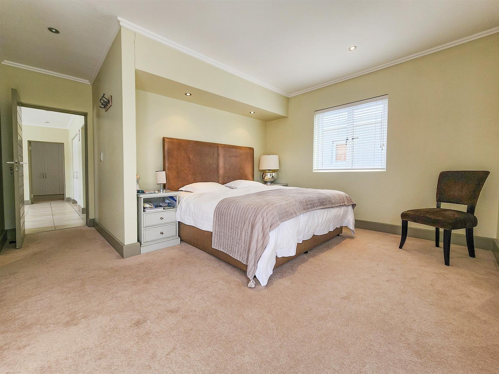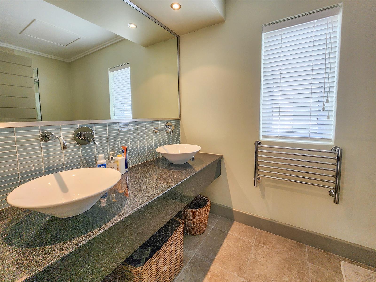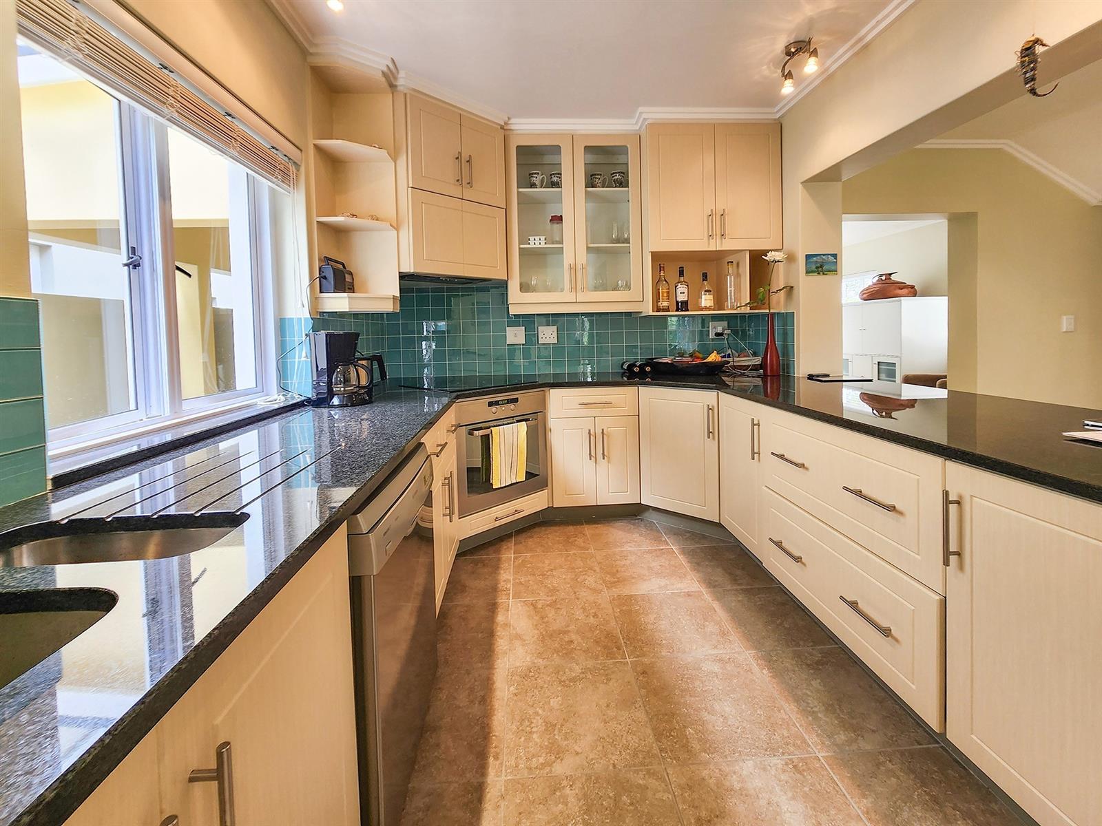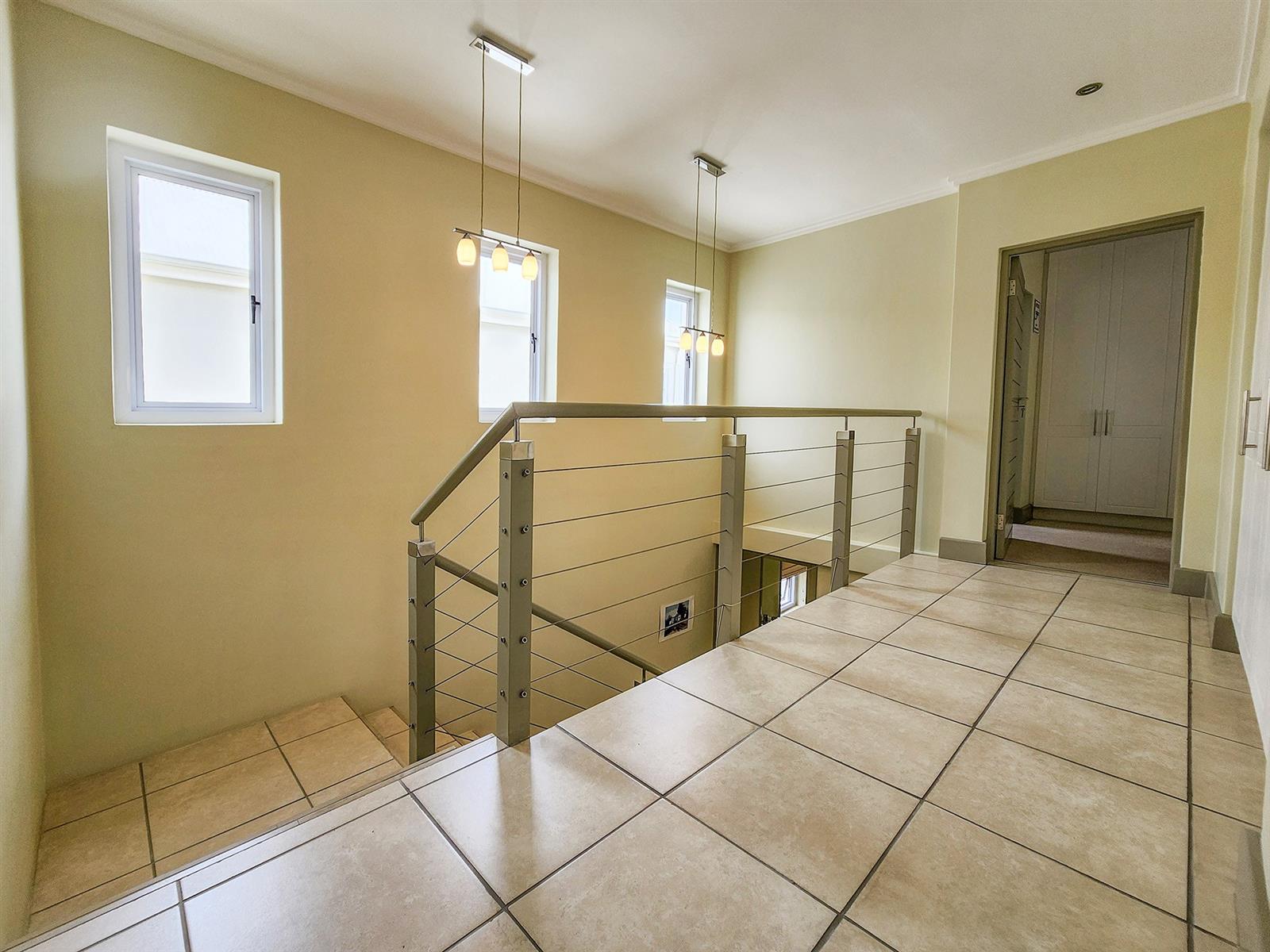 Situated on Thesen Island, this stylish unit offers three upstairs en-suite bedrooms and an open-plan lounge, dining room, and kitchen on the lower level.