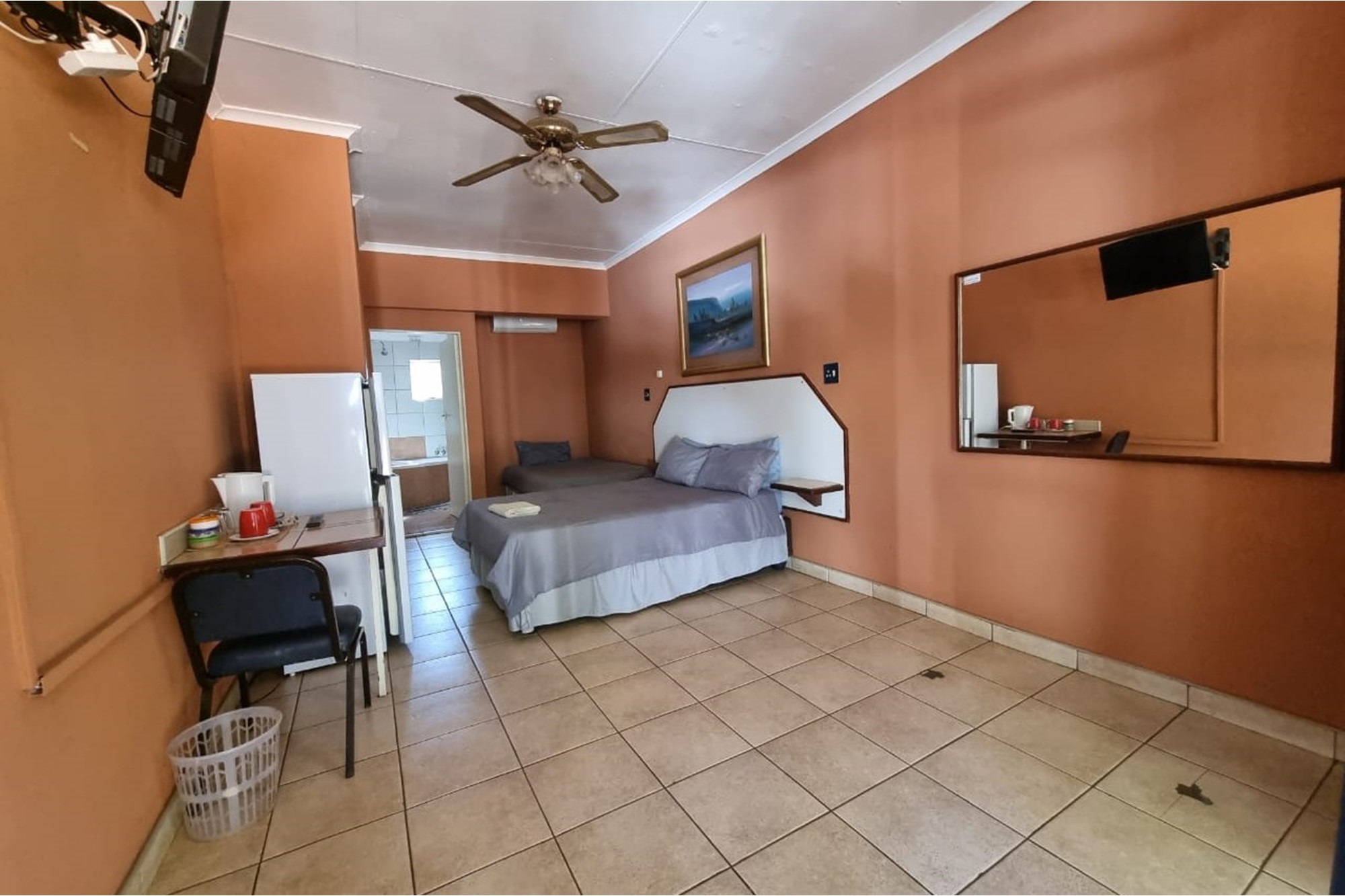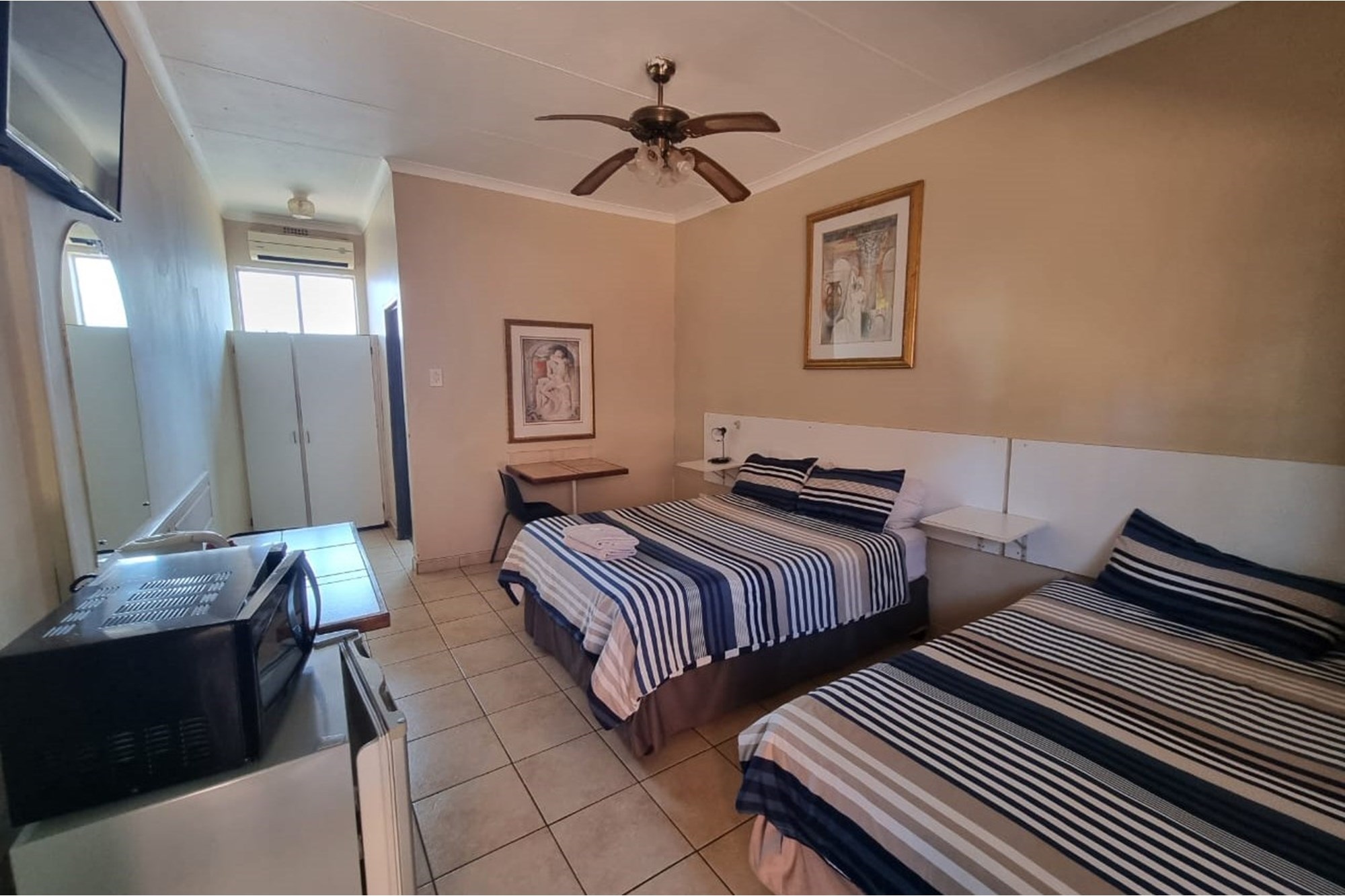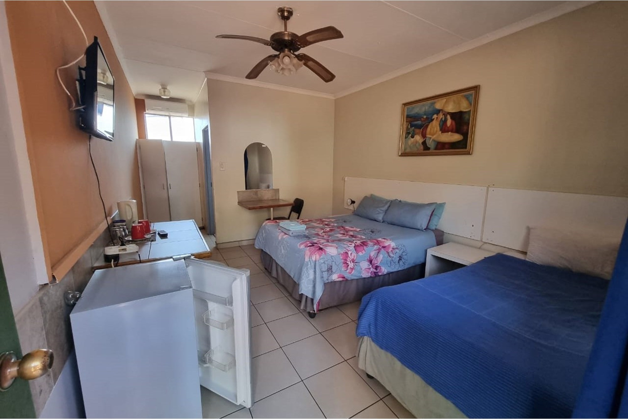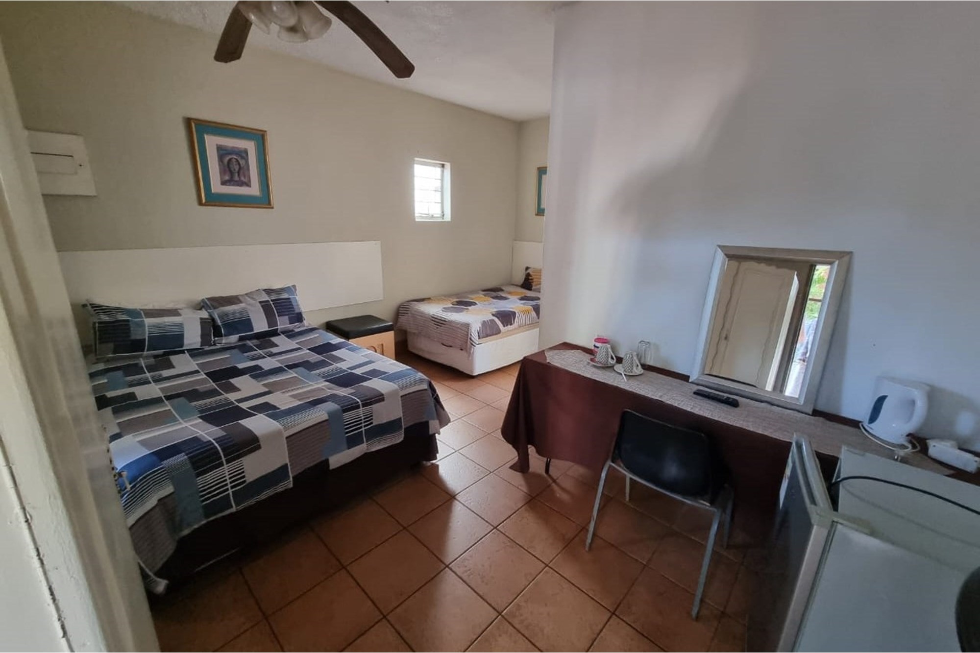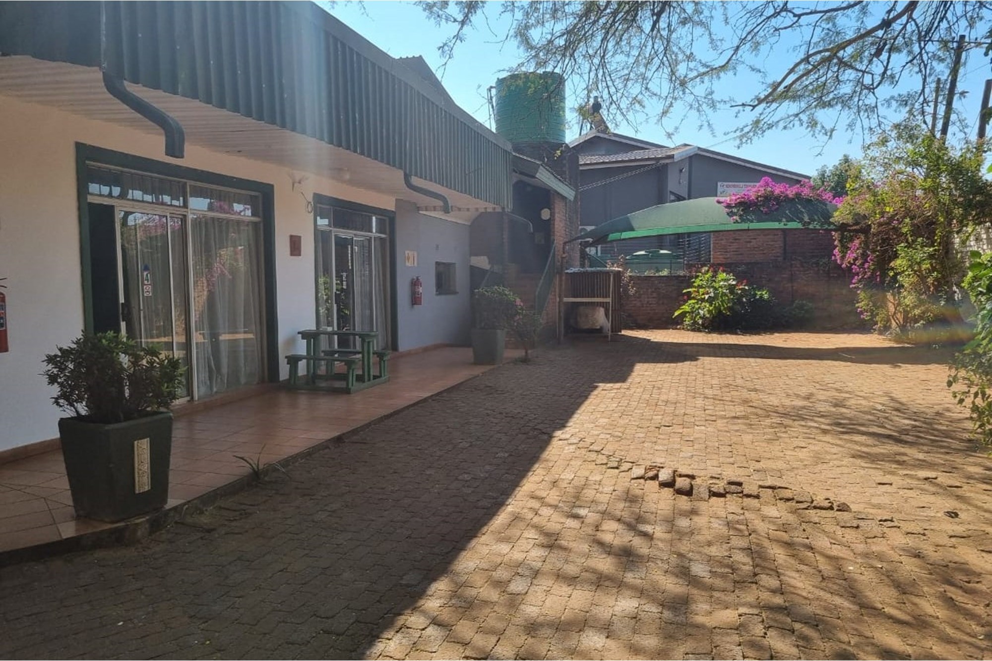 The guesthouse features 19 rooms, each beautifully furnished and equipped with air conditioning and ceiling fans, providing a comfortable and modern environment. The establishment includes a well-maintained garden, a charming courtyard, and striking water features that create a tranquil atmosphere for guests. Internet and DSTV services ensure seamless connectivity for business travelers and holidaymakers alike.