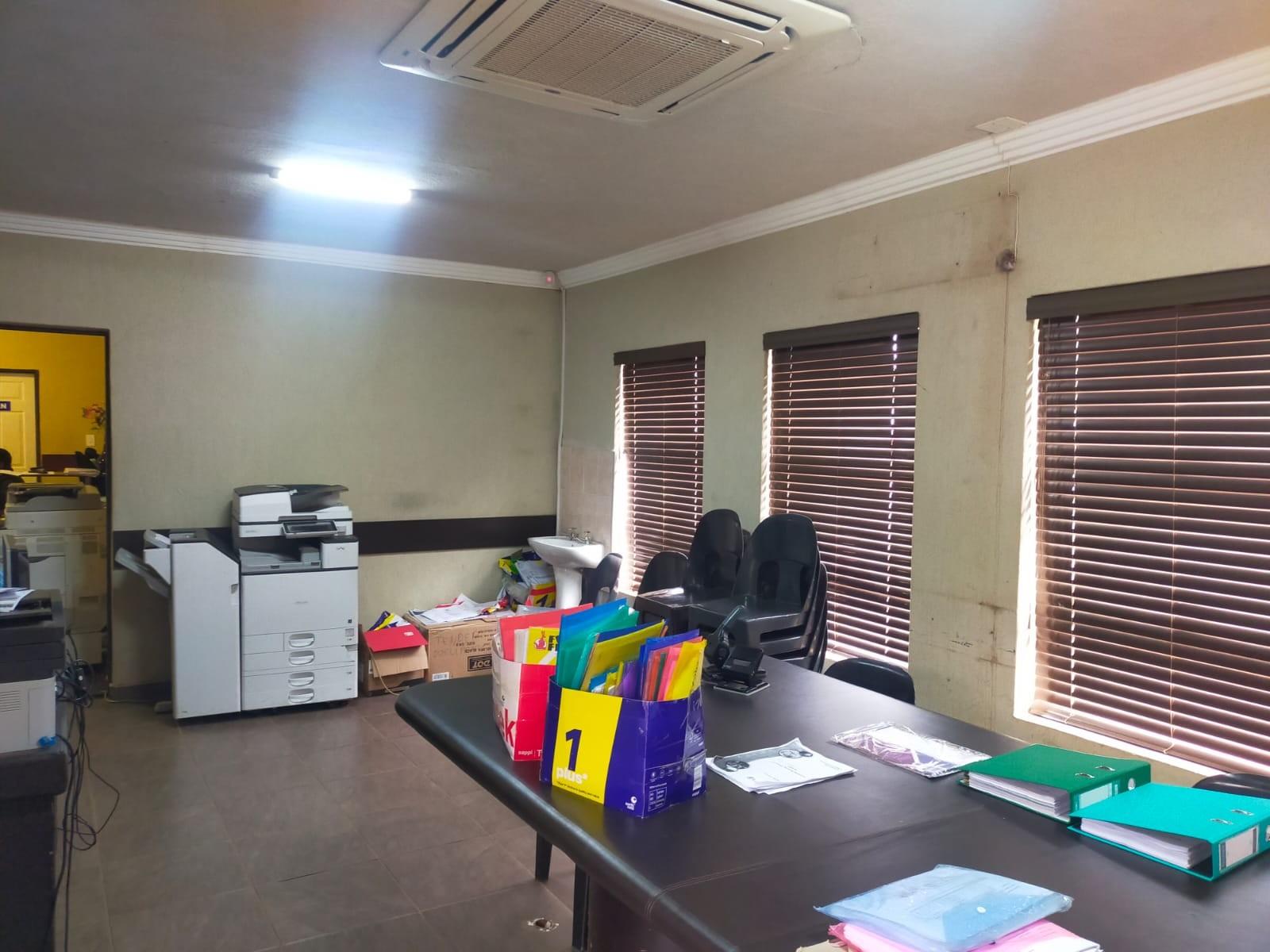 The building has a reception, kitchen, storeroom, file room, boardroom, manager`s office with an aircon, staff toilet, guard room with its own toilet. And there also a carport for parking and a huge parking space for additional vehicles. This office building is in strategic place and it easily accessible.