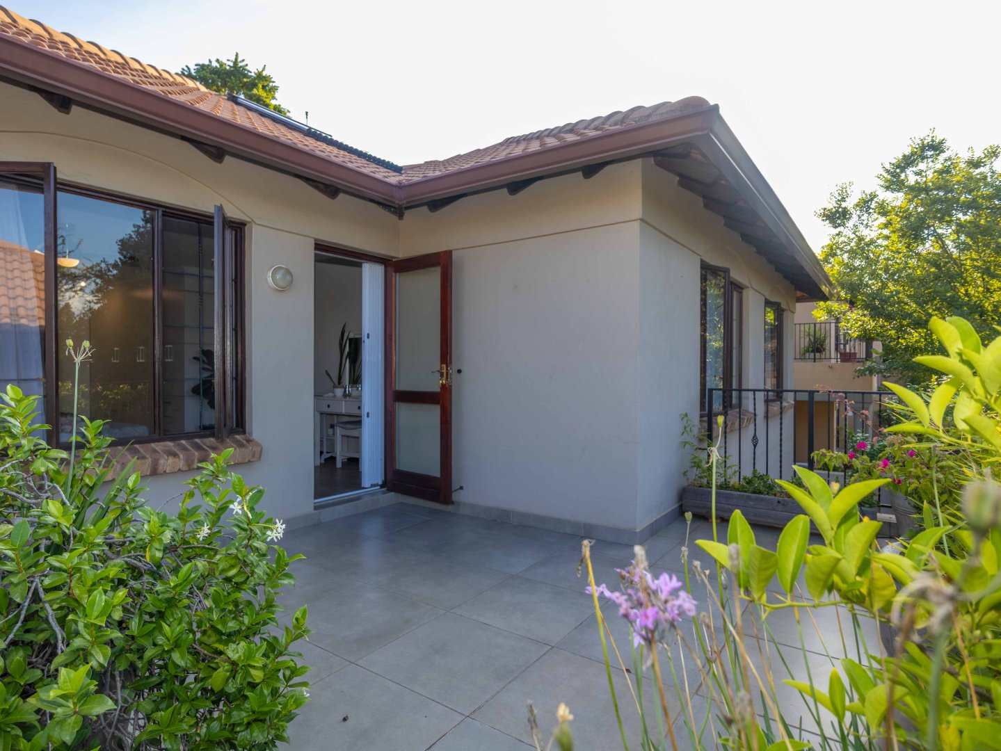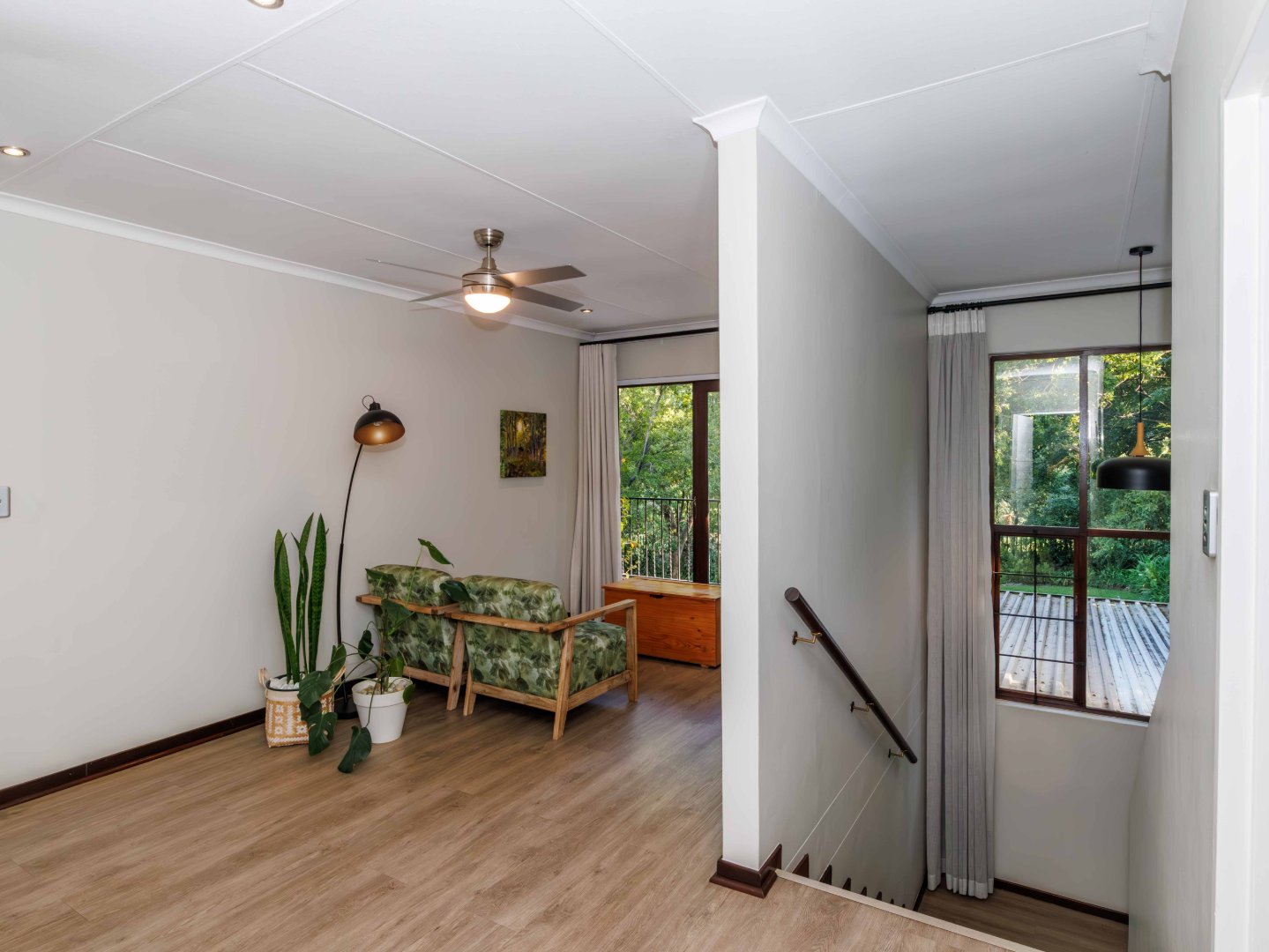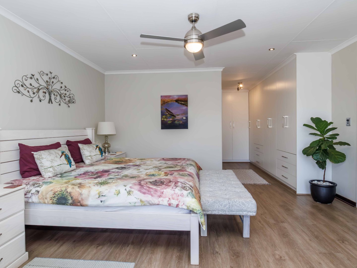 Stylish large lounge with dining room flowing onto large covered patio overlooking landscaped fully irrigated indigenous garden that's bird and butterfly friendly.