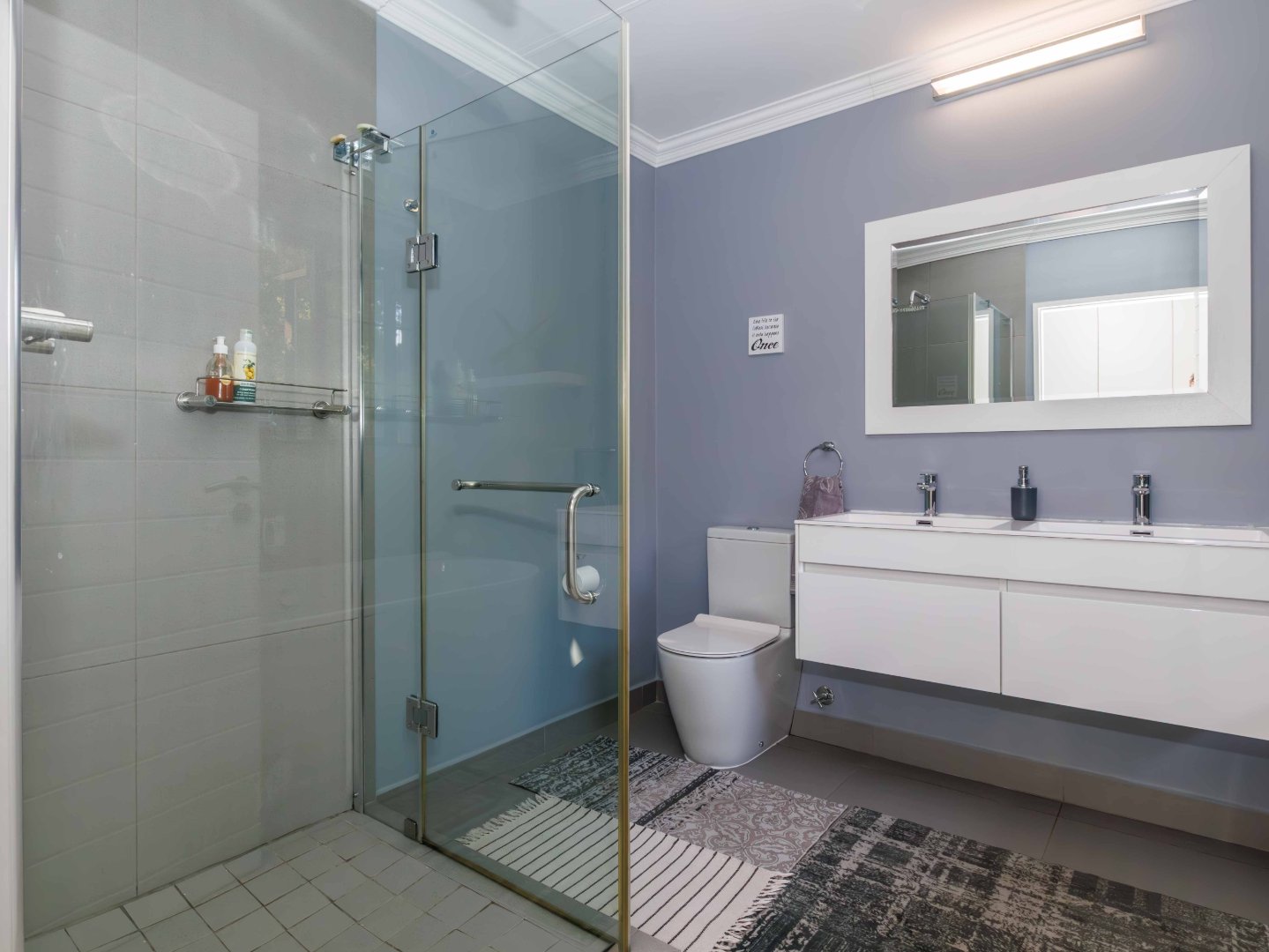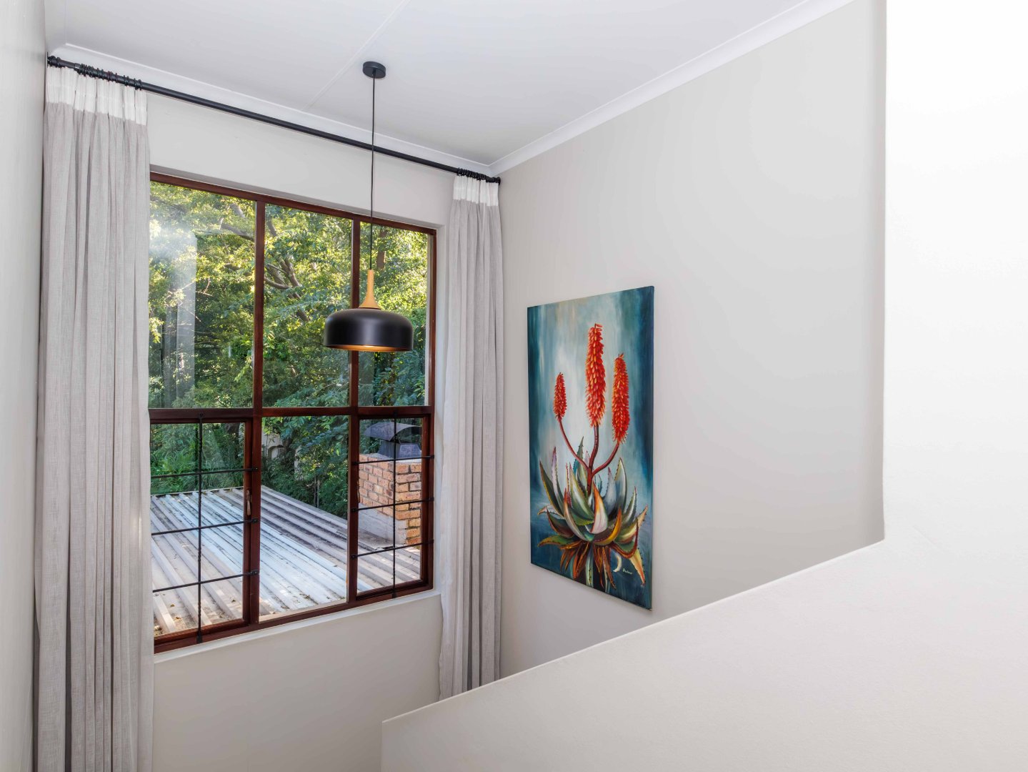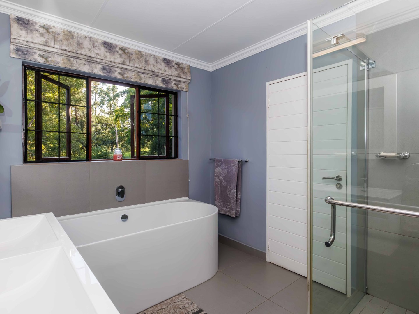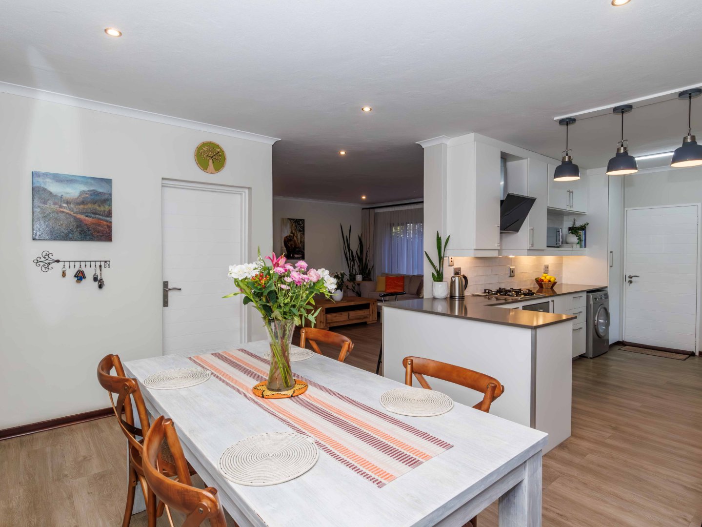 Stylish large lounge with dining room flowing onto large covered patio overlooking landscaped fully irrigated indigenous garden that's bird and butterfly friendly.