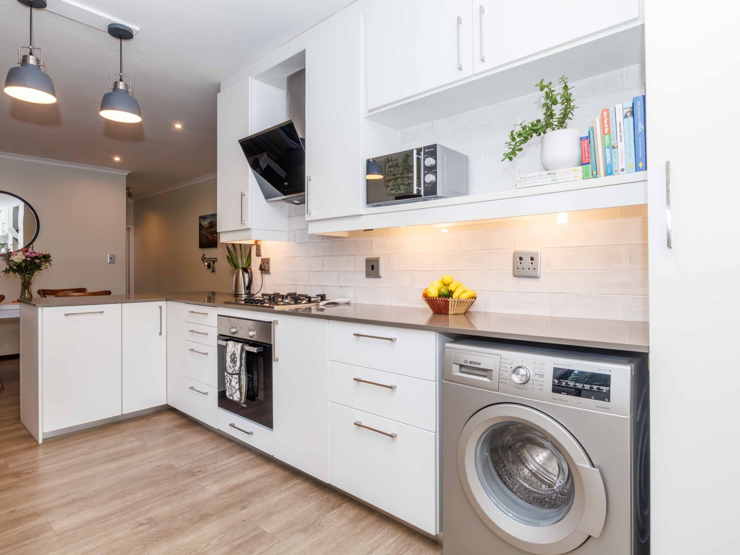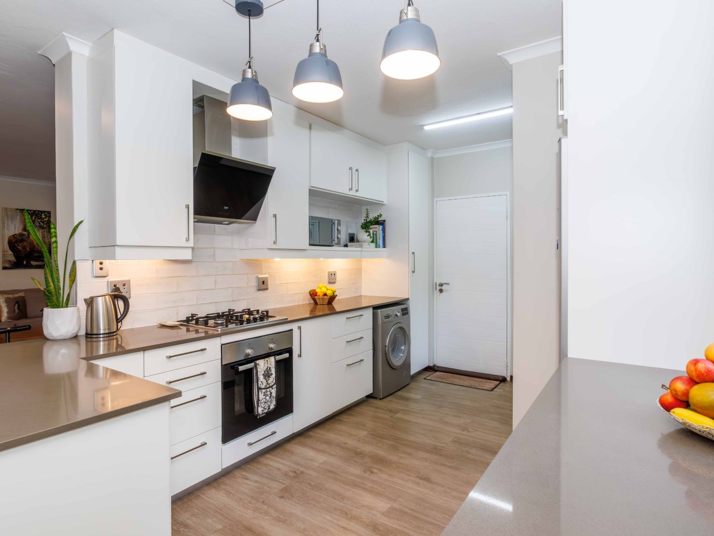 Modern open plan renovated kitchen with gas hob and loads of cupboard space