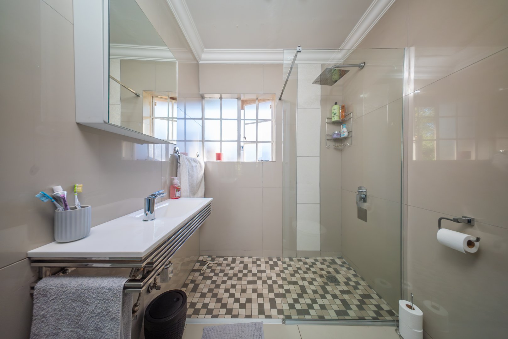 The renovated kitchen is bright and sunny, boasting a SMEG gas stove, ample cupboard space, and a separate scullery with a granite top and dedicated space for both a dishwasher and washing machine.