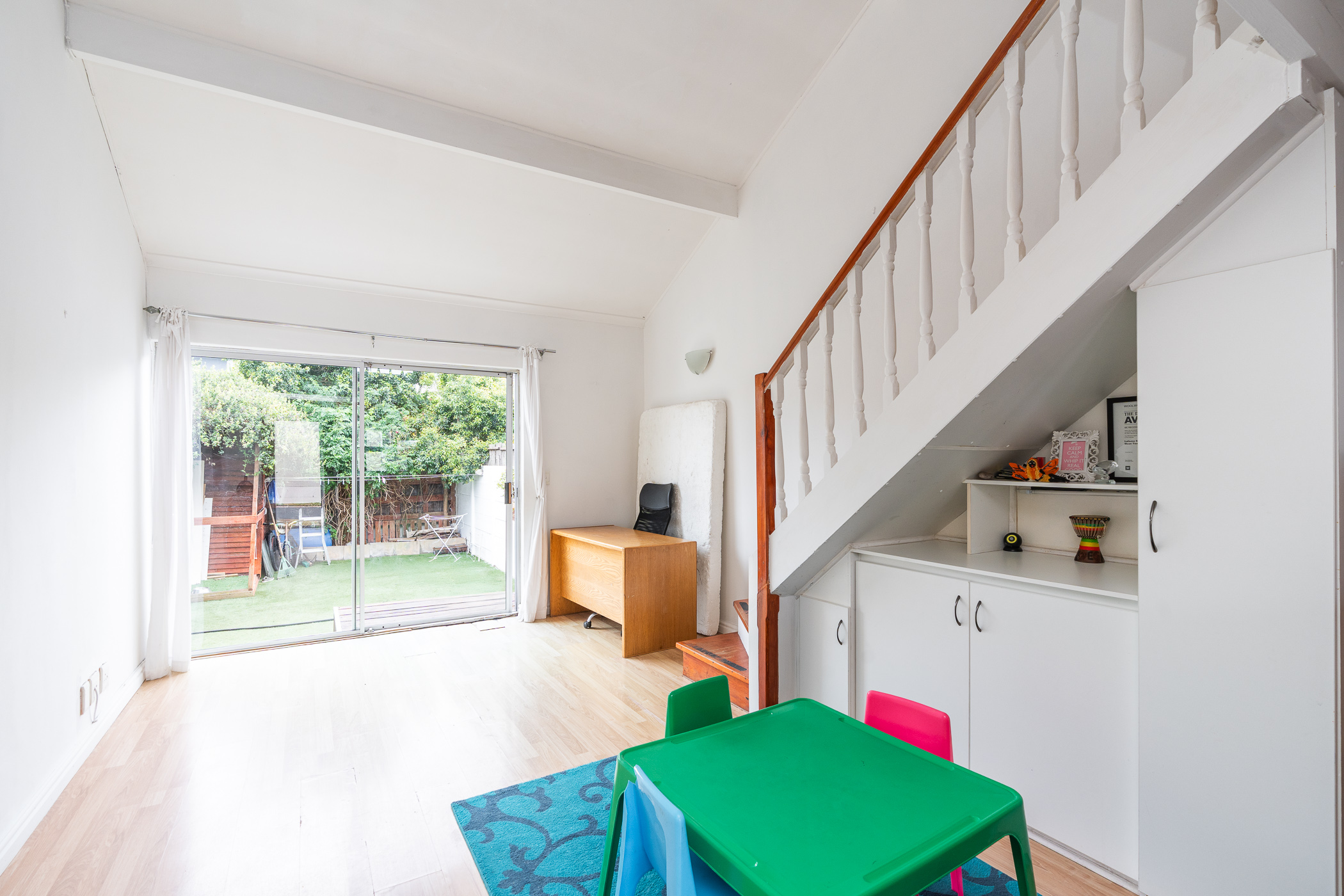 The main bedroom boasts built-in cupboards. The second bedroom also features built-in cupboards. The mezzanine offers a third bedroom or extra living space plus a loft conversion for extra space or a variety of uses. The family bathroom offers a basin, bathtub, separate shower, and toilet.