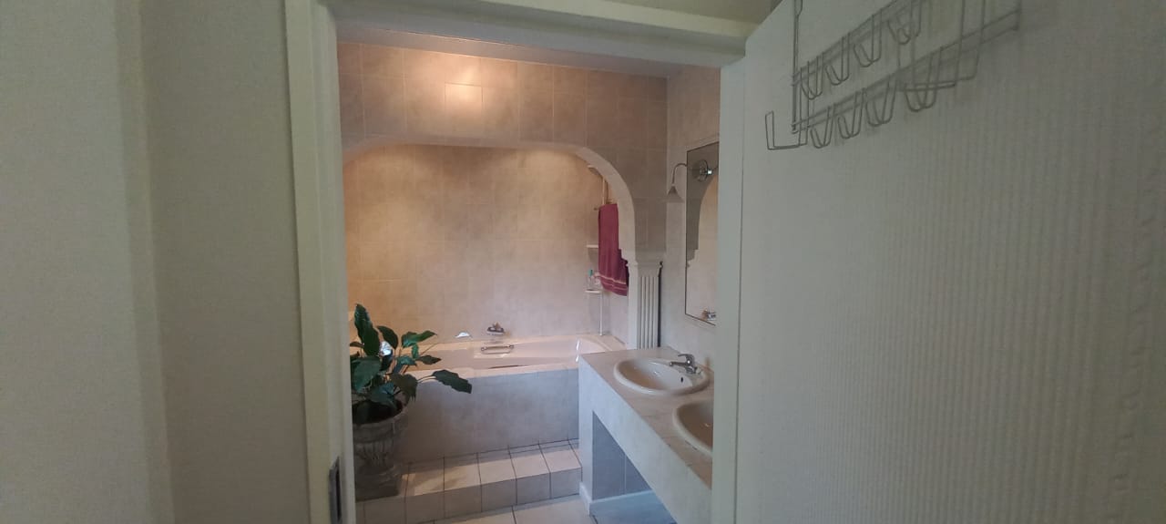 The opulent master suite is a true sanctuary, complete with a private walk-in dresser offering a bespoke storage solution for your wardrobe. The ensuite bathroom is a masterpiece in itself, featuring a luxurious double vanity with his-and-hers faucets and a deep soaking tub, creating a spa-like retreat.