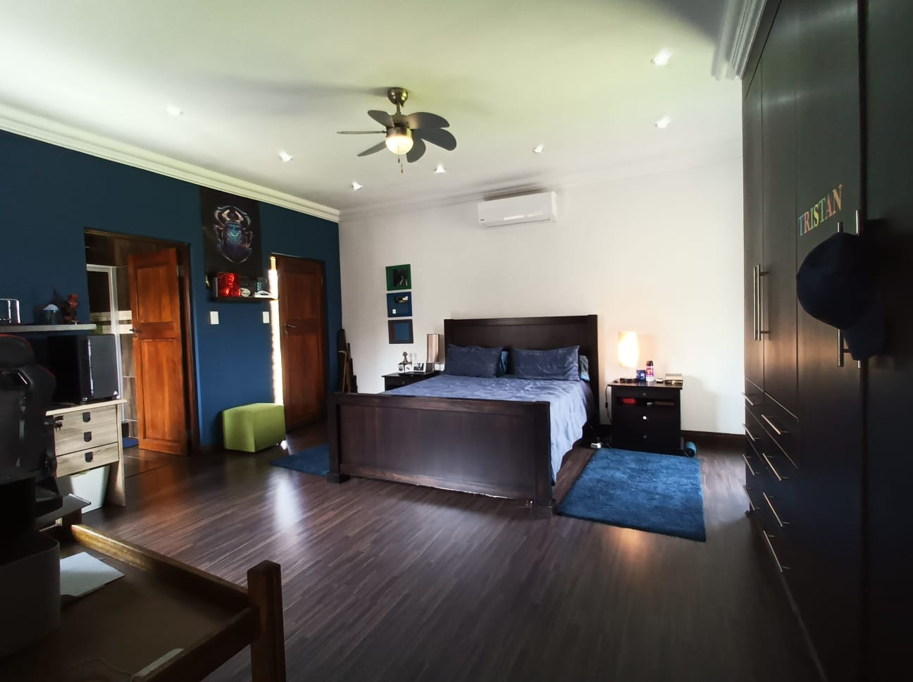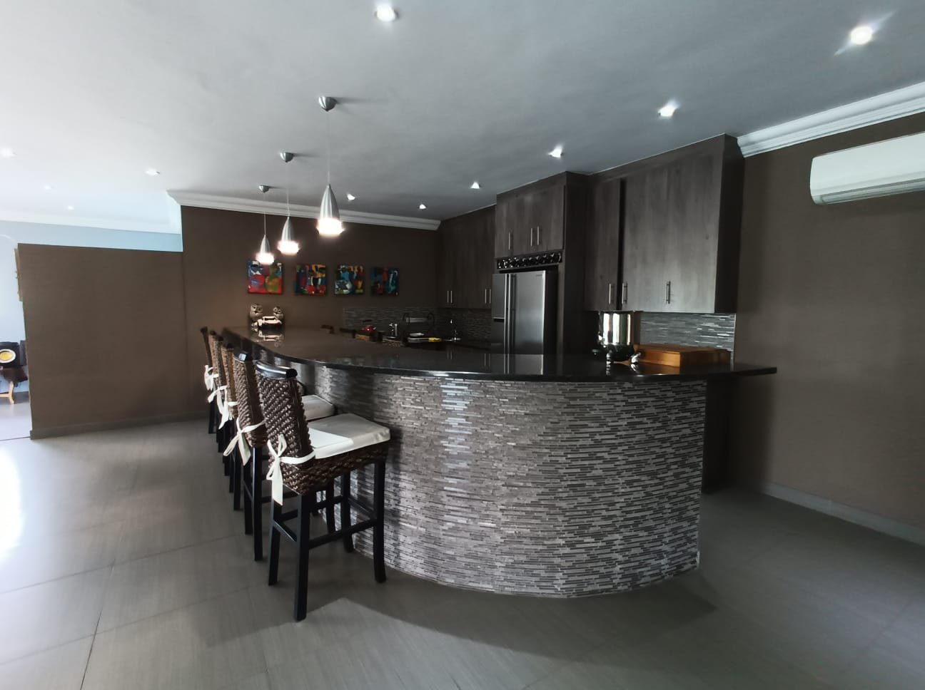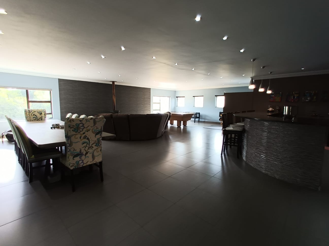 - A Lounge upstairs leads you into this Stunning Entertainment room with a Built-in Braai and Bar where you can set up a pool table and a 10-Seater Dining table.