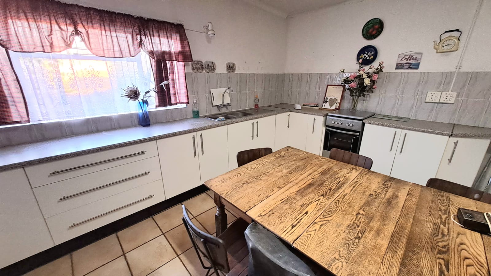 It has a lovely spacious open plan kitchen with gas stove, ample cupboard space as well as a scullery and laundry area.