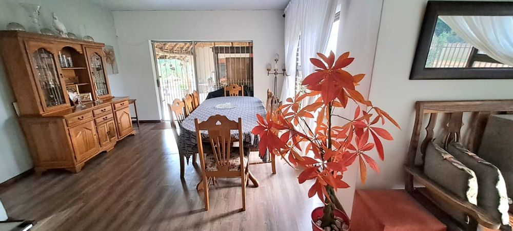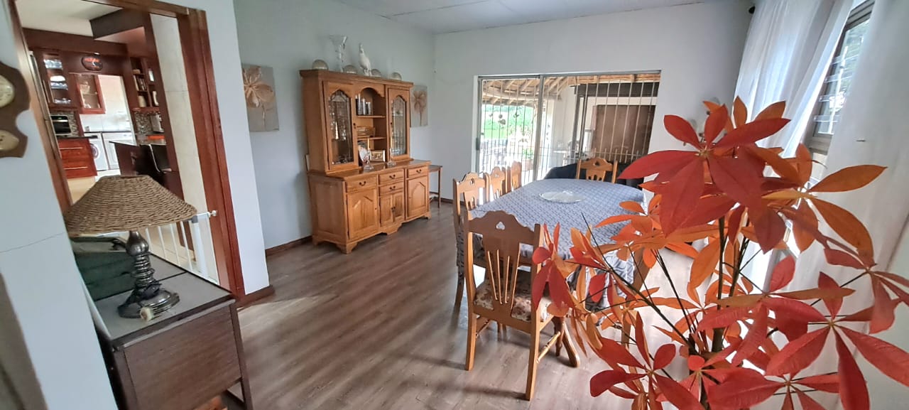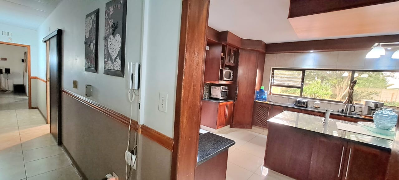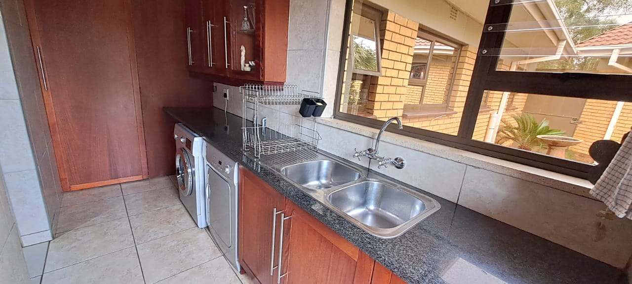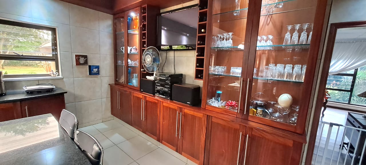 - Gourmet Kitchen: A chef's delight with solid Mahogany cabinets, a massive island (1.3 x 2.7m) that seats 6, and luxurious Rustenburg black granite tops with platinum spangle. Equipped with a 900mm Elba Italian stainless-steel stove, fully programmable gas/electric oven, and a separate scullery that accommodates all your appliances.