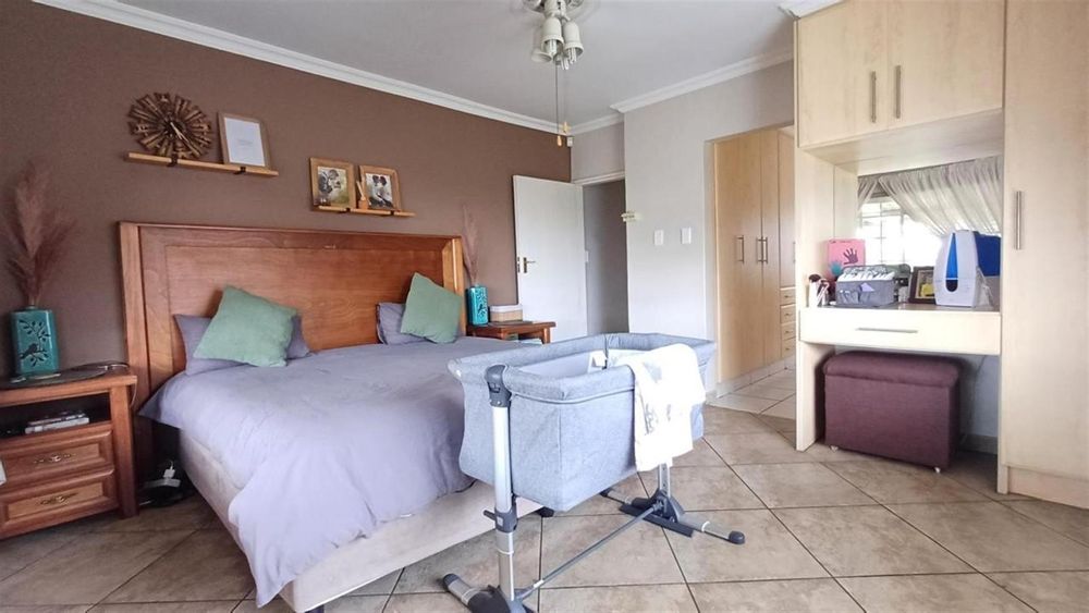 The house itself is equipped with burglar bars, providing an added sense of security. You can also enjoy the beautiful views from your windows, adorned with elegant curtain rails. With spacious bedrooms, including a double bed, king bed, queen bed, this home has enough space for the whole family.