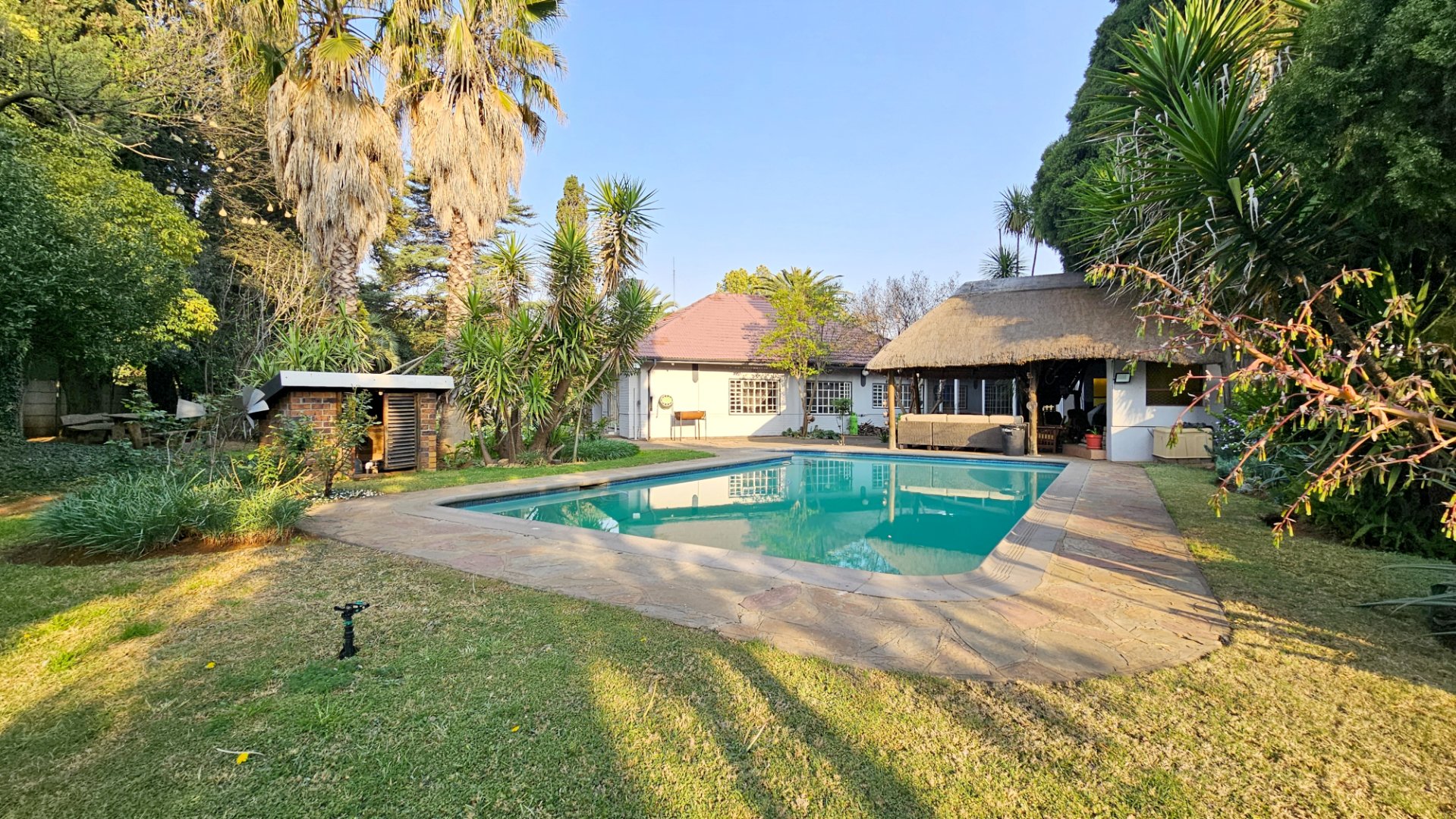 This beautiful home sits on a large, well-established stand with a lush garden supported by a borehole and full irrigation system — ideal for kids to play freely and for weekend braais with friends and family. The sparkling pool, jacuzzi, lapa, built-in bar, and dedicated entertainment area create the perfect setting for memorable family gatherings and celebrations.