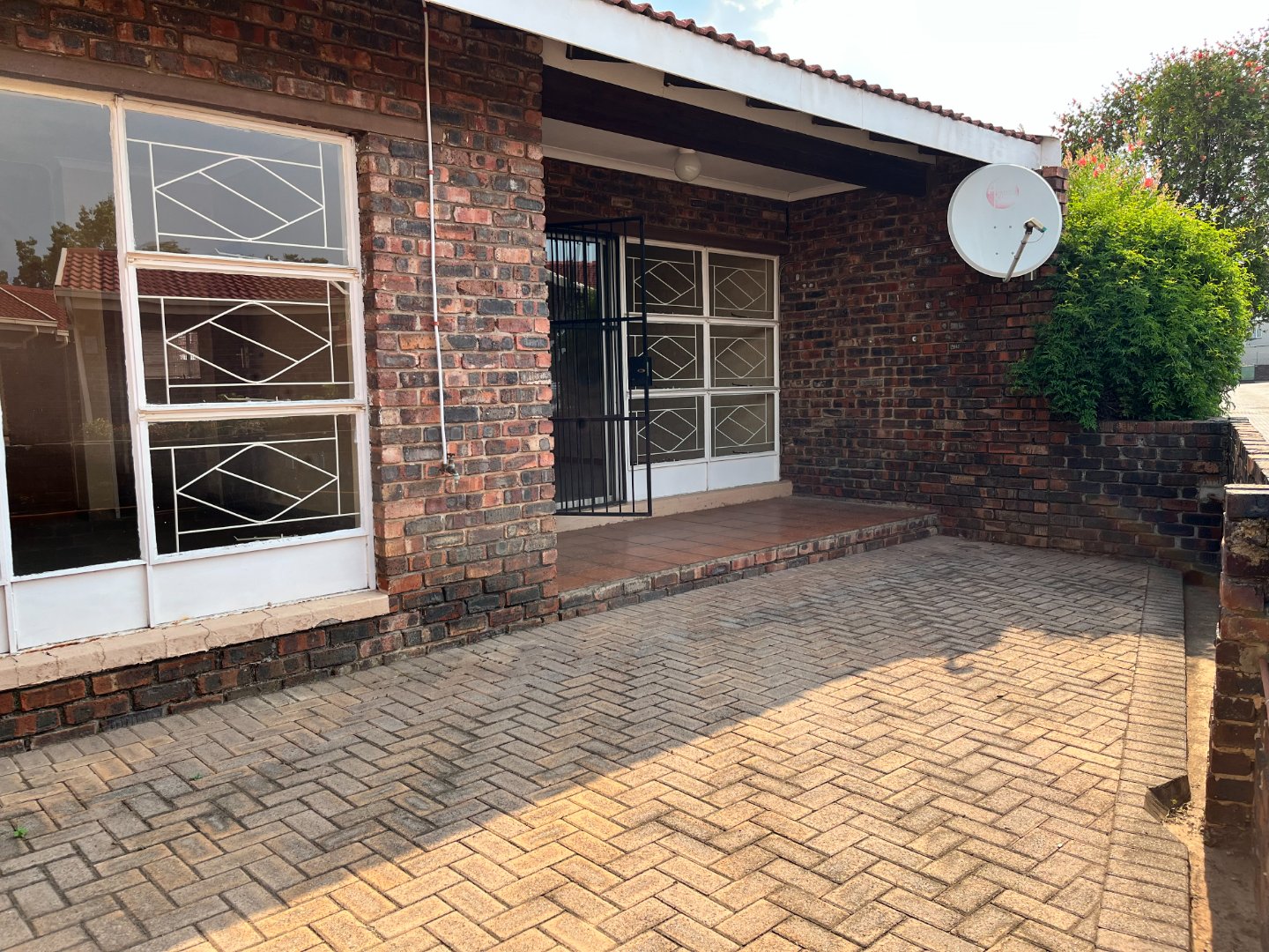 This unit offers an open-plan lounge and dining area measuring approximately 11 metres in length, providing ample space for a large lounge suite as well as a full dining room set with a buffet. The dining area includes a built-in cupboard for extra storage. DSTV dish cabling is already installed in the lounge. Sliding doors lead to a patio and low-maintenance paved garden.