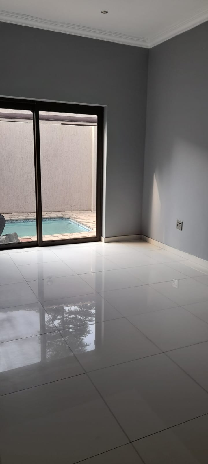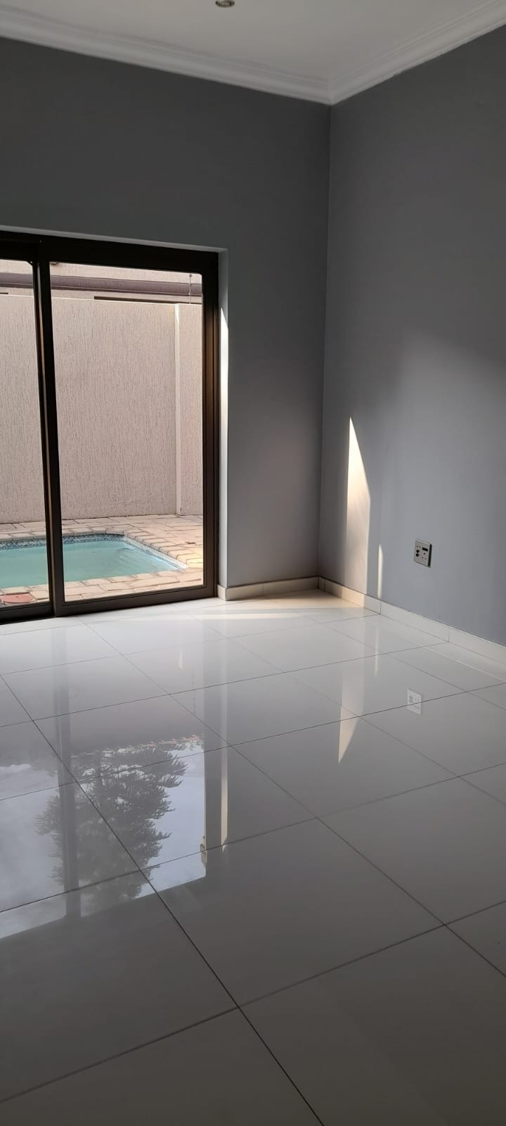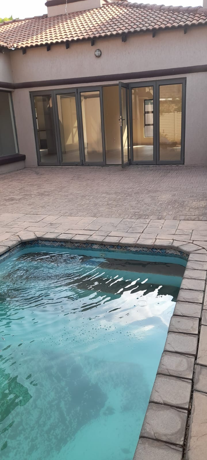 This is a beautiful 4 bedroom and 2.5 bathroom house situated in a well sought after area. Entertainment area with a built in braai. Walk in cupboards in the main bedroom. View over the swimming pool with sliding rooms in the room. The house consists of a huge open plan area.