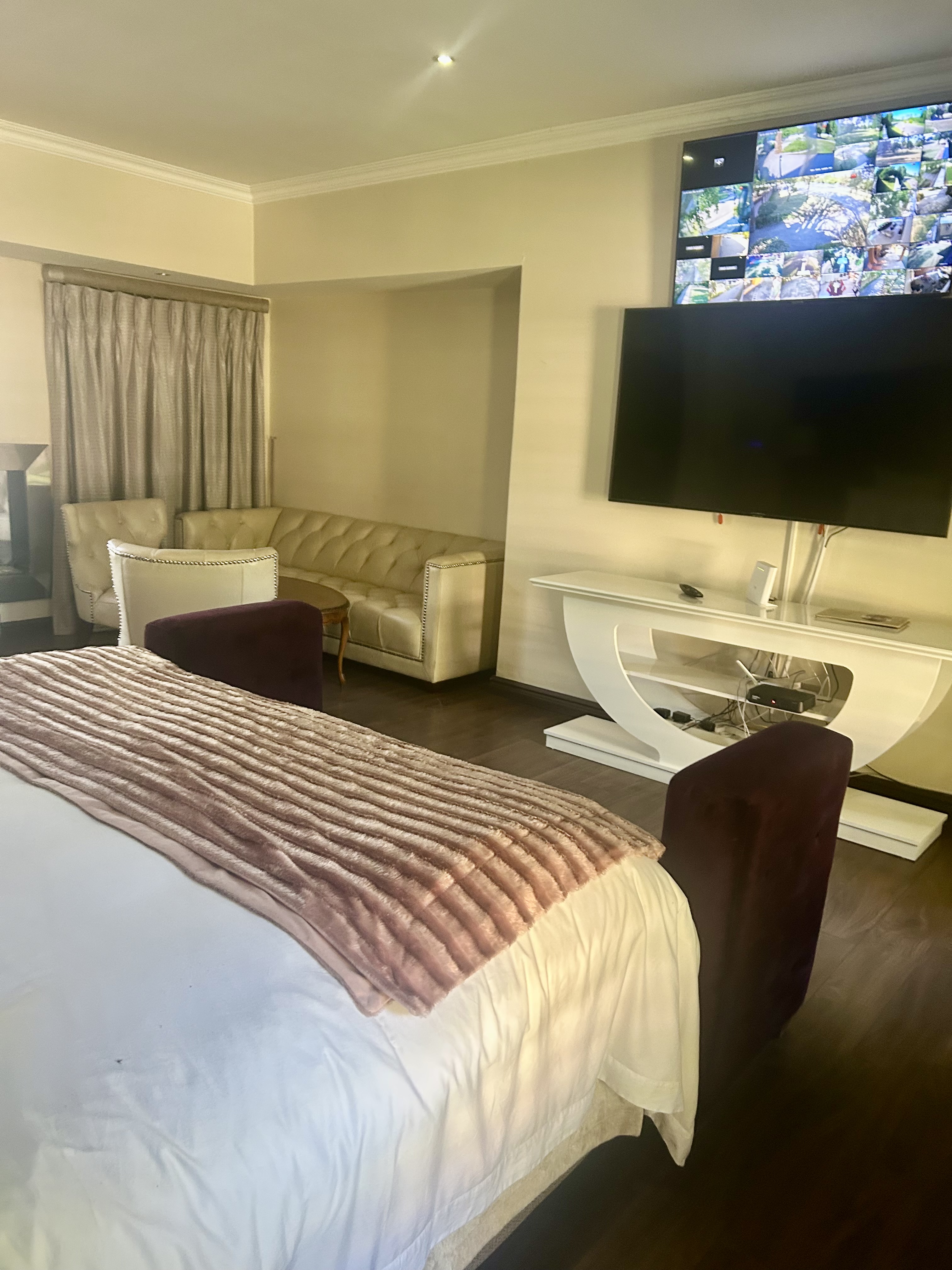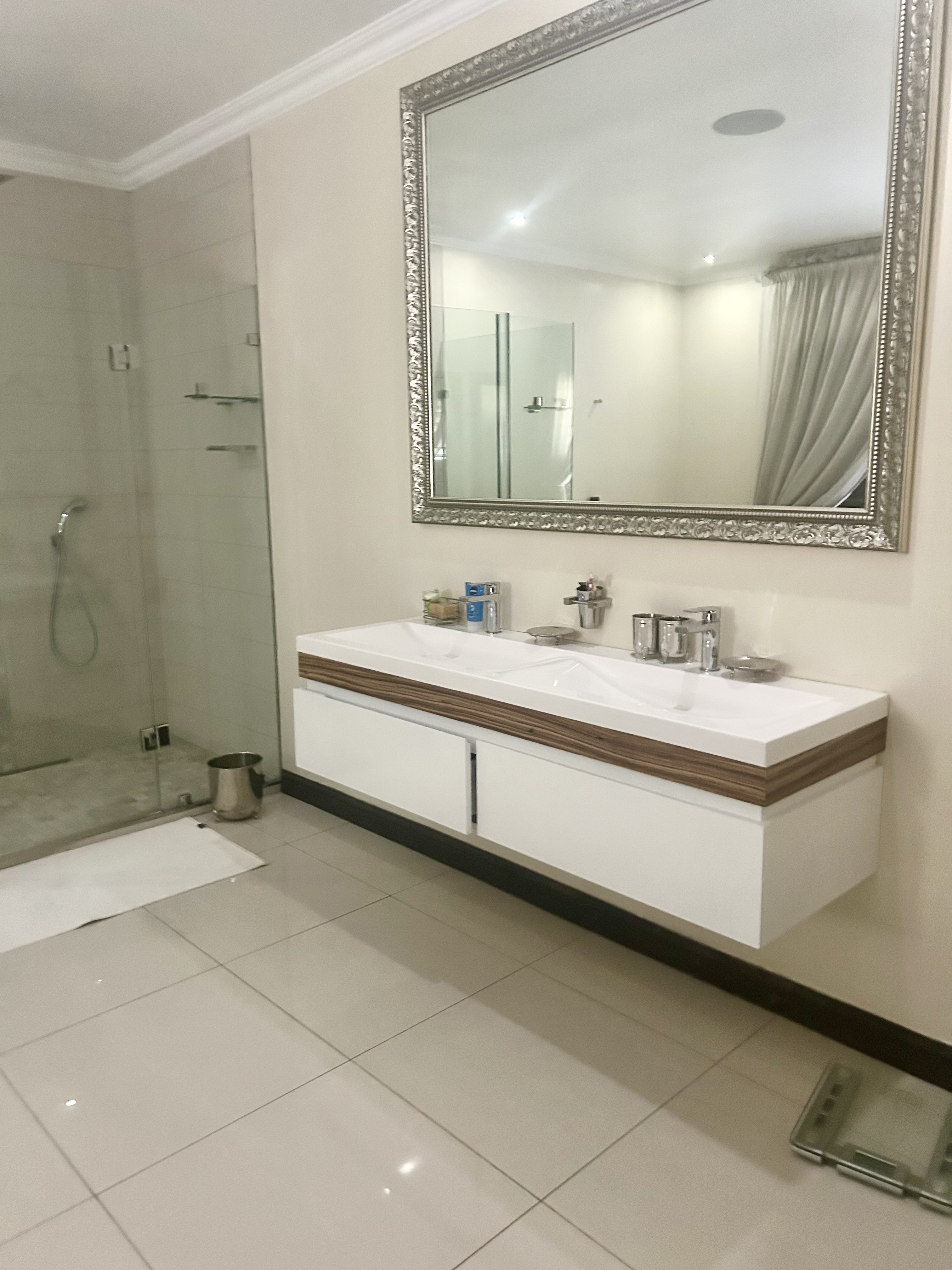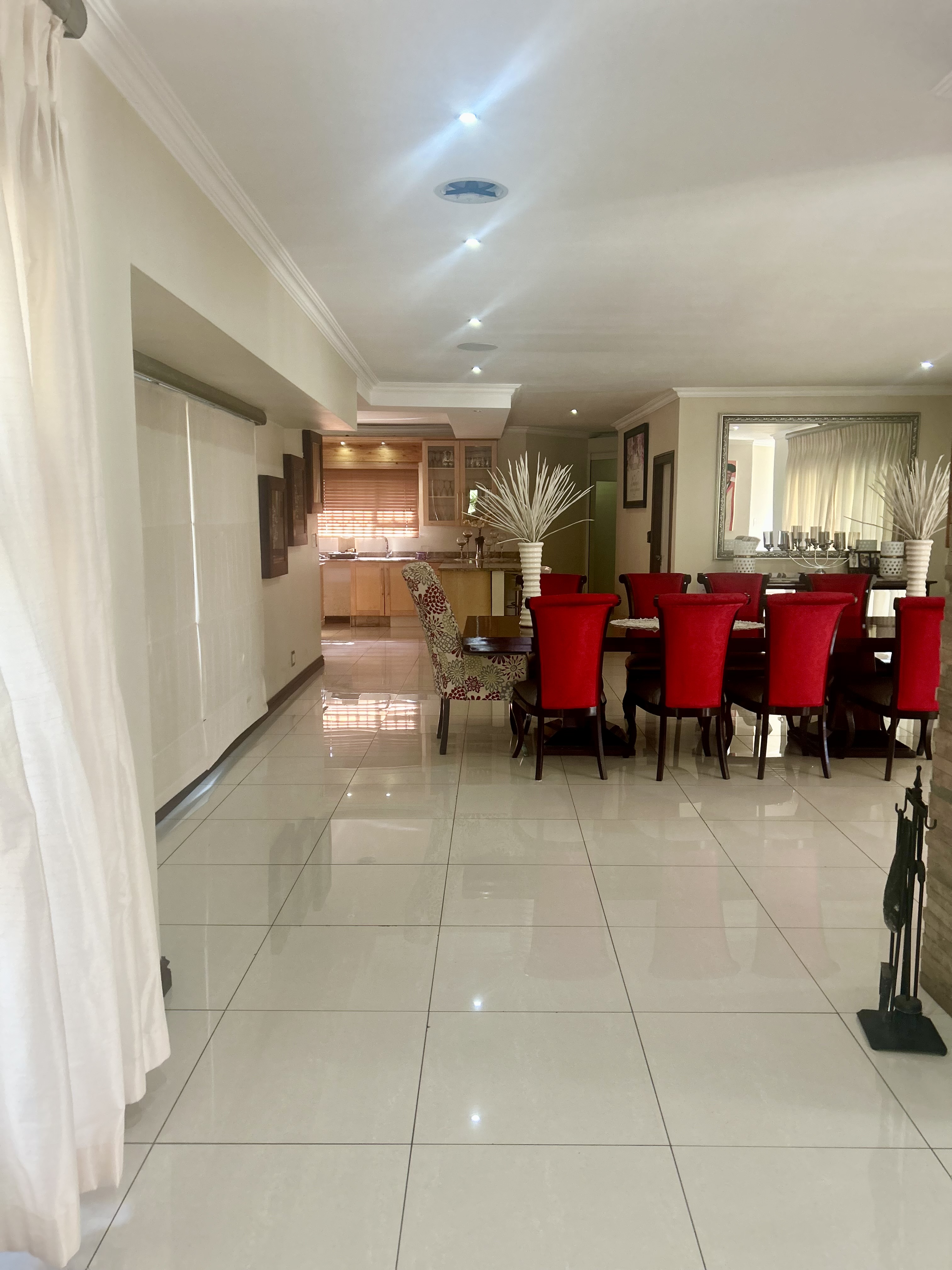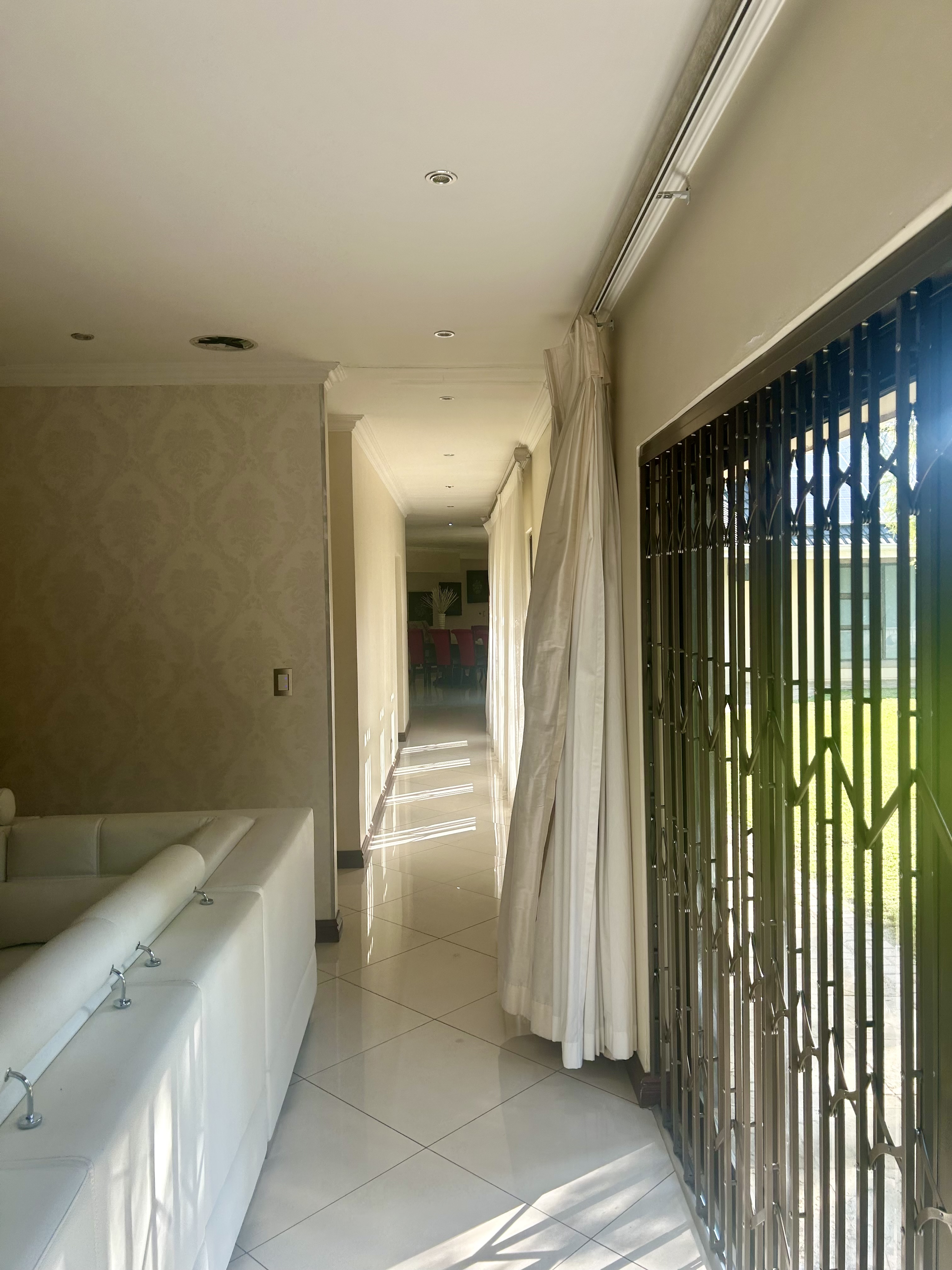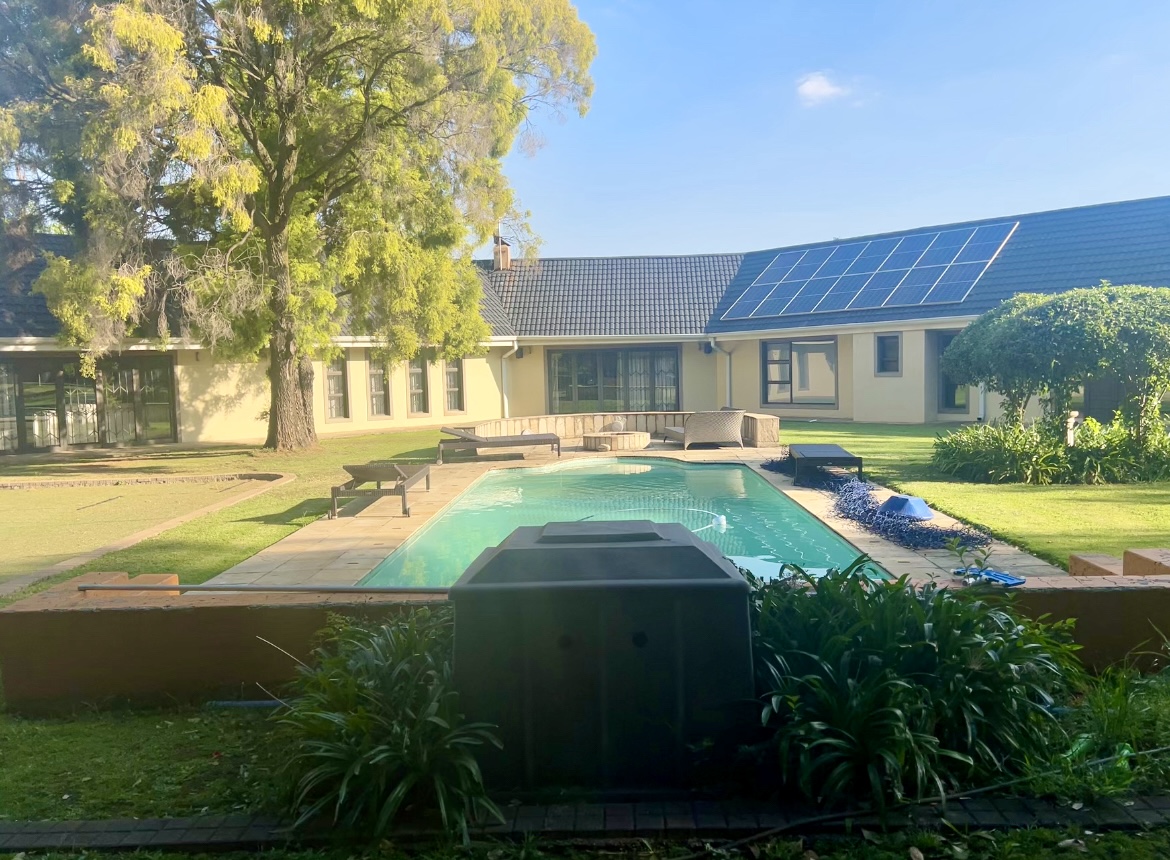 Experience a lifestyle of elegance, exclusivity, and absolute security in this architectural masterpiece, perfectly positioned in the prestigious Three Rivers enclave of Midvaal. Designed for discerning homeowners, this residence seamlessly blends modern luxury with peace of mind, boasting 32 state-of-the-art cameras and a full security suite for 24/7 protection. A Grand Welcome Arrive in style through two front gates and a private back gate, leading into an estate where privacy, security, and sophistication are paramount. An impressive entrance hall sets the tone, while four automated garages ensure convenience. Sophisticated Interiors • Expansive open-plan lounge with gas fireplace, air-conditioning, and integrated sound system. • Chef’s kitchen with central island, gas hob, electric oven, scullery, and a cozy relaxation nook. • Elegant dining room for unforgettable family gatherings. • Full entertainment bar and multiple lounges designed for hosting in style. • Dedicated security surveillance room for ultimate peace of mind. Private Retreats • Four spacious bedrooms, each with luxurious en-suite bathrooms. • Opulent main suite featuring a glass walk-in wardrobe and spa-inspired bathroom. • Granny’s suite with its own private bathroom, ideal for guests or extended family. Luxury Outdoor Living • Sparkling swimming pool surrounded by landscaped gardens. • Fishpond with live fish, tennis court for family fun. • Covered braai and entertainment area for year-round leisure. • Solar power system and underground borehole ensure efficiency and sustainability. Unparalleled Security Electric fencing, beams, alarms, CCTV cameras, and motion sensors combine to create a fortress of safety without compromising elegance. Exclusive Lifestyle Extras Adding to its exclusivity, this property includes rights to a private Vaal river getaway just opposite the estate. Accessible by boat, it’s the perfect extension to your lifestyle, whether for sailing, water adventures, or quiet reflection by the water. Prime Location Situated under Midvaal Municipality, close to Midvaal Hospital and River Square Shopping Centre. This isn’t just a home, it’s a legacy estate. A rare offering of scale, security, and sophistication, seldom available on the market. Don’t miss the opportunity to secure this extraordinary property.