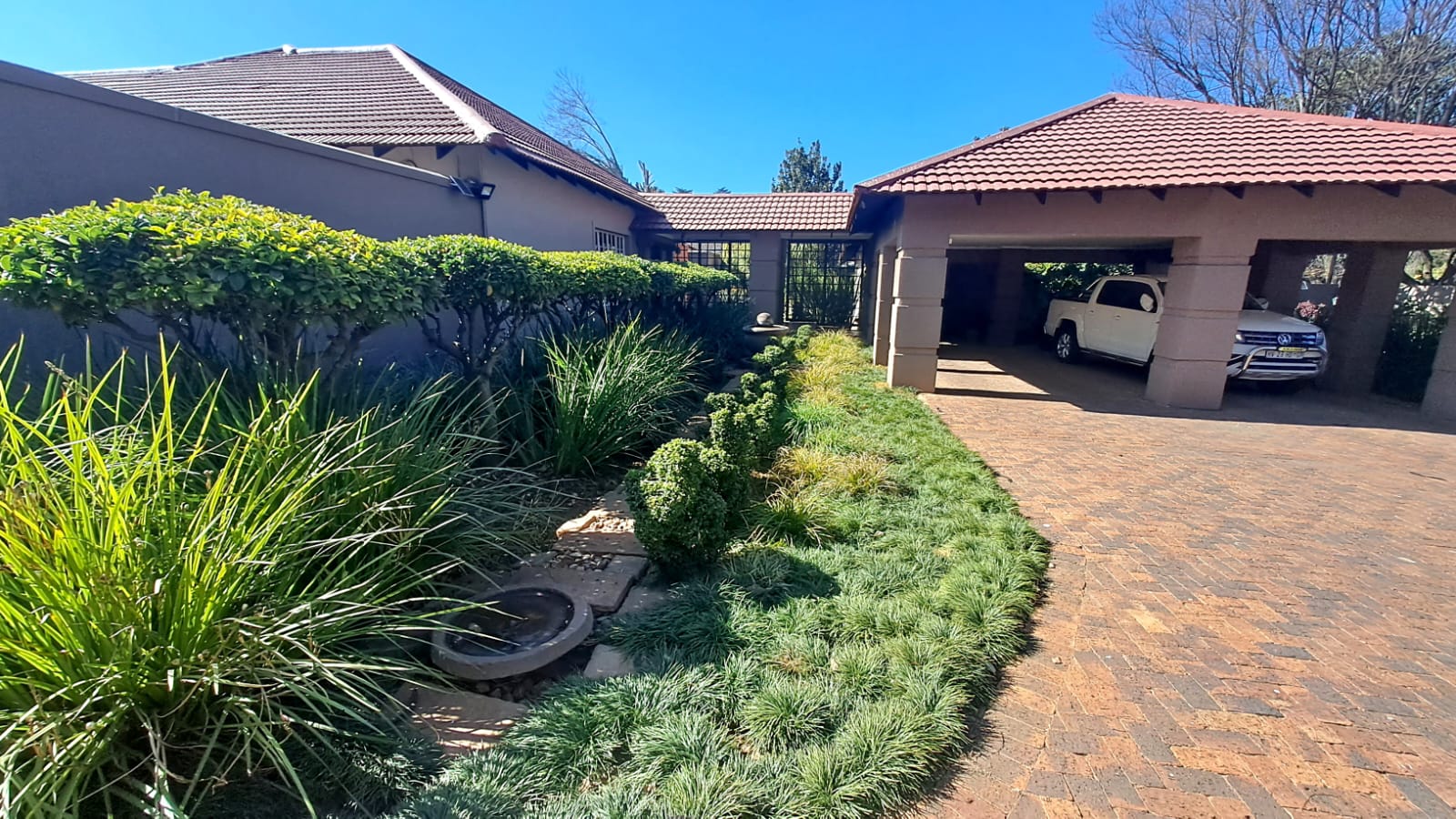 From the moment you enter this property, you’ll be welcomed by a lush, landscaped garden kept green year-round by a borehole system, connected to the home and filtered through a water-purifying system.