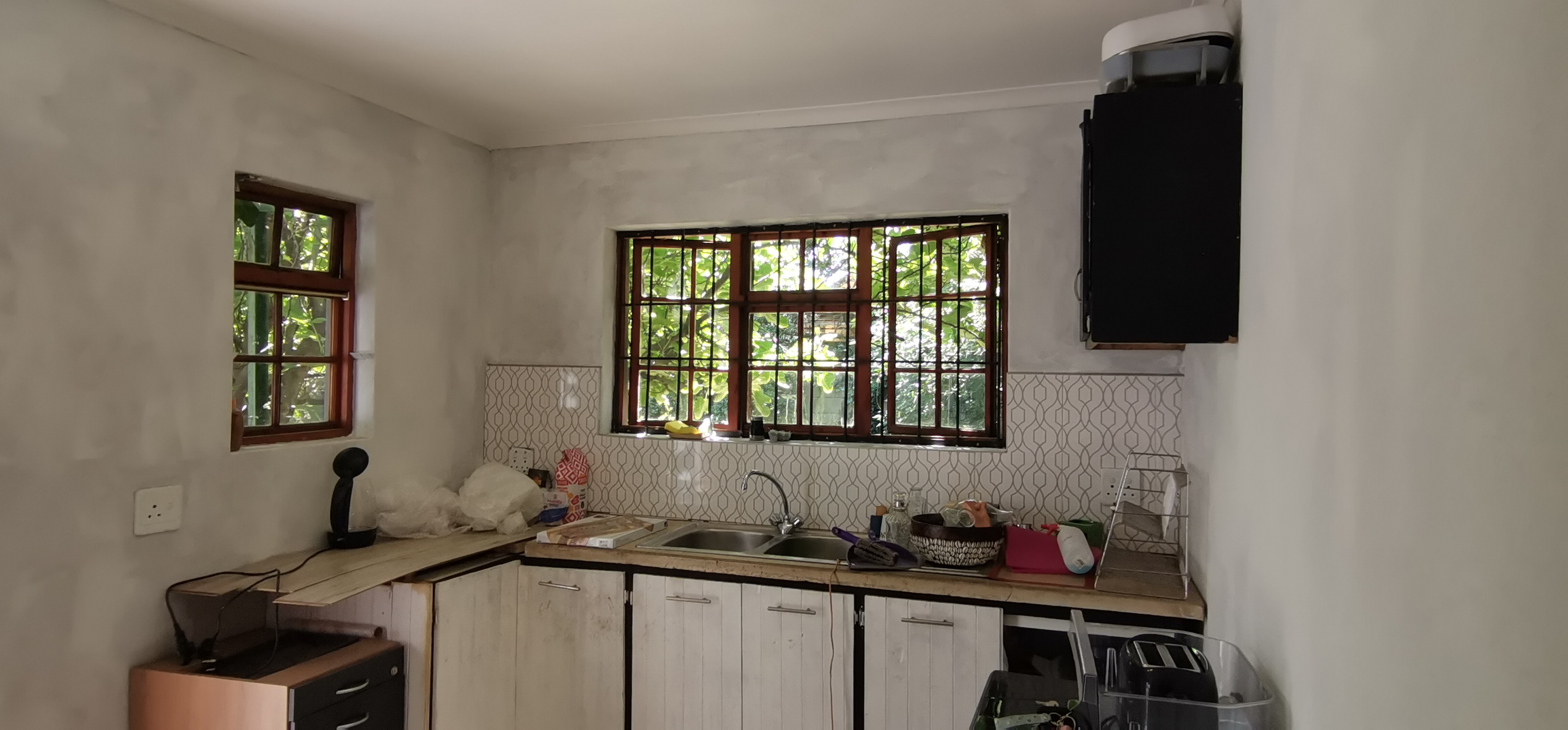 Open-plan wooden kitchen, dining, and lounge area (downstairs)