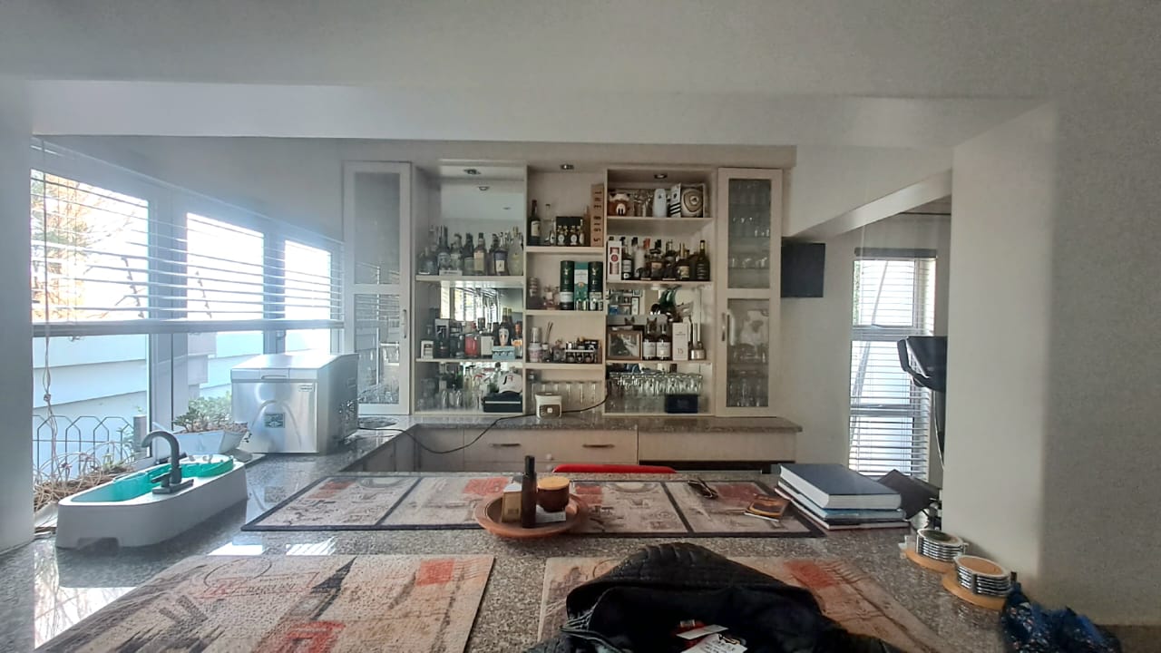 The heart of this home is its modern kitchen, a culinary delight featuring a gas stove and elegant granite countertops. A discreet water filter at the bar area and main prep bowl ensures pure, refreshing water at your fingertips.
