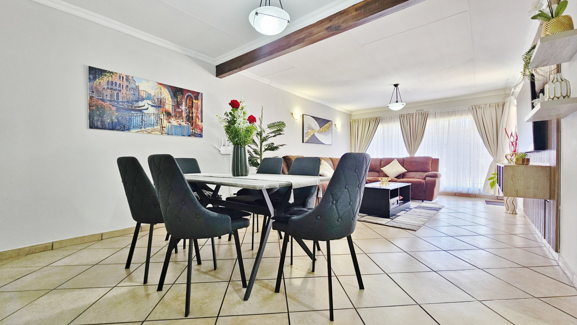 Accommodation flows beautifully, comprising large open-plan living areas, a modernised kitchen with plumbing points, three large bedrooms, and two bathrooms (master en-suite).