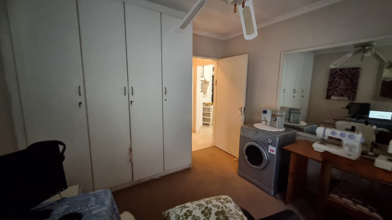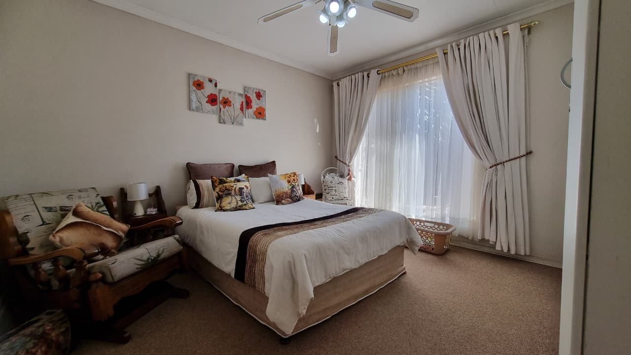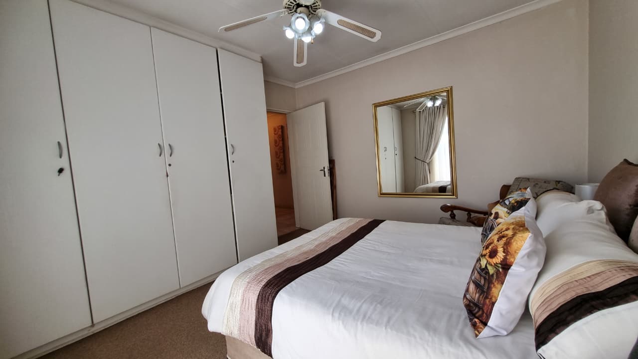 -Bedroom 2: Features tiled floors, large windows, built-in cupboards, and a ceiling fan.