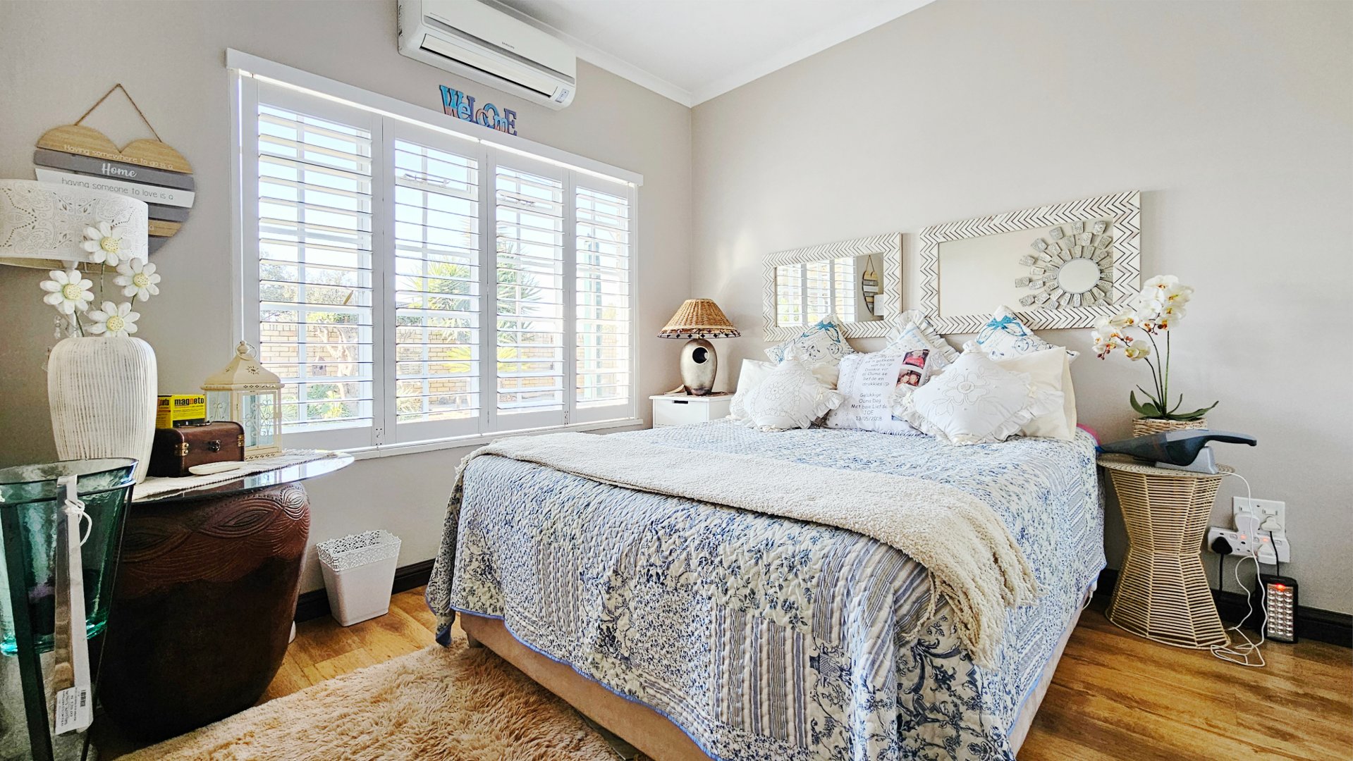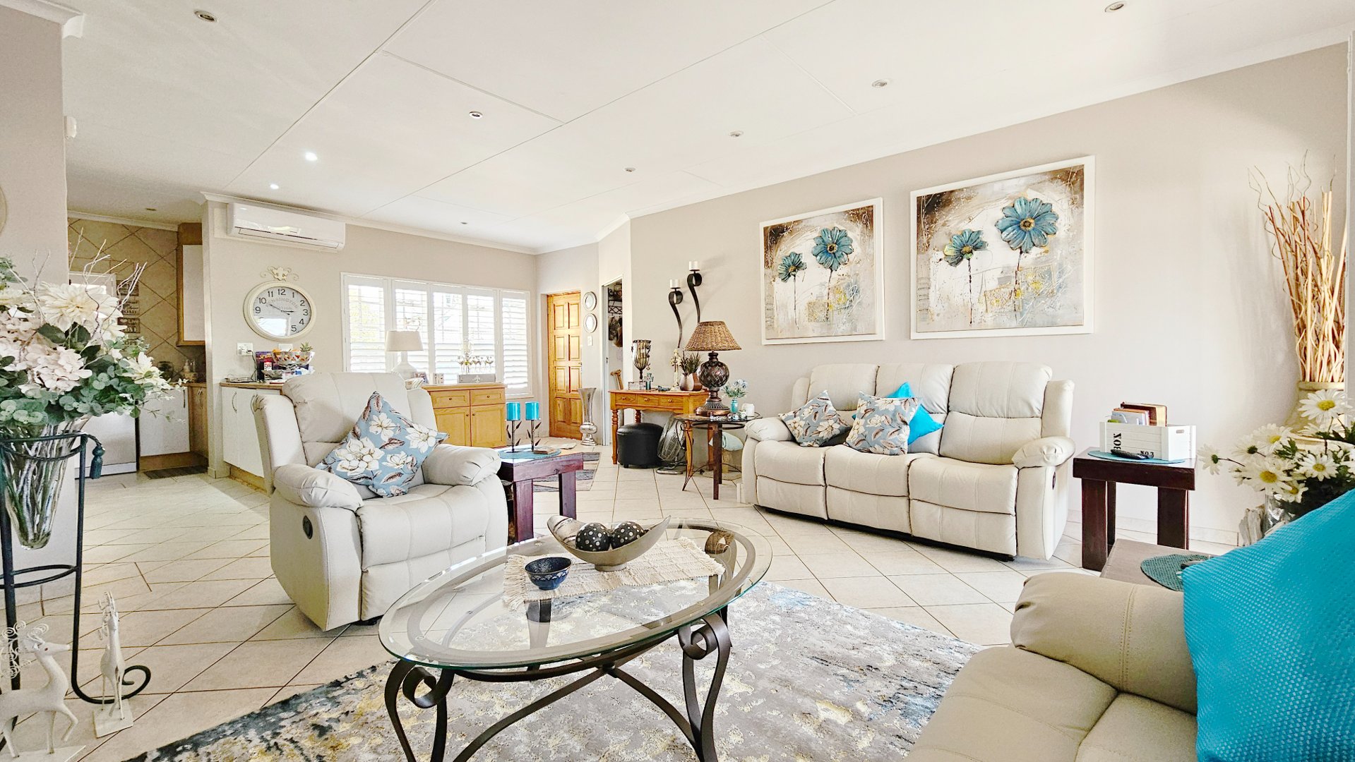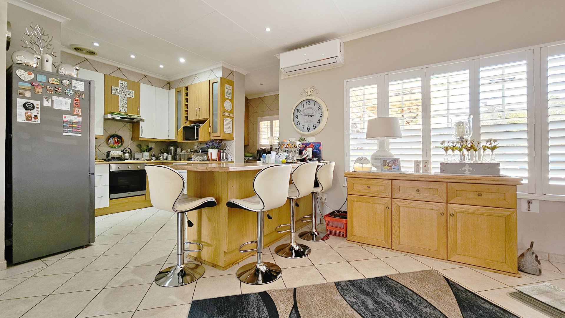 Additional features include a solar geyser, beautiful, neutral American blinds throughout, a security system, and four air-conditioning units. The levy includes water usage and insurance.