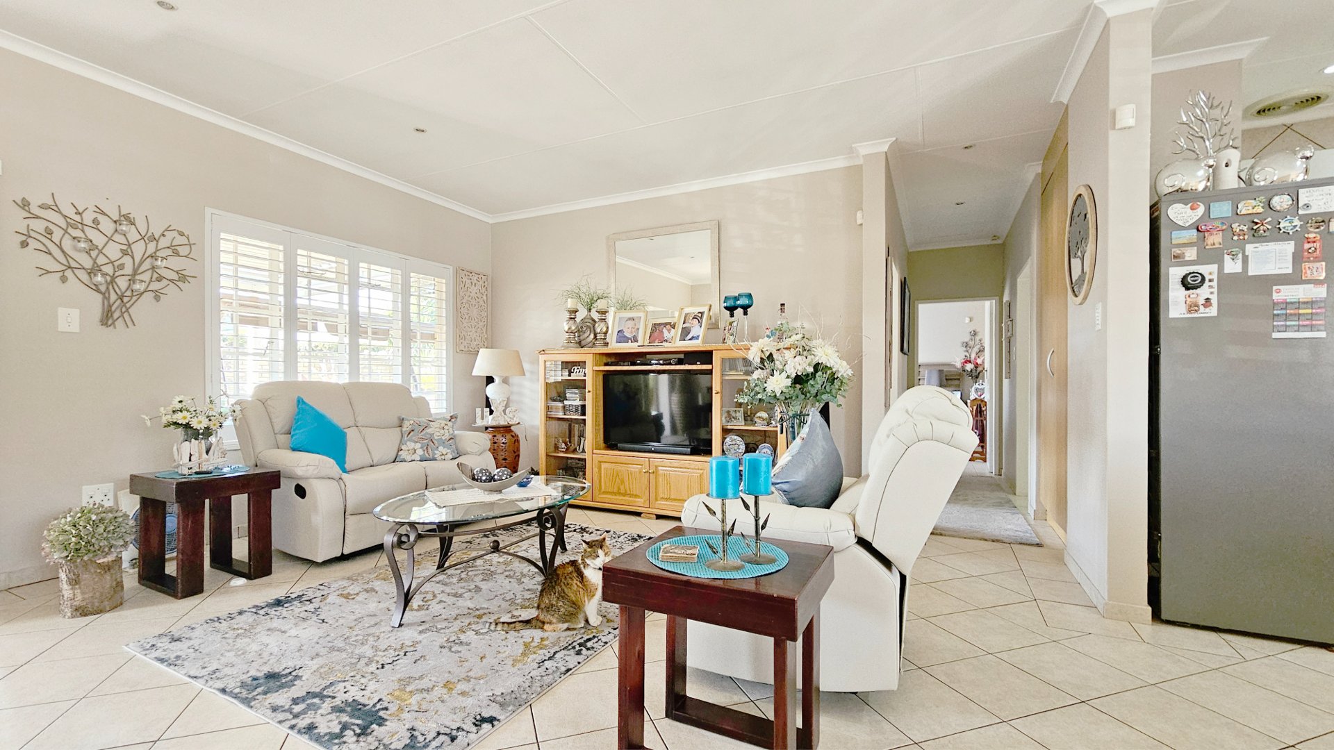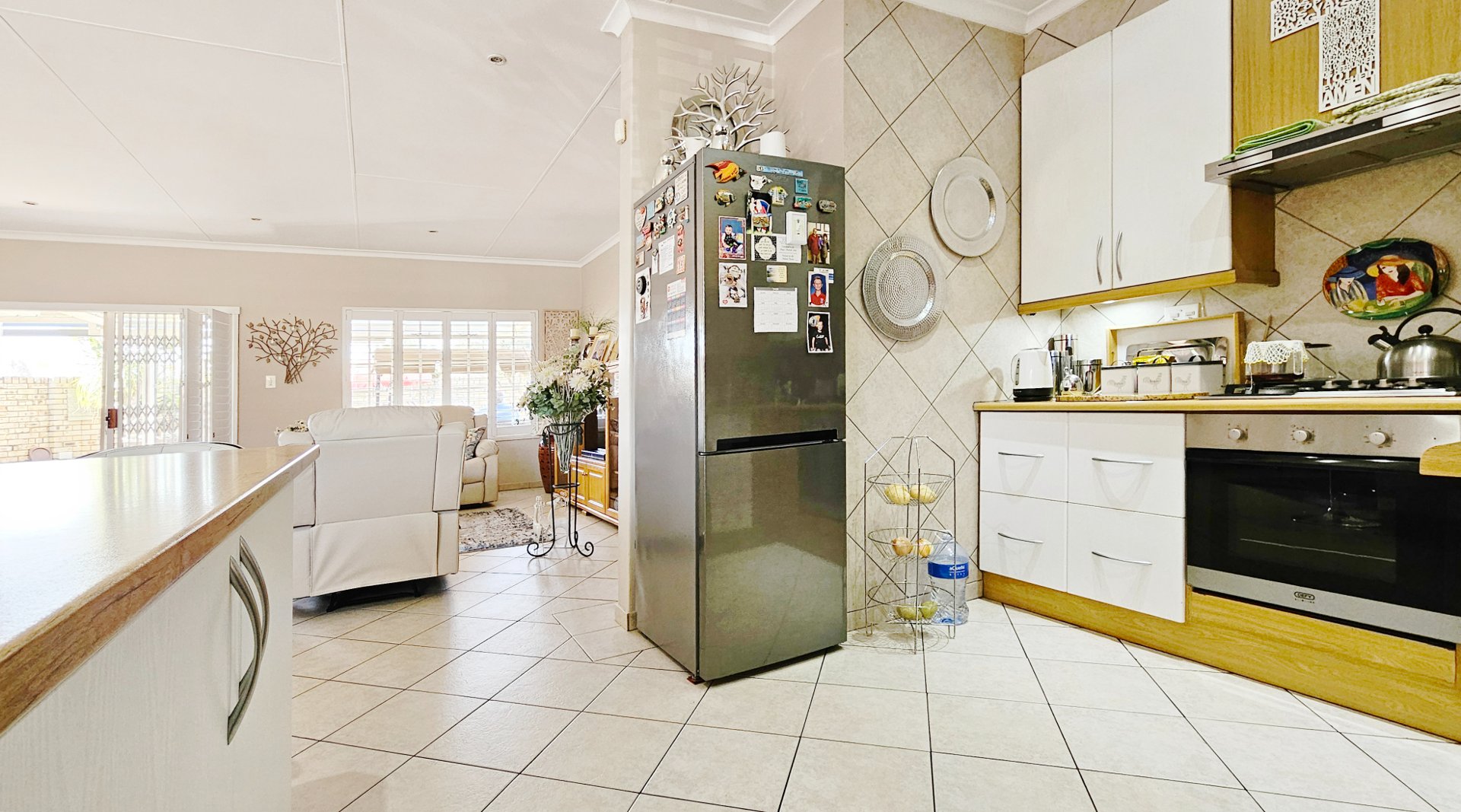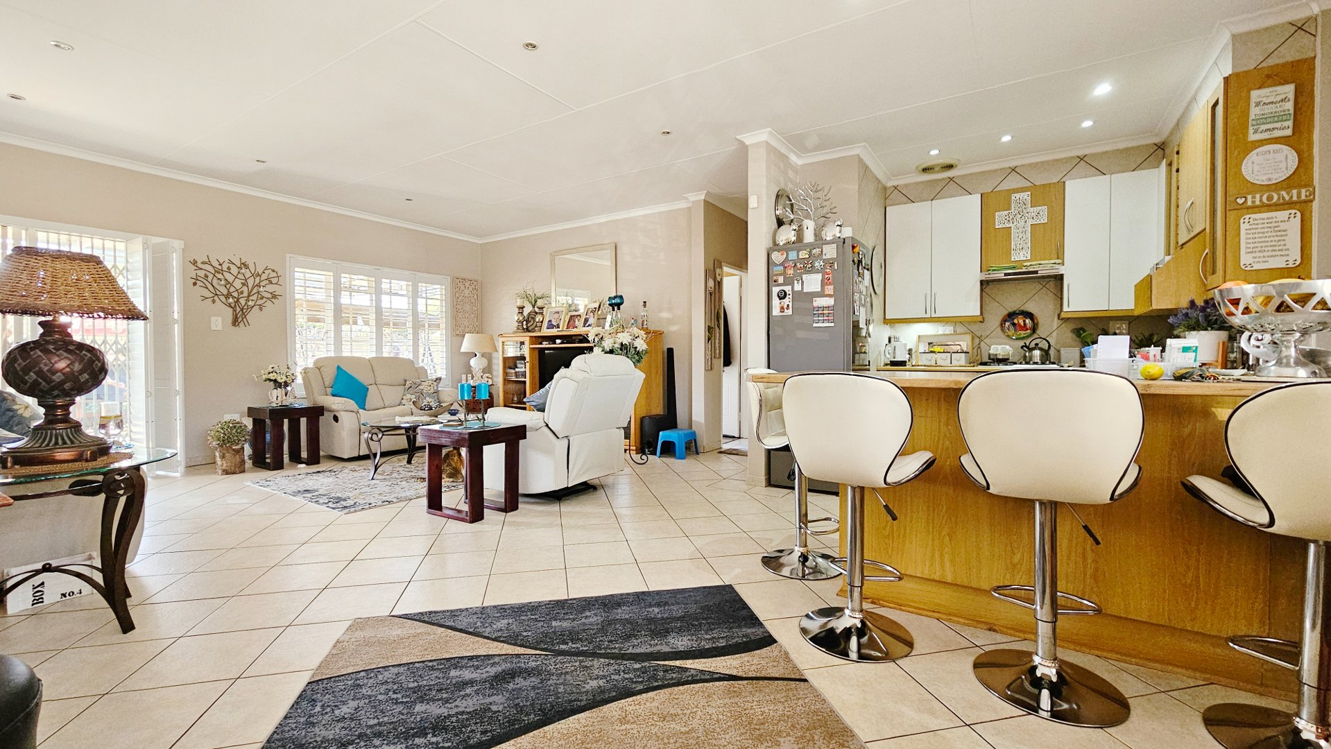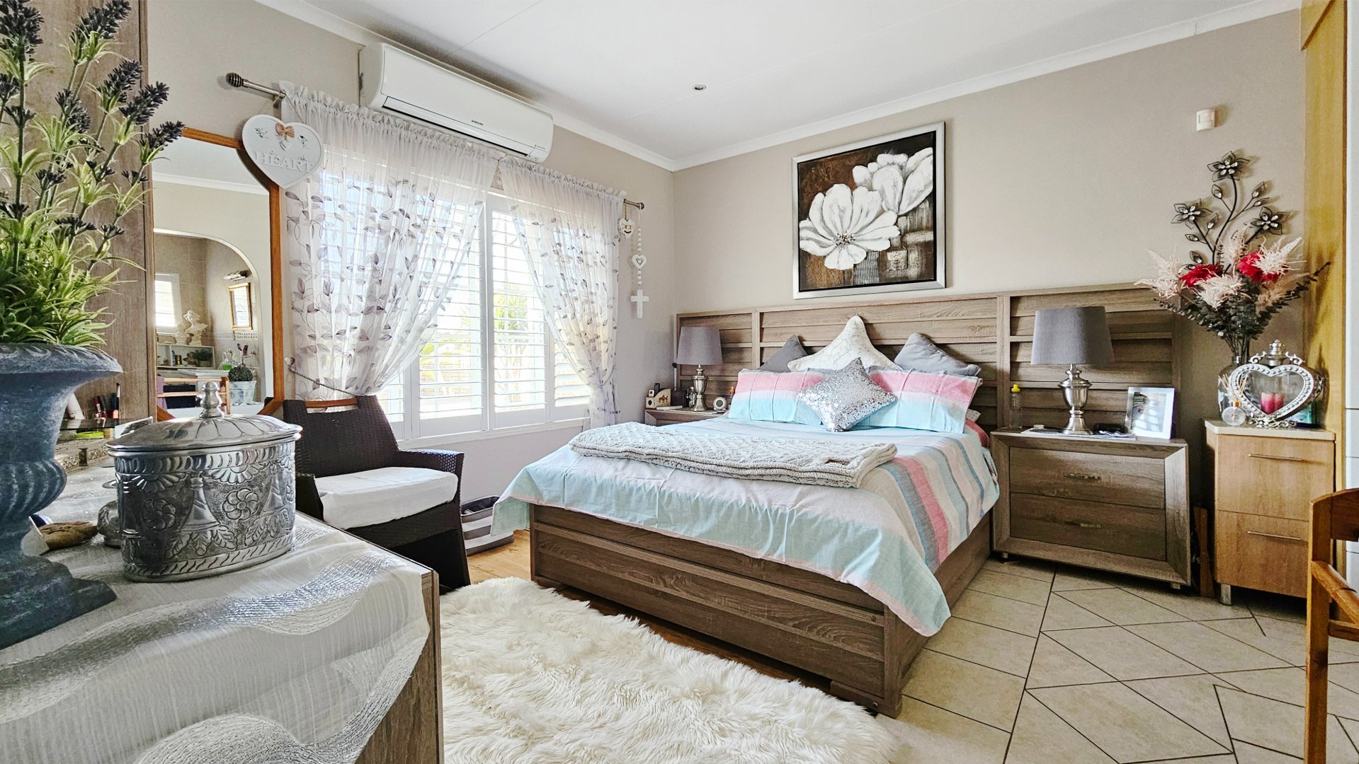 Additional features include a solar geyser, beautiful, neutral American blinds throughout, a security system, and four air-conditioning units. The levy includes water usage and insurance.