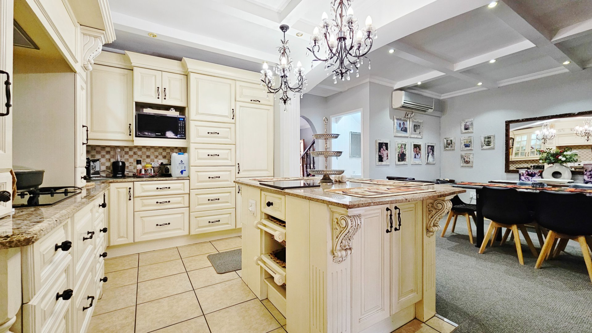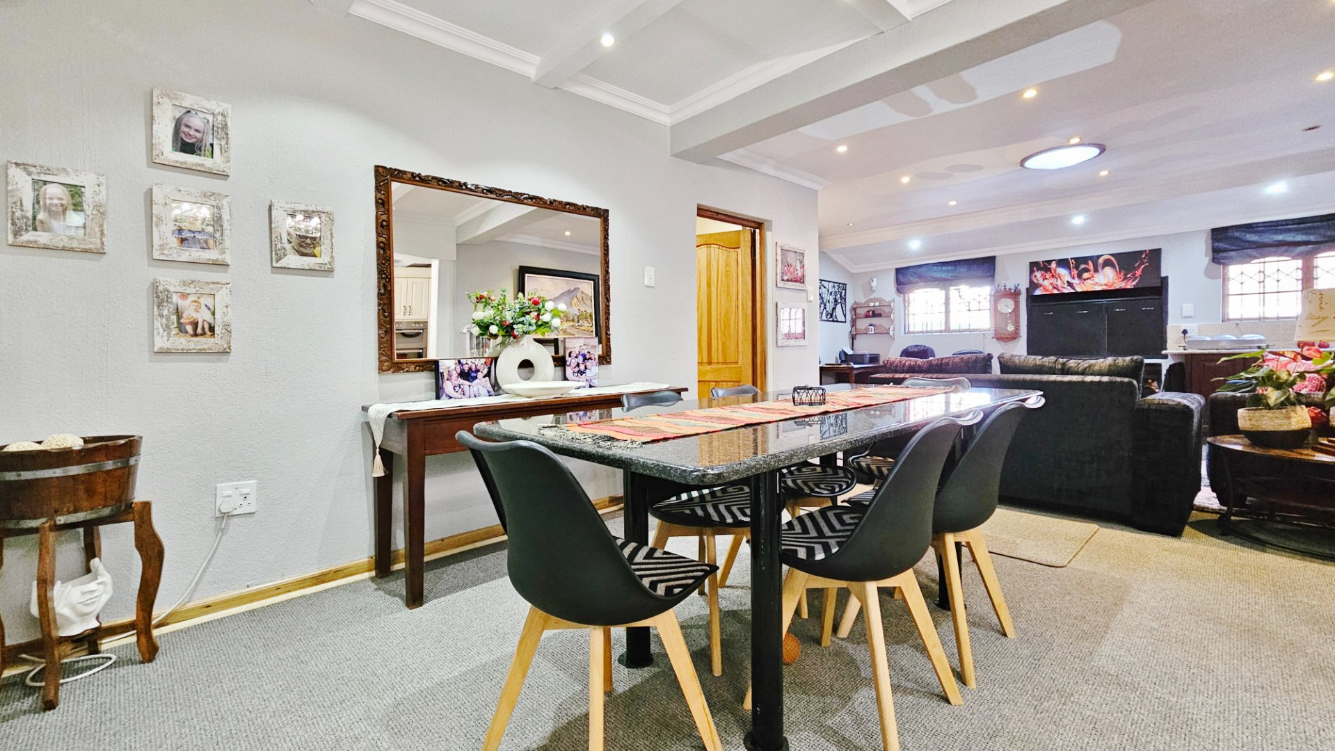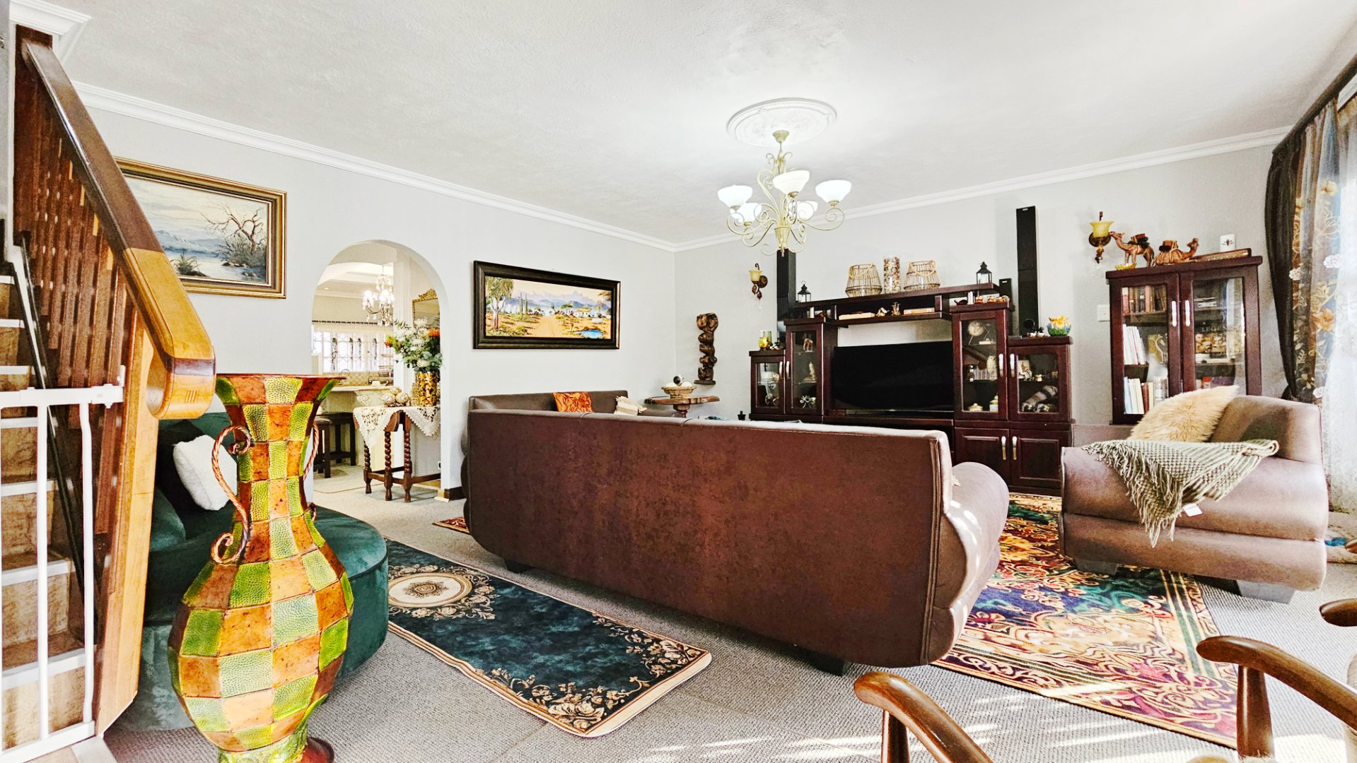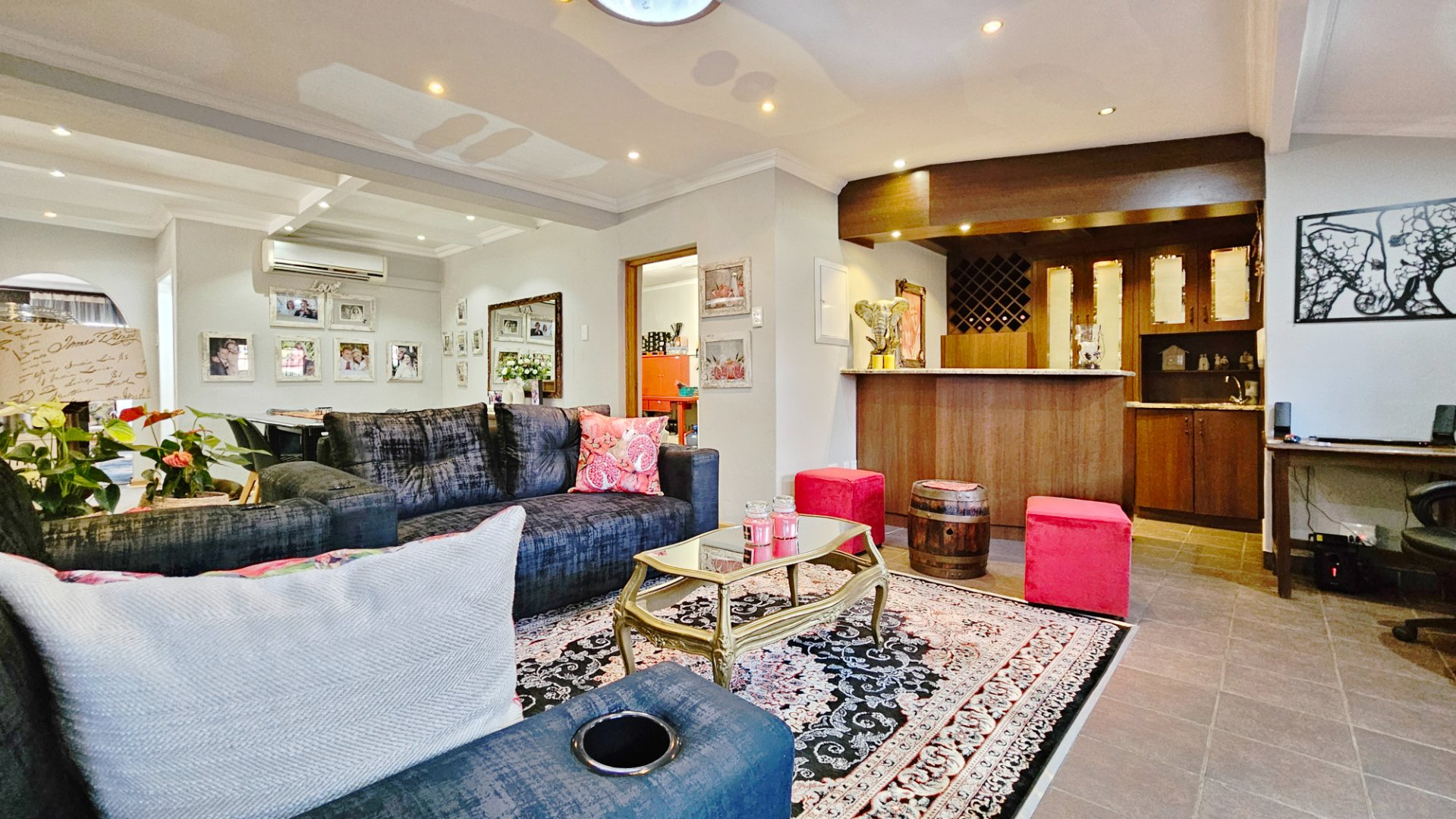 This home boasts several additional features, including four air-conditioning units, a solar geyser, and an 11KVA inverter system. Parking arrangements are a single garage and a carport. The whole complex is protected by electric fencing all around.