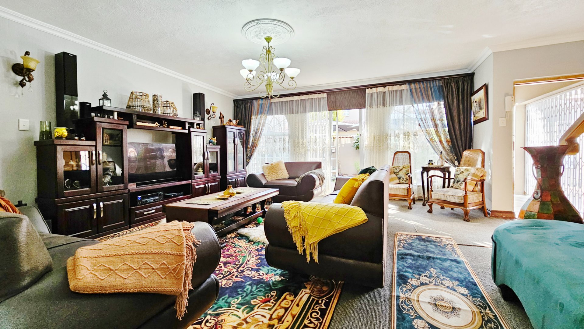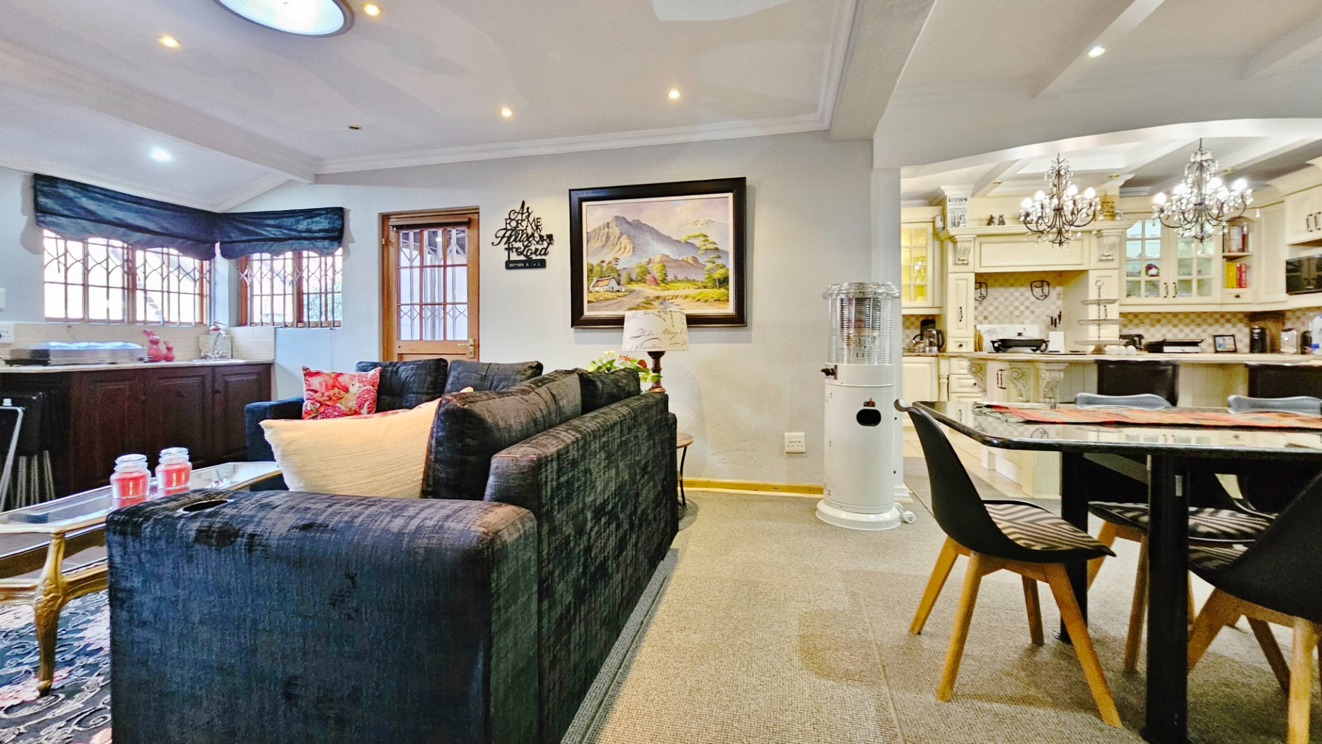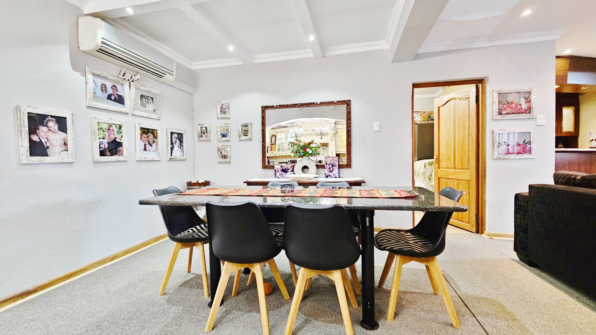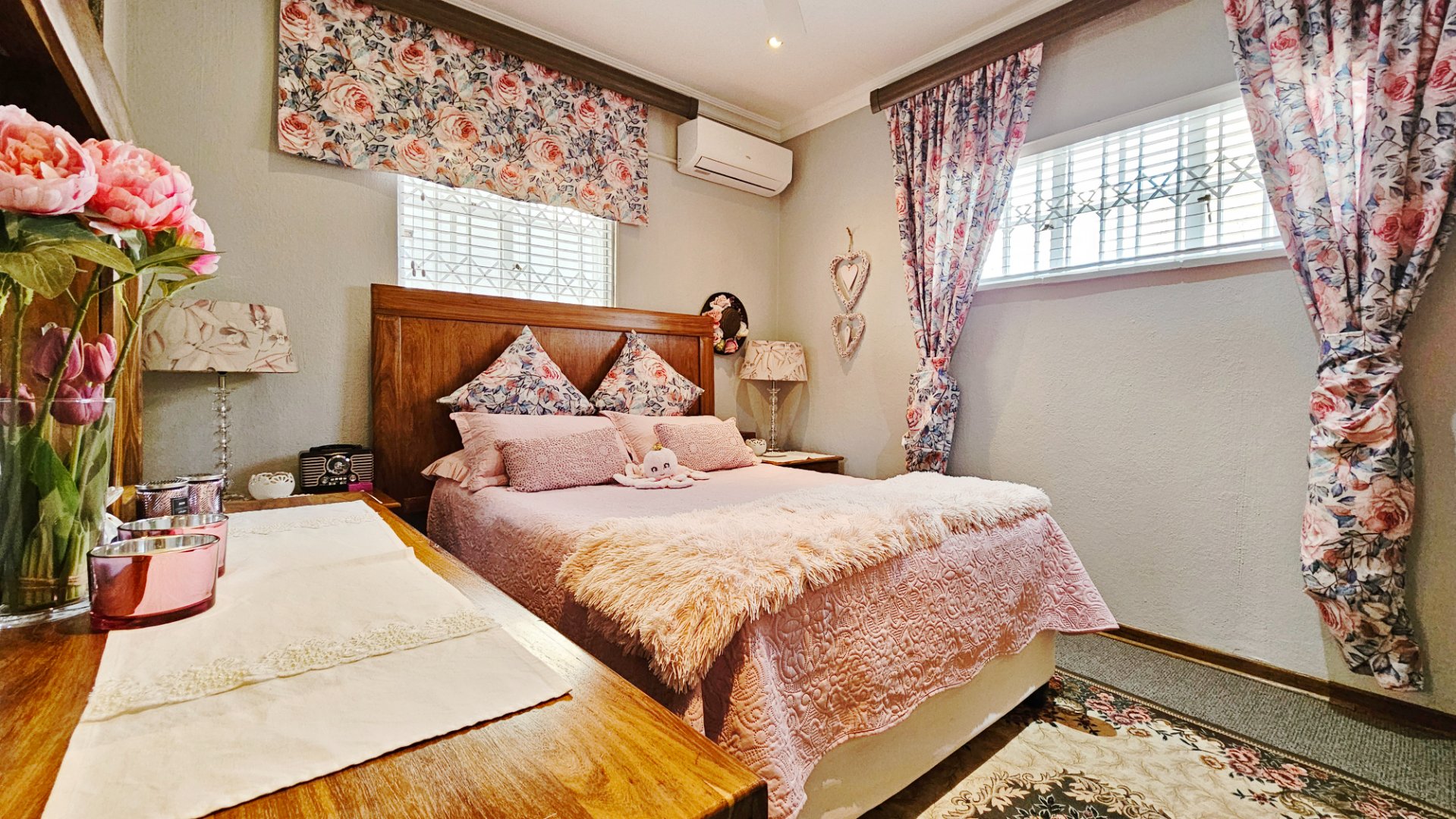 This home boasts several additional features, including four air-conditioning units, a solar geyser, and an 11KVA inverter system. Parking arrangements are a single garage and a carport. The whole complex is protected by electric fencing all around.