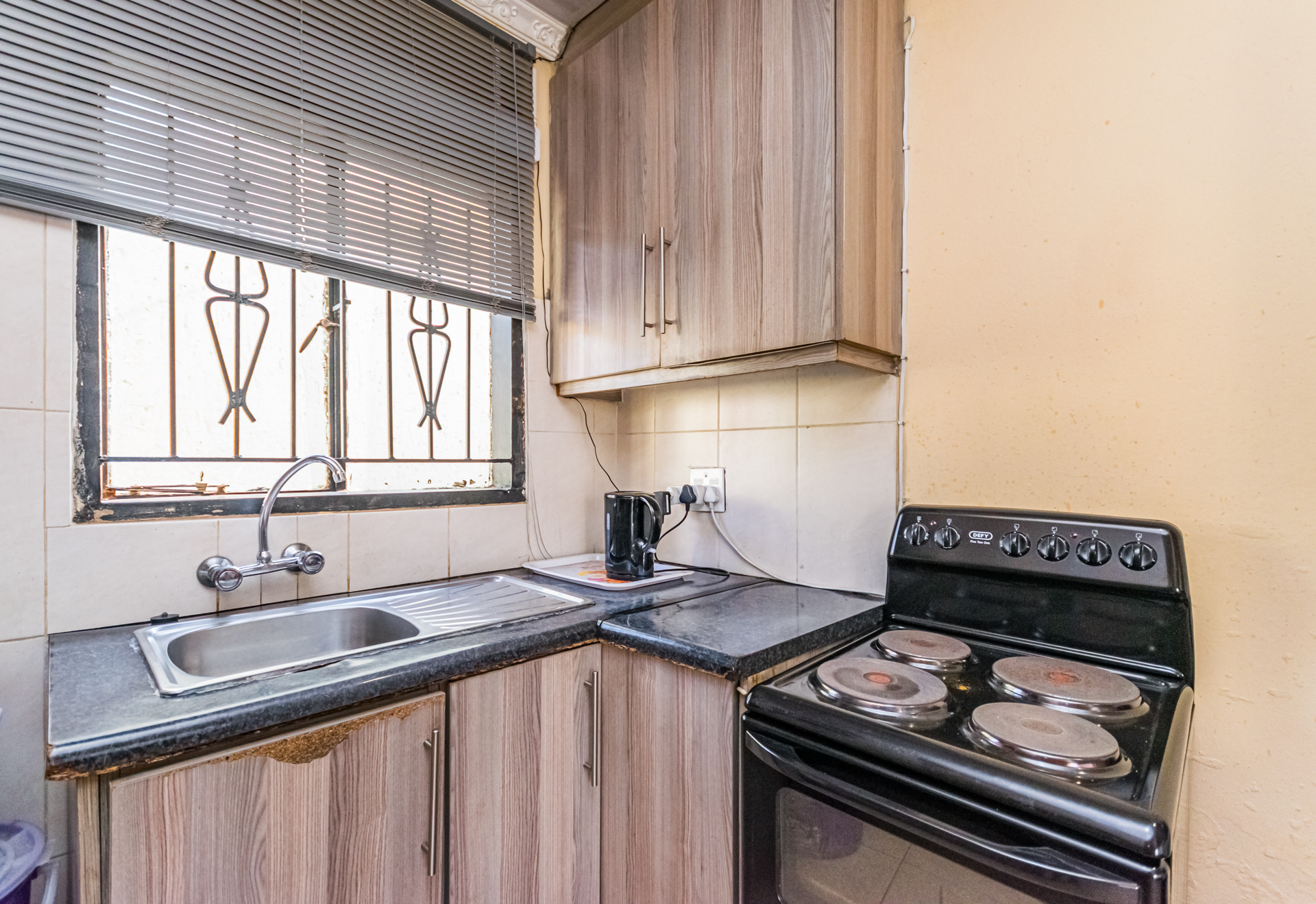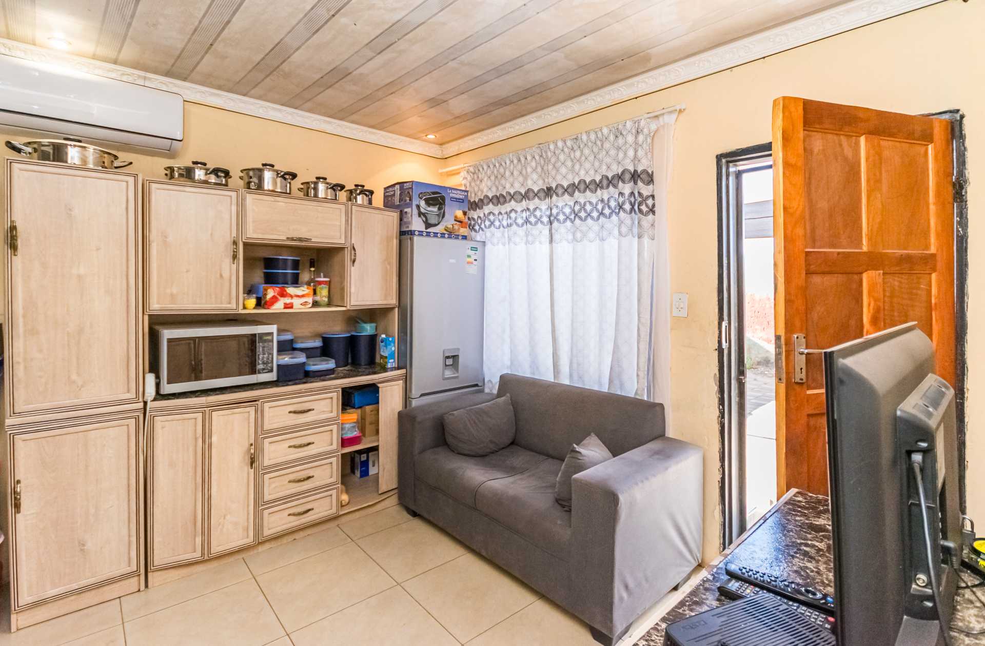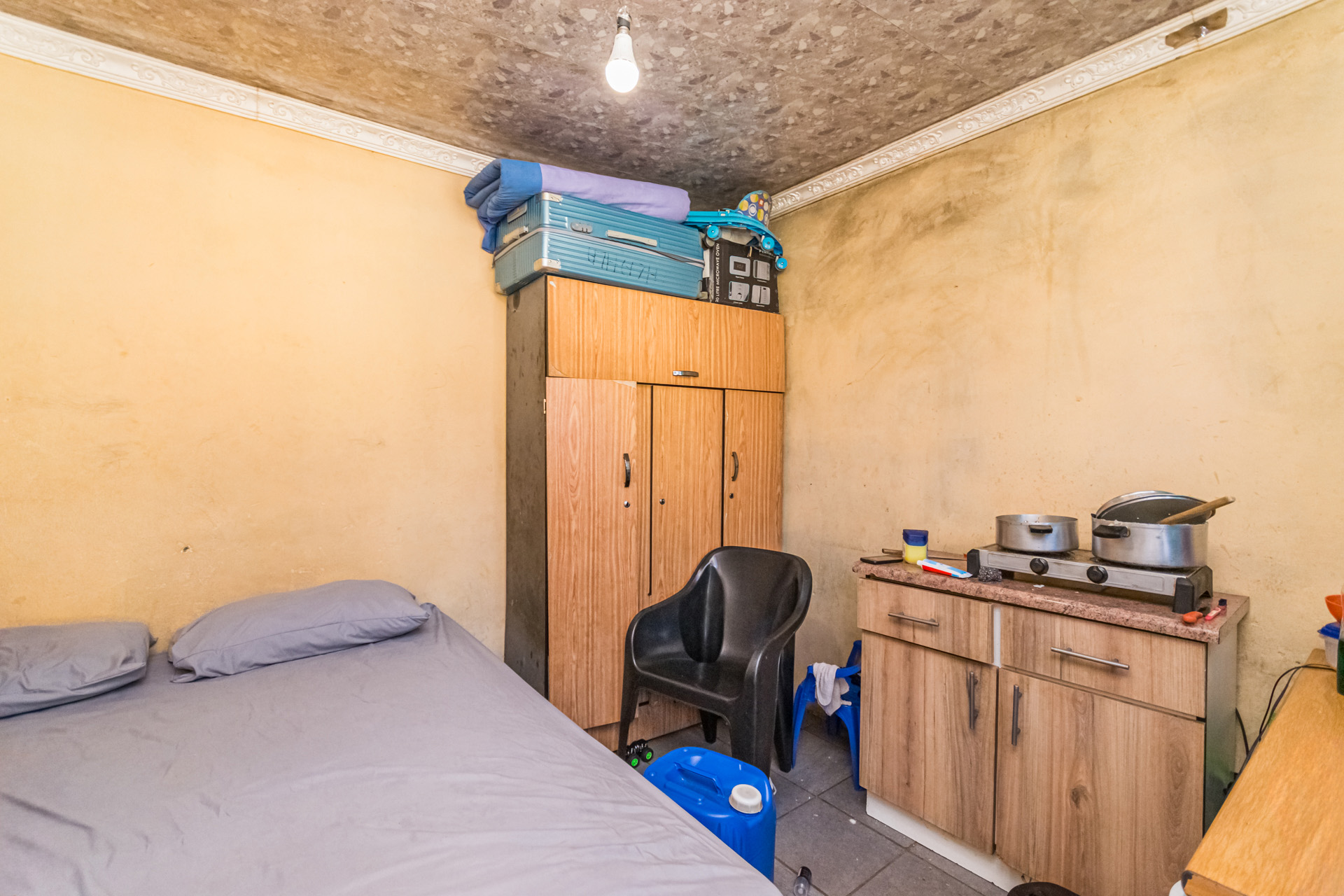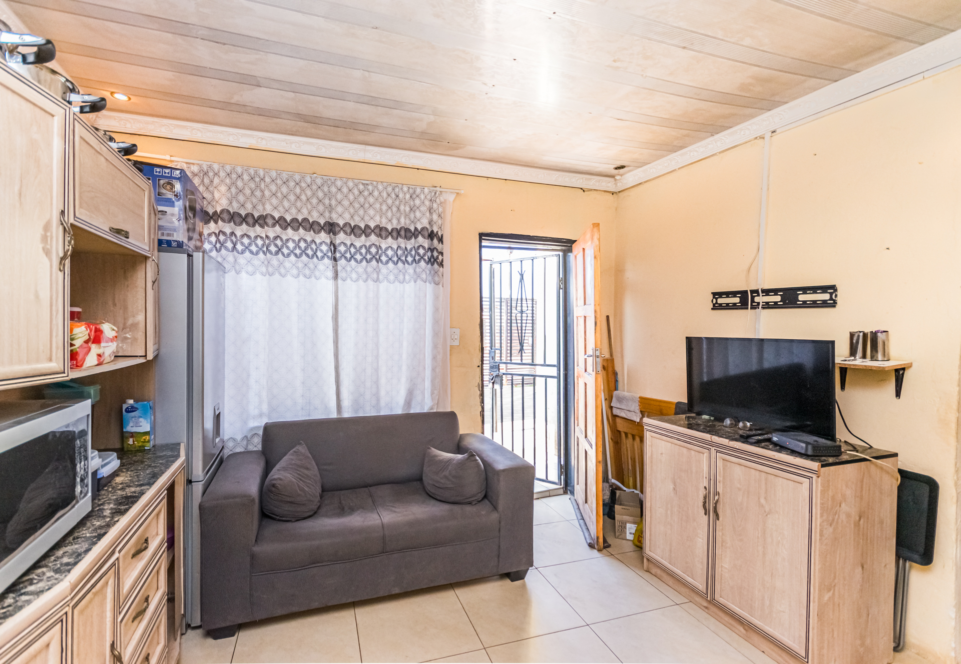 An investment home at Thulani. This home gives you a very neat yard as you enter. As you enter your standard open-plan kitchen and lounge. Facing a small passage, you enter your first bedroom with wall cupboards and your second bedroom with wall cupboards. As an investor or a large family, you will love this, as it includes 6 neat flatlets as extra space. The yard is comfortable with two car parking spaces.