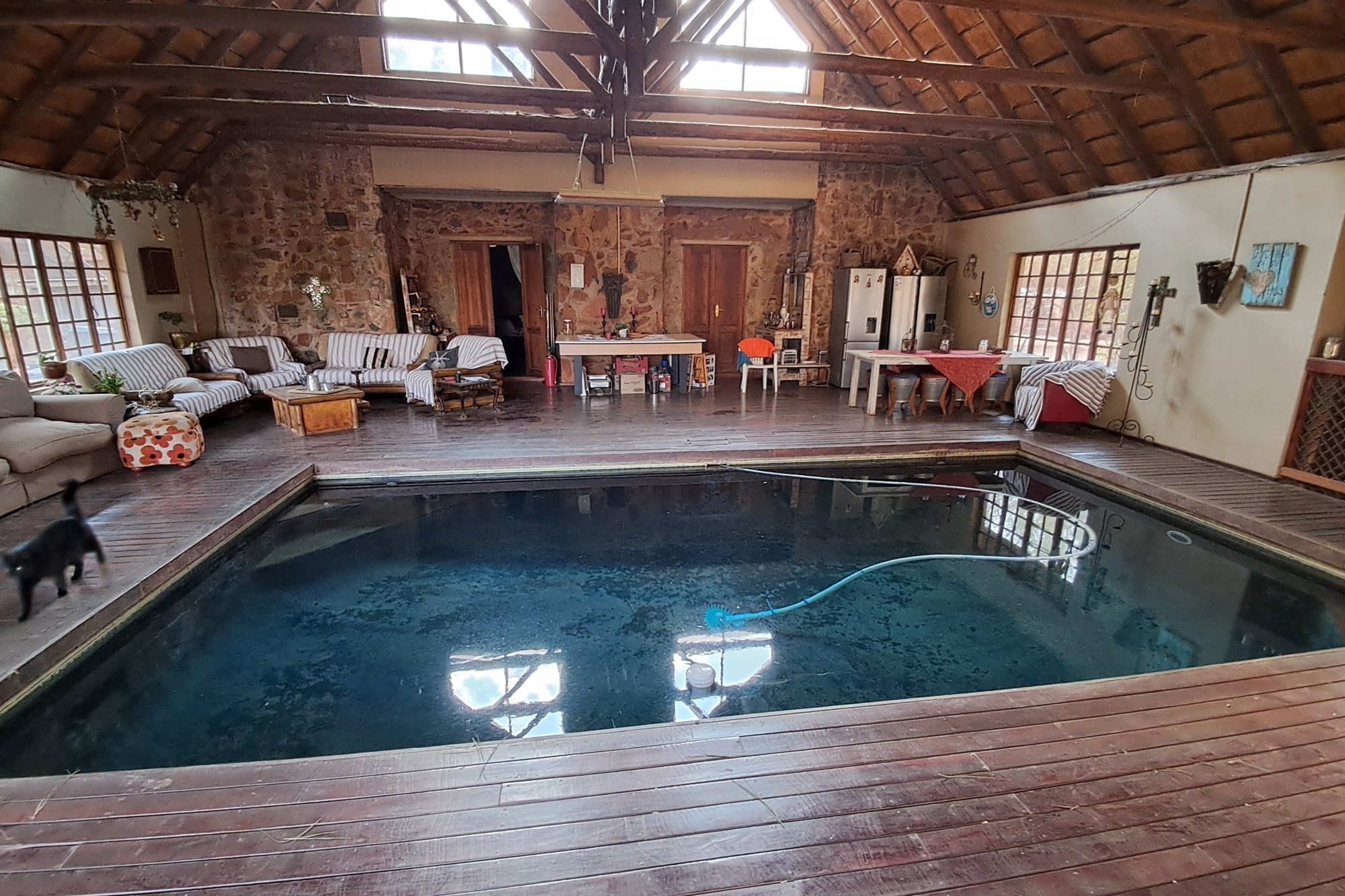You need to see this. This extraordinary 8.5-hectare smallholding in Tierpoort offers a rare blend of peace, space and endless potential. The perfect retreat from city life without sacrificing convenience. For just under R10mil you get so much more. Apart from a 200year old stone house, flatlet and a huge heated indoor swimming pool and the covered patio, there are 2 venues plus a kitchen that can all functions separately in private. The kitchen do catering for companies and prepared meals on a large scale. Designed by a caterer, the kitchen consists of the best appliances. These could be included for a minimal extra amount. The new owner could also include a van and a walk in freezer room as well as a walk in fridge room. All the chairs and catering crockery, decor etc could also be included, should the new owner wants it.