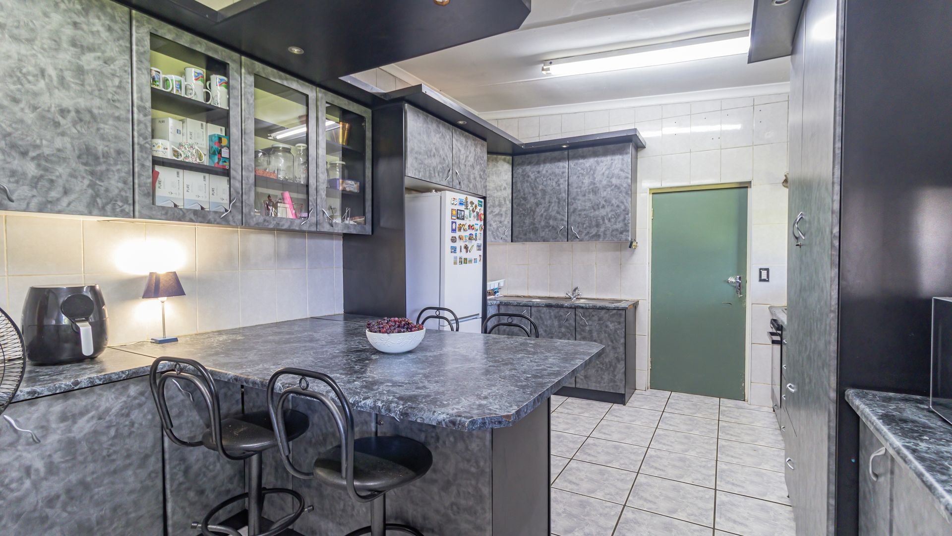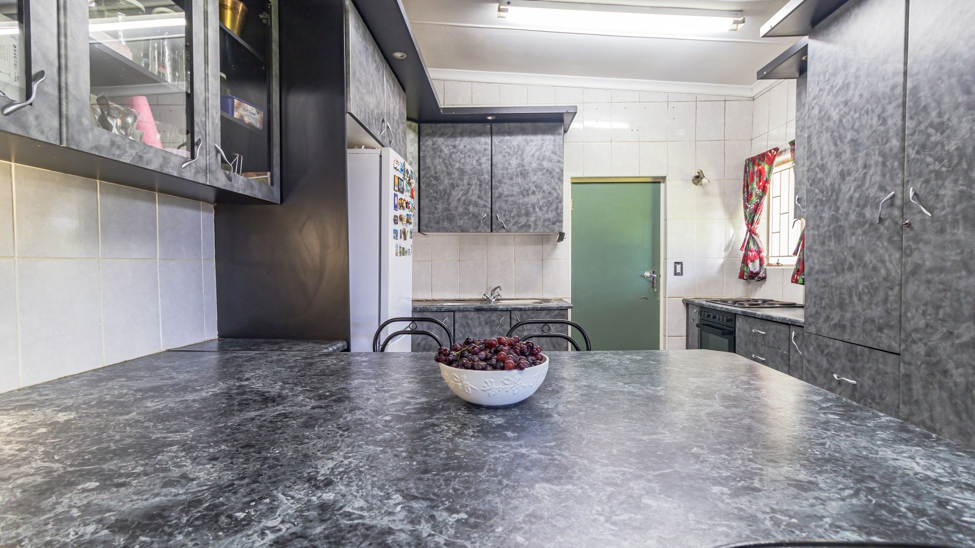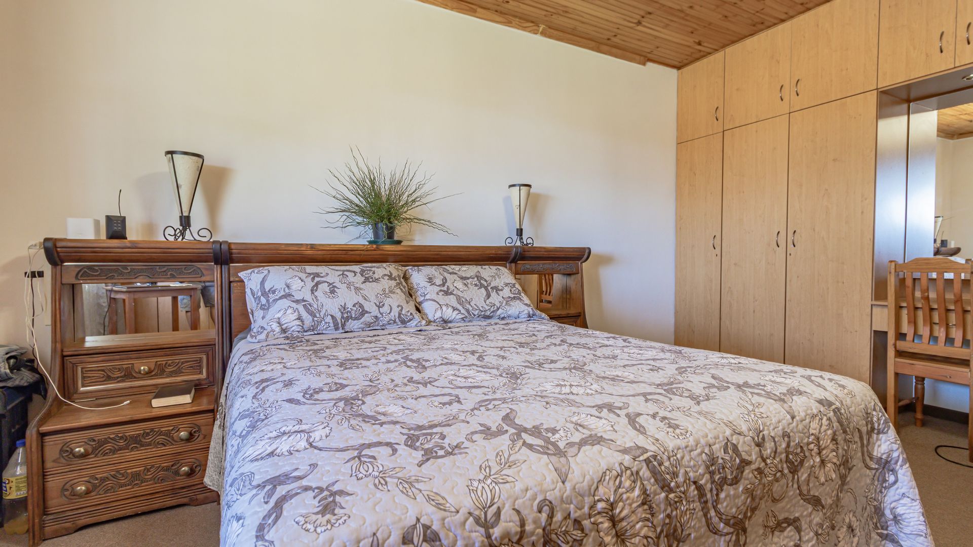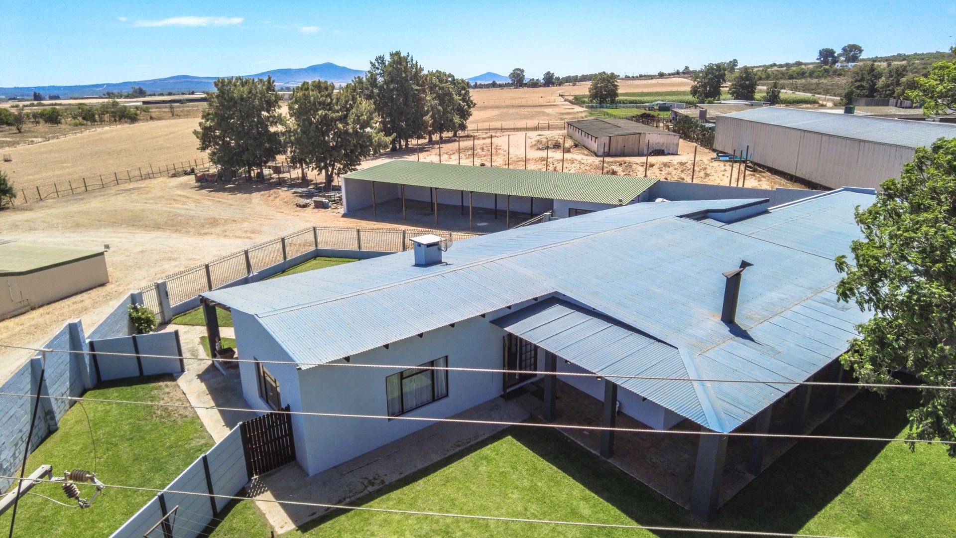 The main house is spacious and well designed, featuring three bedrooms with the potential to add a fourth. Two bedrooms include en-suite bathrooms, complemented by an additional third bathroom. The home offers a comfortable kitchen, dining room, and lounge, as well as a small office for work-from-home convenience. A standout feature is the large entertainment area, complete with a built-in bar and two built-in braais, perfect for hosting. Practical extras include five garages and storage rooms adjacent to the house.