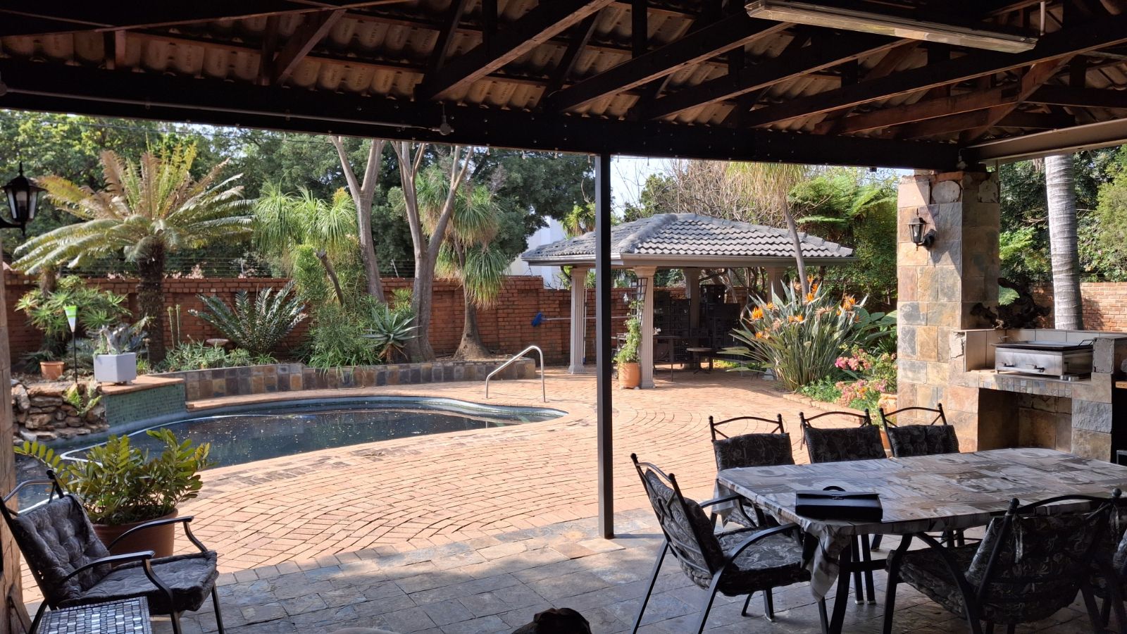 Sparkling pool and braai on stoep area 7 Car parking, pet friendly flatlet with bathroom, kitchen and lounge tv room combine