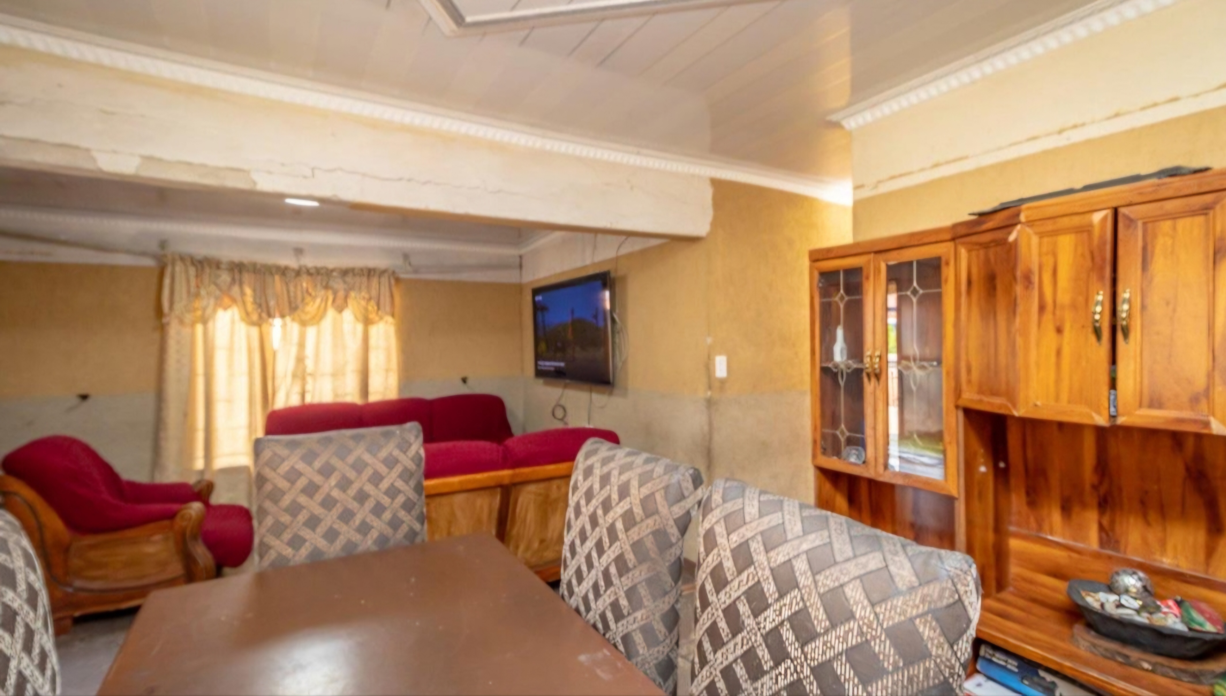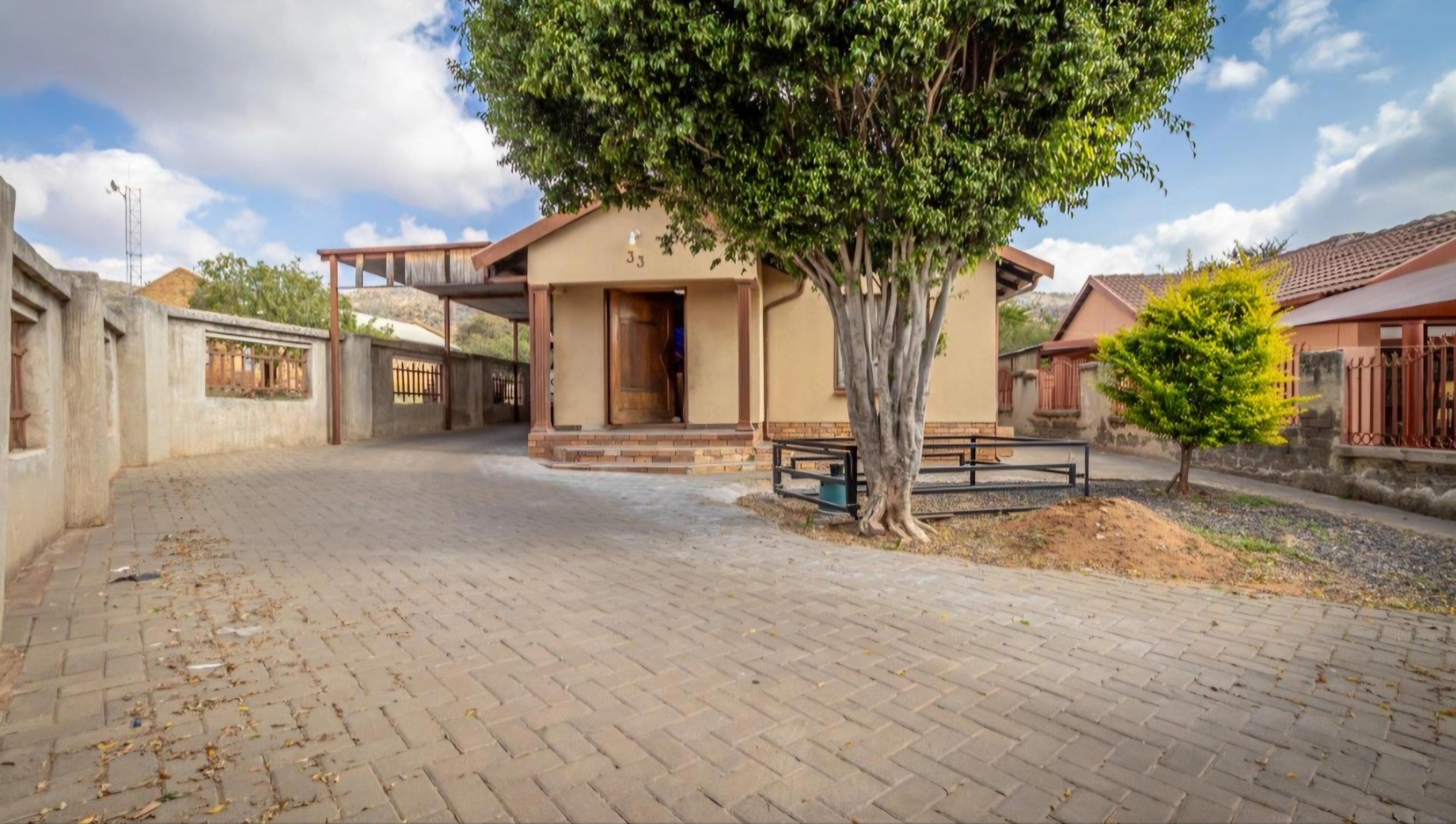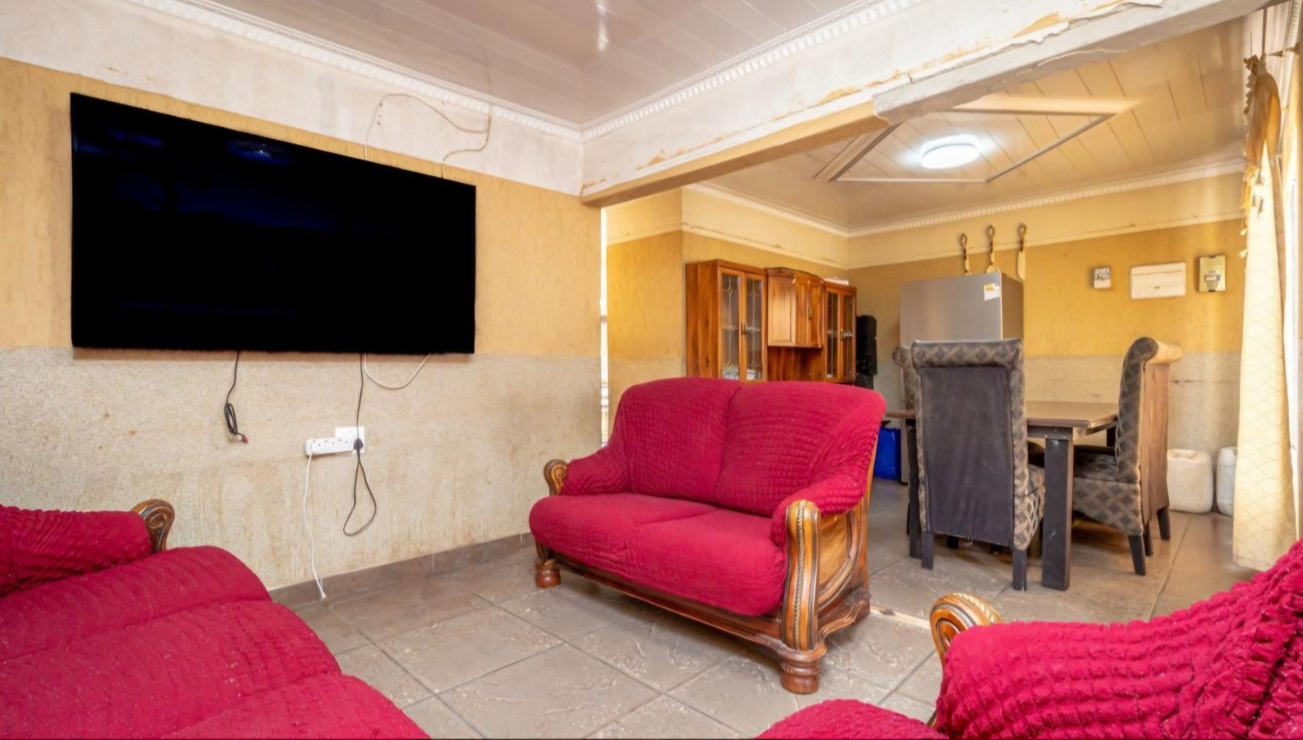 These 3 bedroom house need a little bit of touch,it got fitted kitchen 2 bathhrooms and extra outside room with toilet,you can use outside room for extra income or its good when you got grown kids or treat it as a guest room,this house got a lot of potential and a big yard with an ample parking.Easy access to town and schools