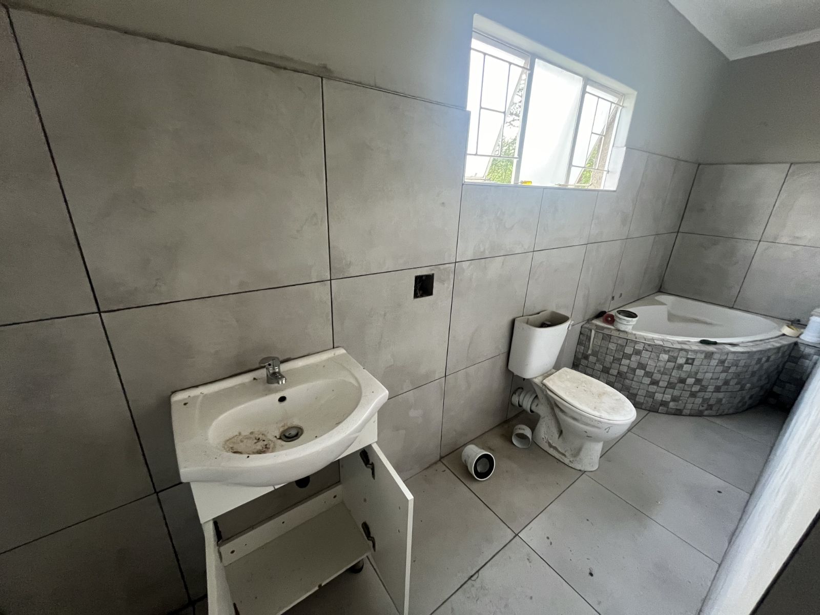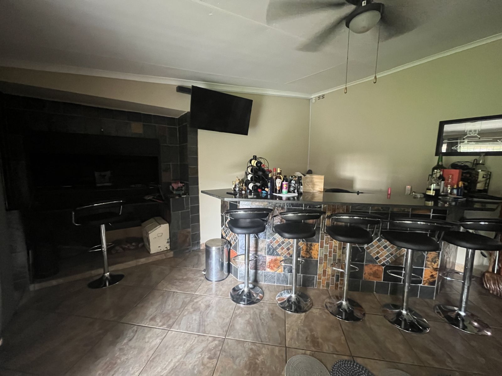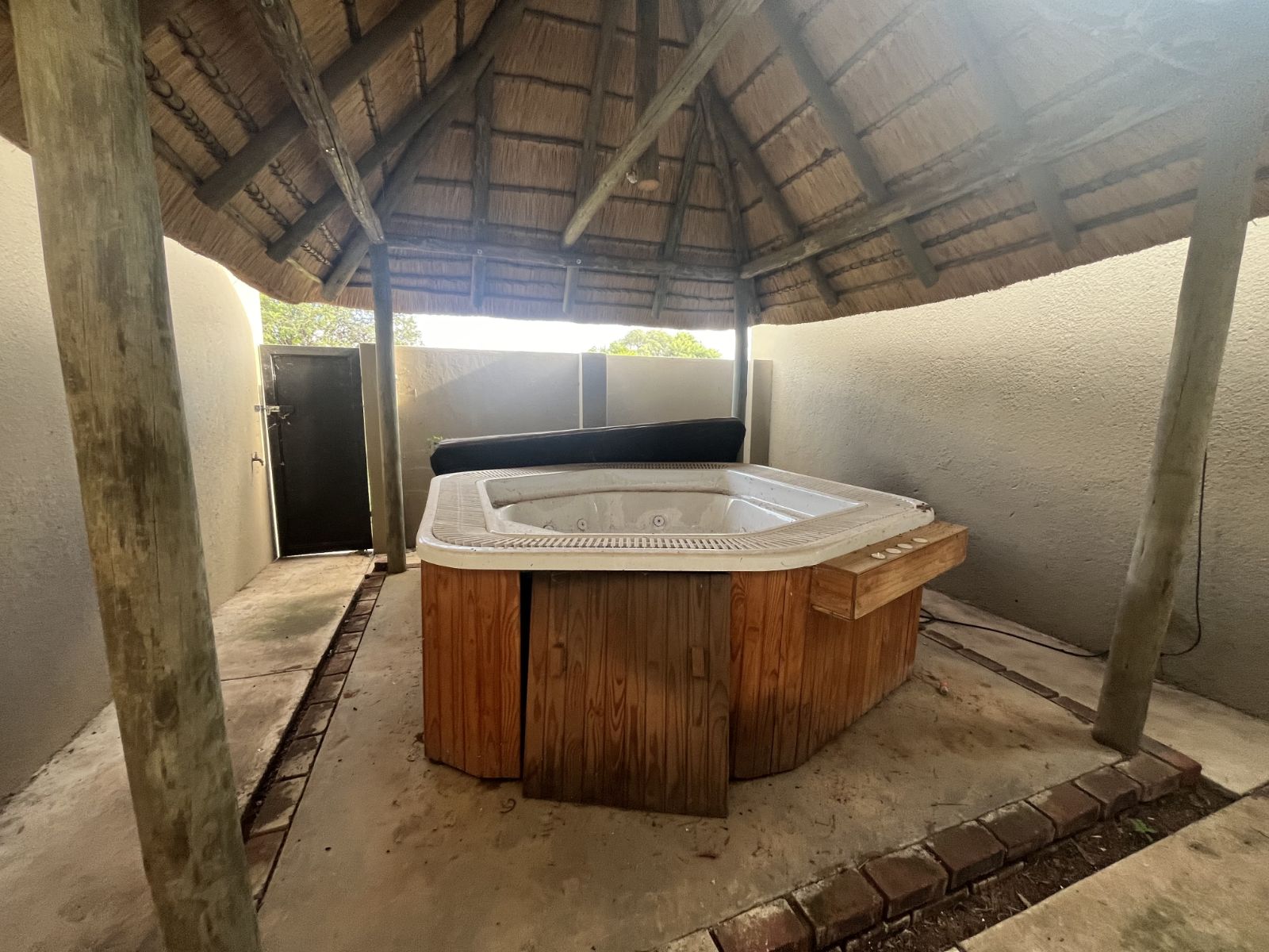 Large braai room with built-in braai, opening to a 12-seater jacuzzi