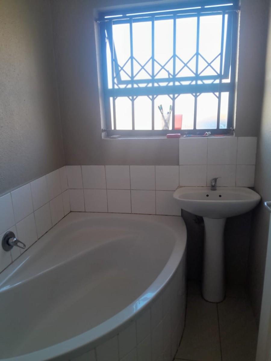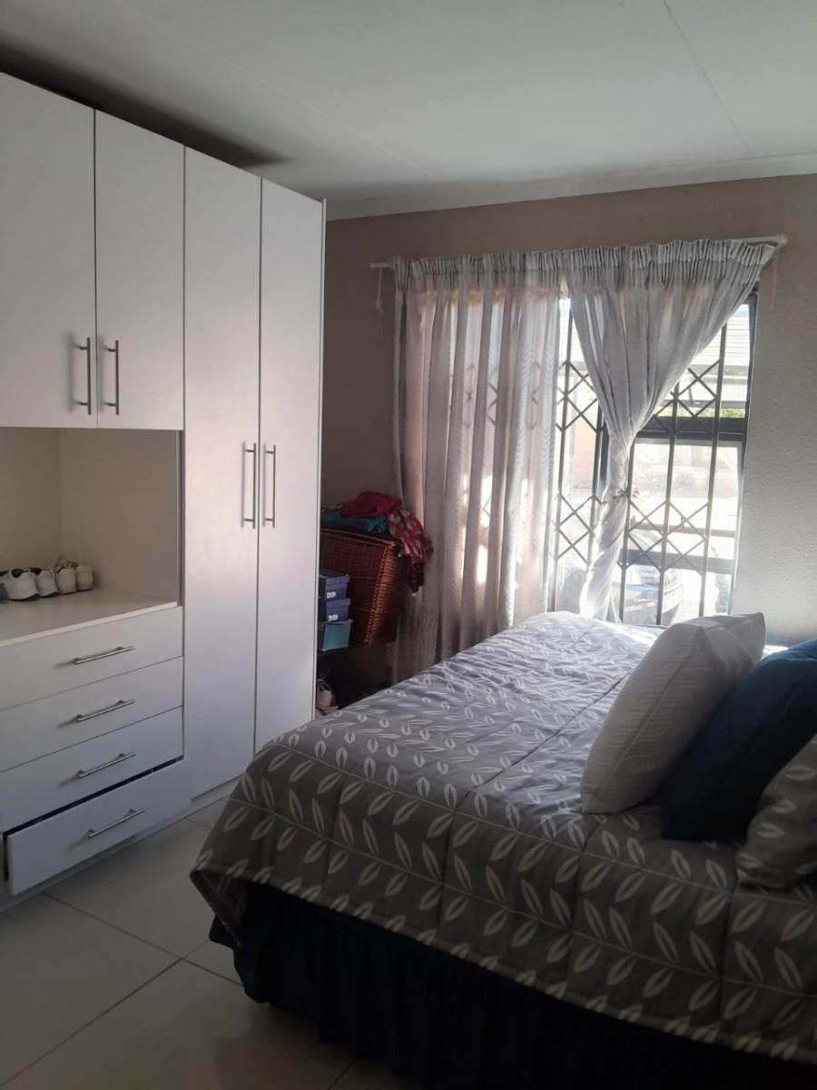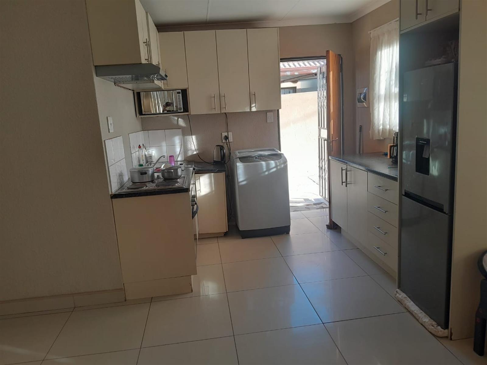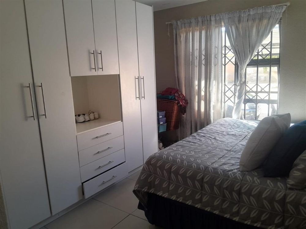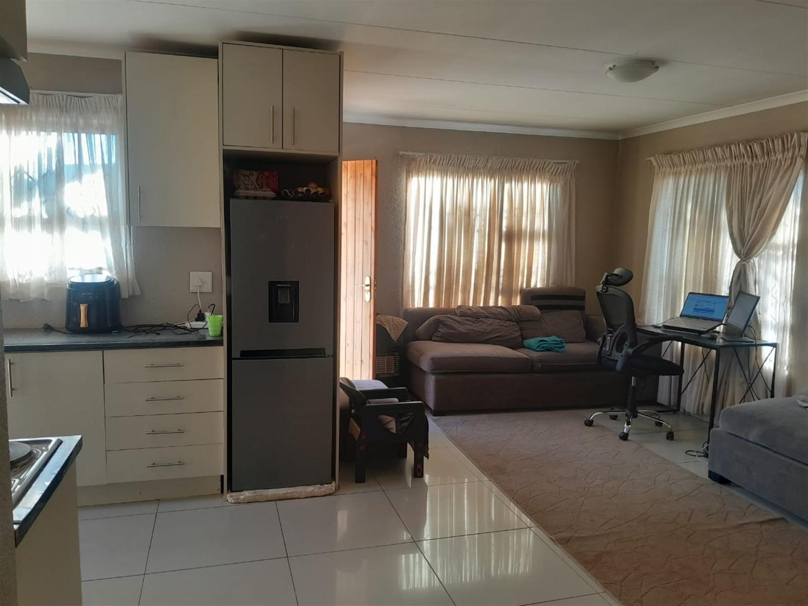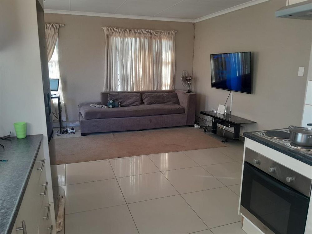 This charming house in Toekomsrus, Randfontein, offers a comfortable living space with three spacious bedrooms, making it ideal for families or those looking for extra room. The master bedroom features a luxurious king bed and an en-suite bathroom, providing a private retreat. The additional bedrooms are well-sized and can easily accommodate double beds, ensuring comfort for family members or guests.